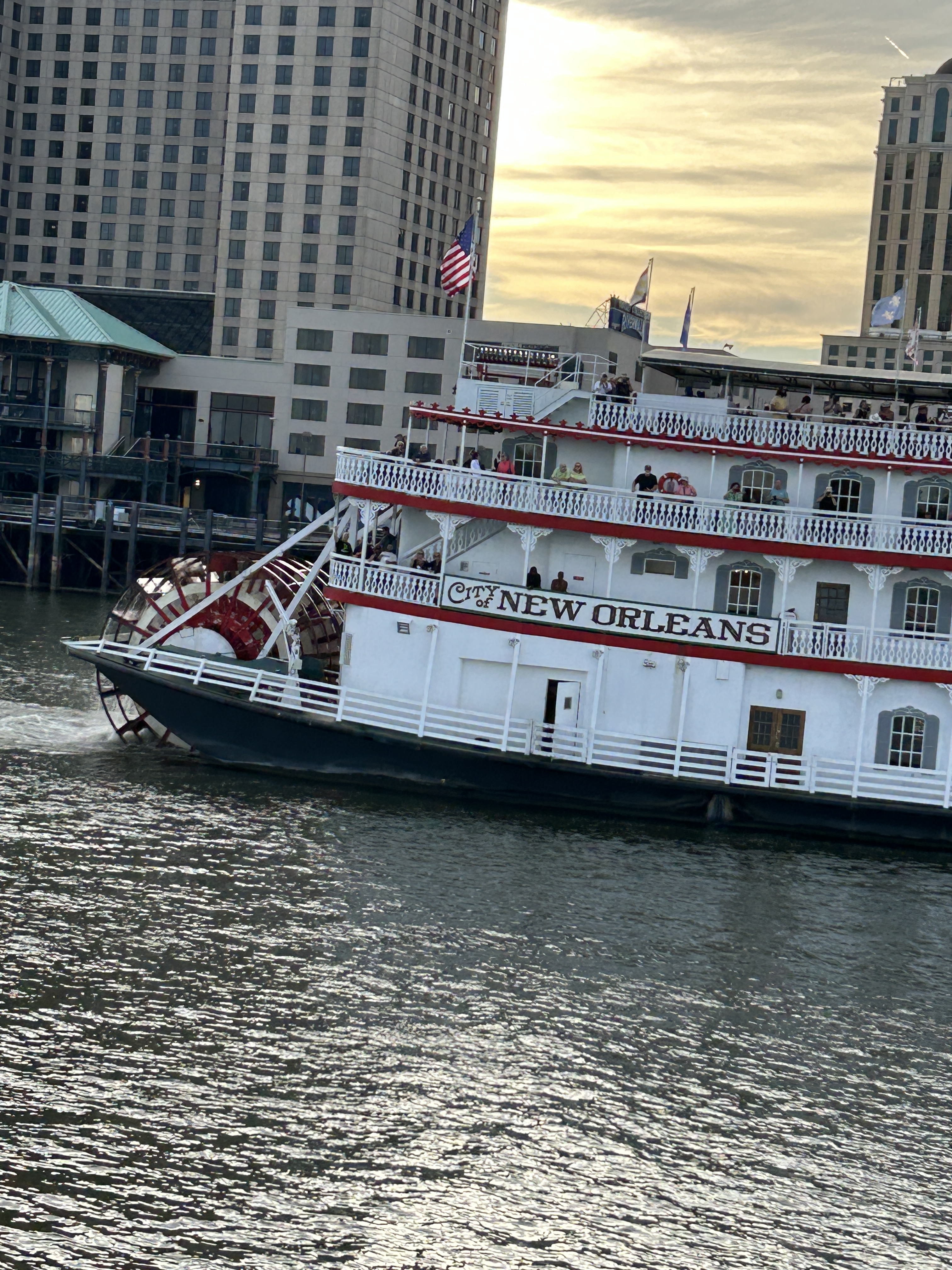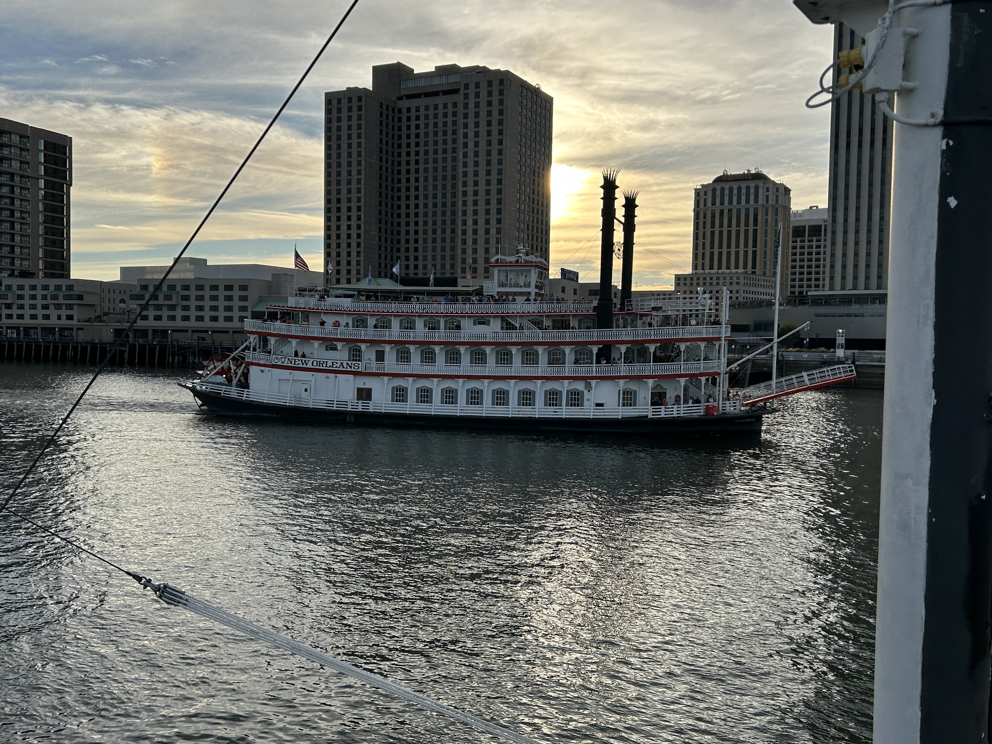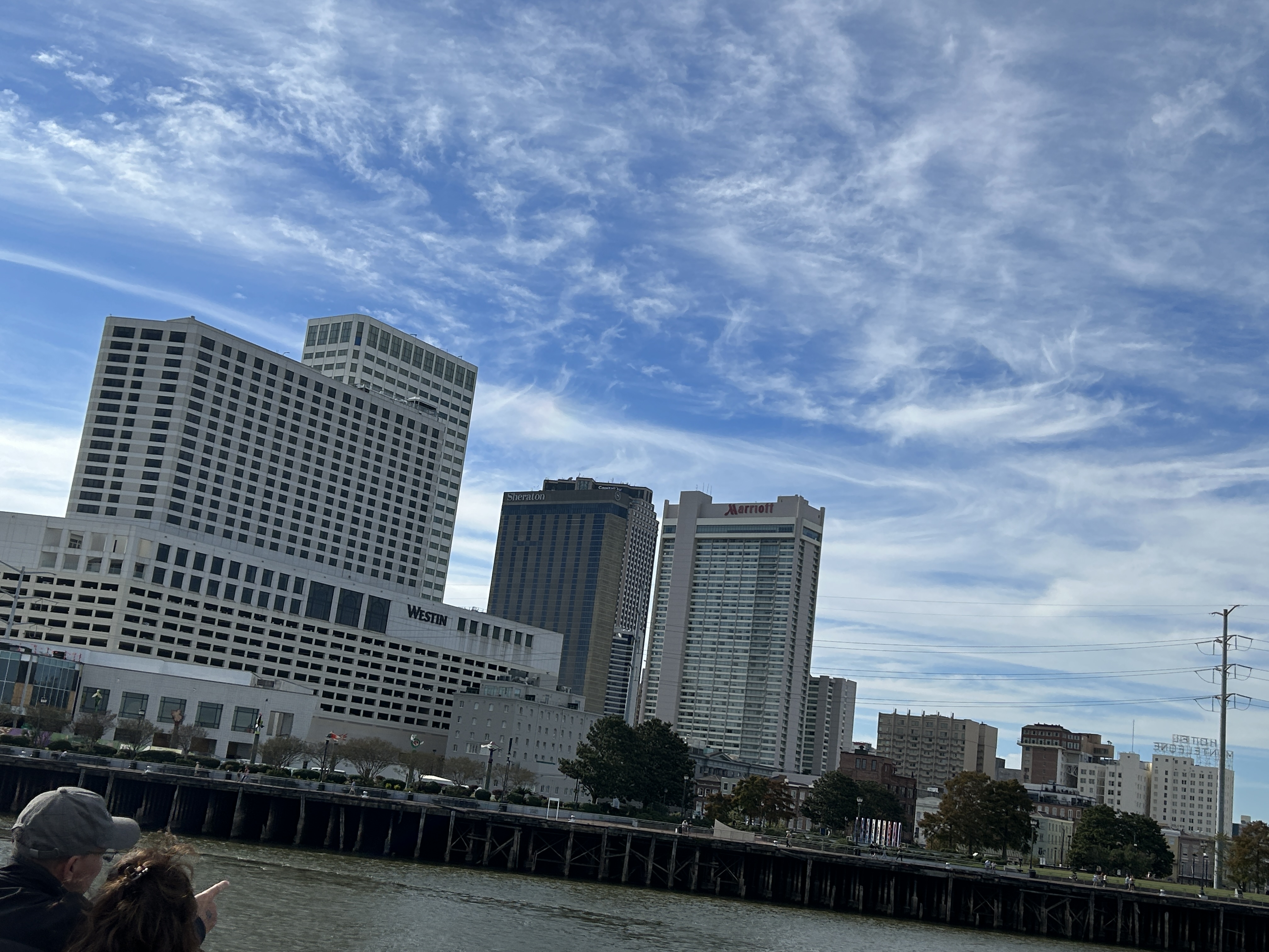 Après une pause lecture et une petite saucette à la piscine, nous sommes allés faire une croisière sur le Mississippi. J’ai bien aimé découvrir la ville à partir d’un autre point de vue. Sur les photos, on peut voir des bâtisses qu’on a photographié la veille en marchant dans le quartier français.