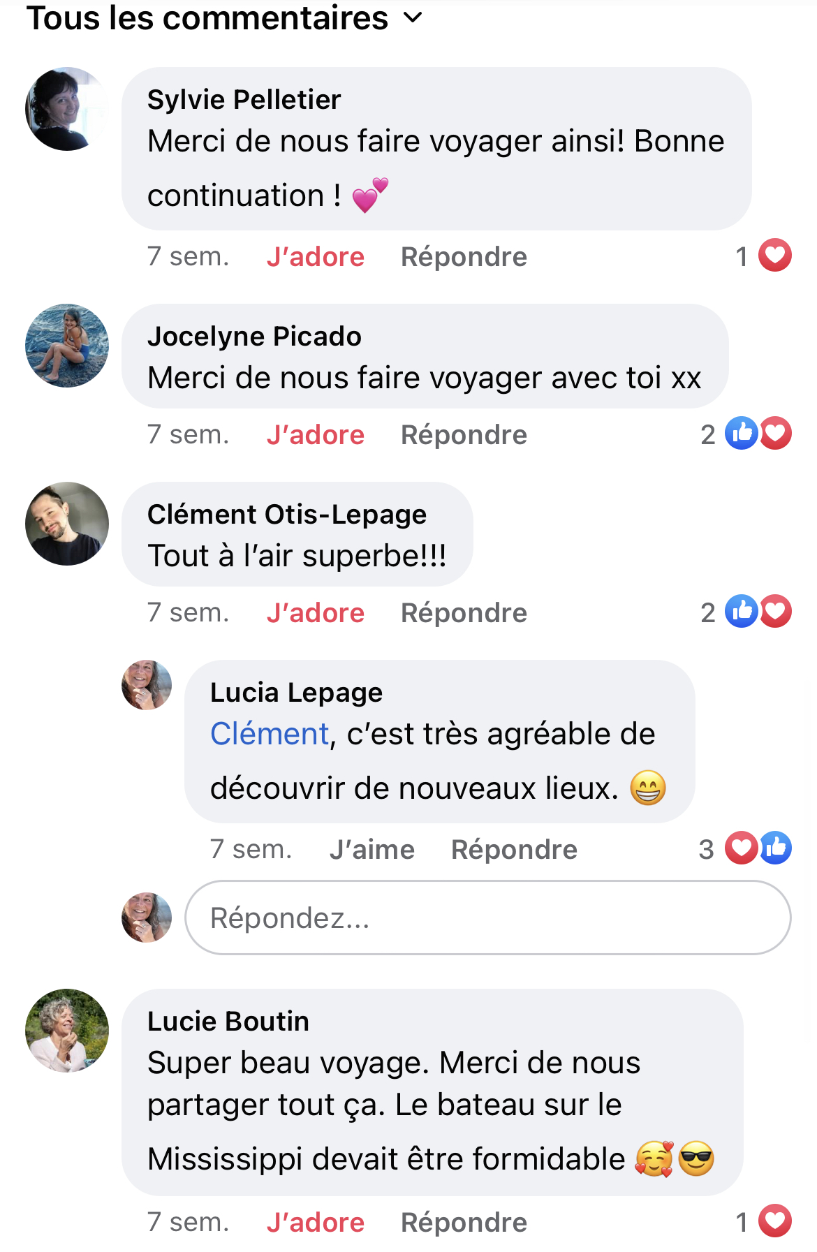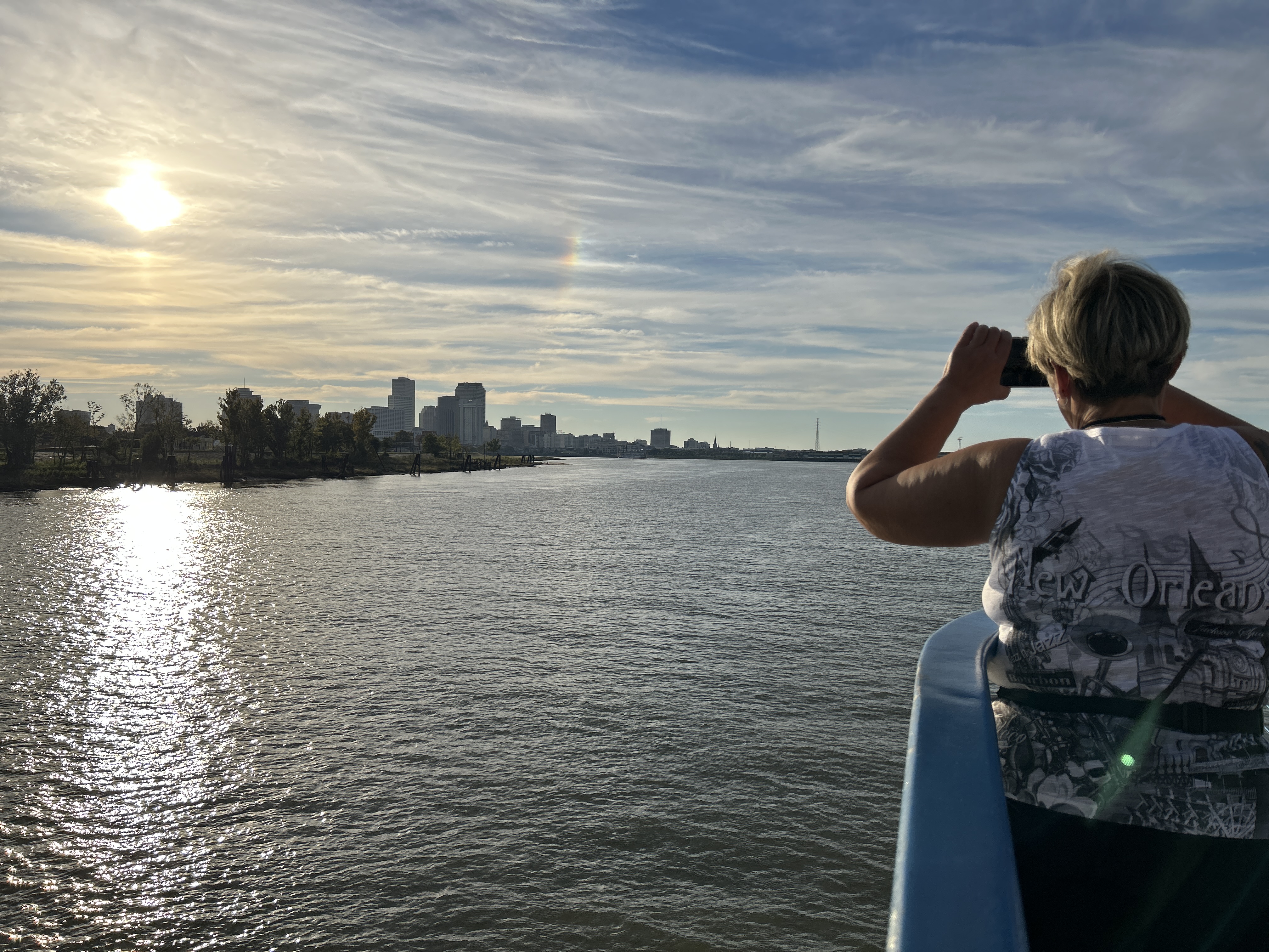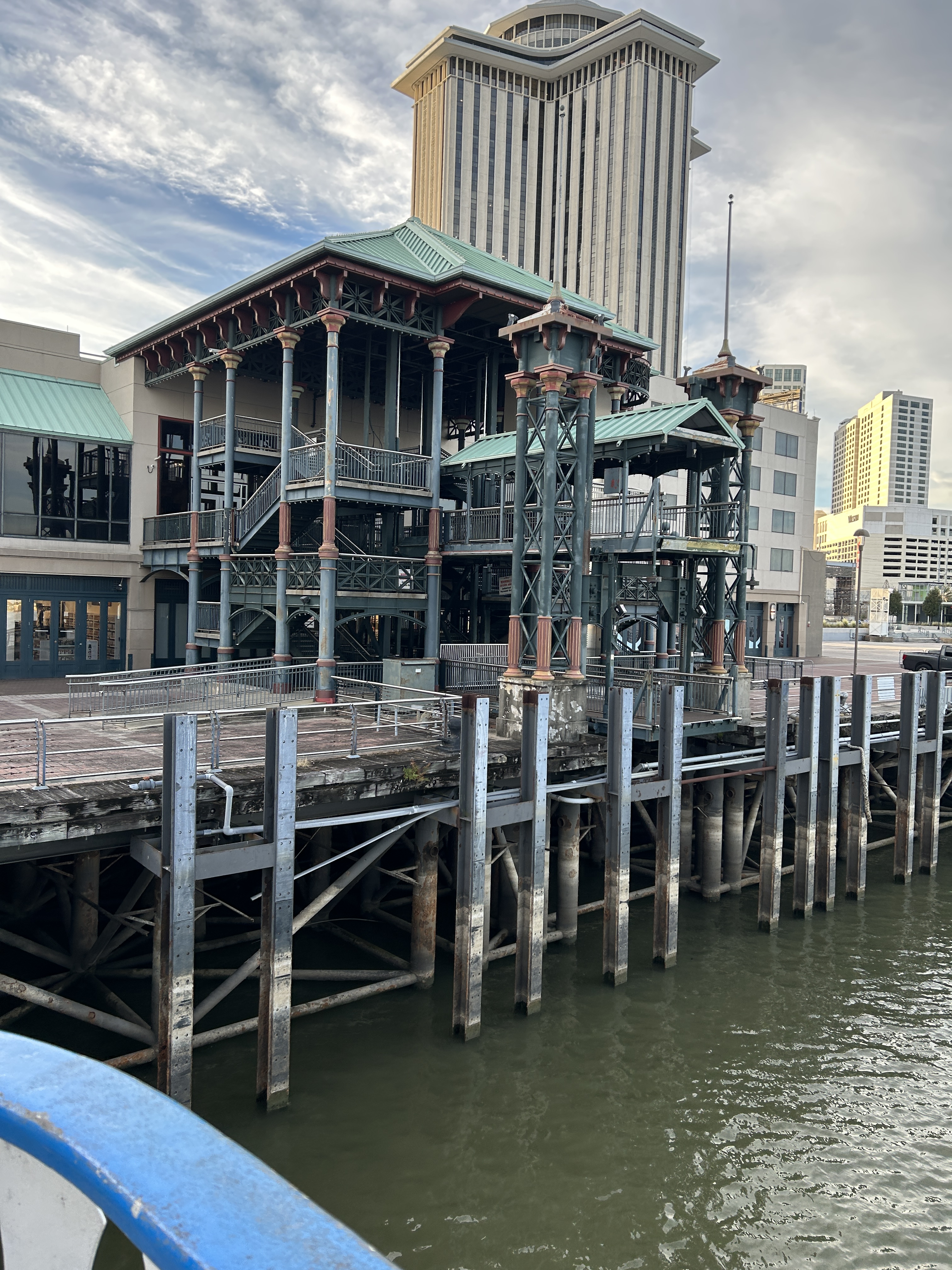 Après une pause lecture et une petite saucette à la piscine, nous sommes allés faire une croisière sur le Mississippi. J’ai bien aimé découvrir la ville à partir d’un autre point de vue. Sur les photos, on peut voir des bâtisses qu’on a photographié la veille en marchant dans le quartier français.