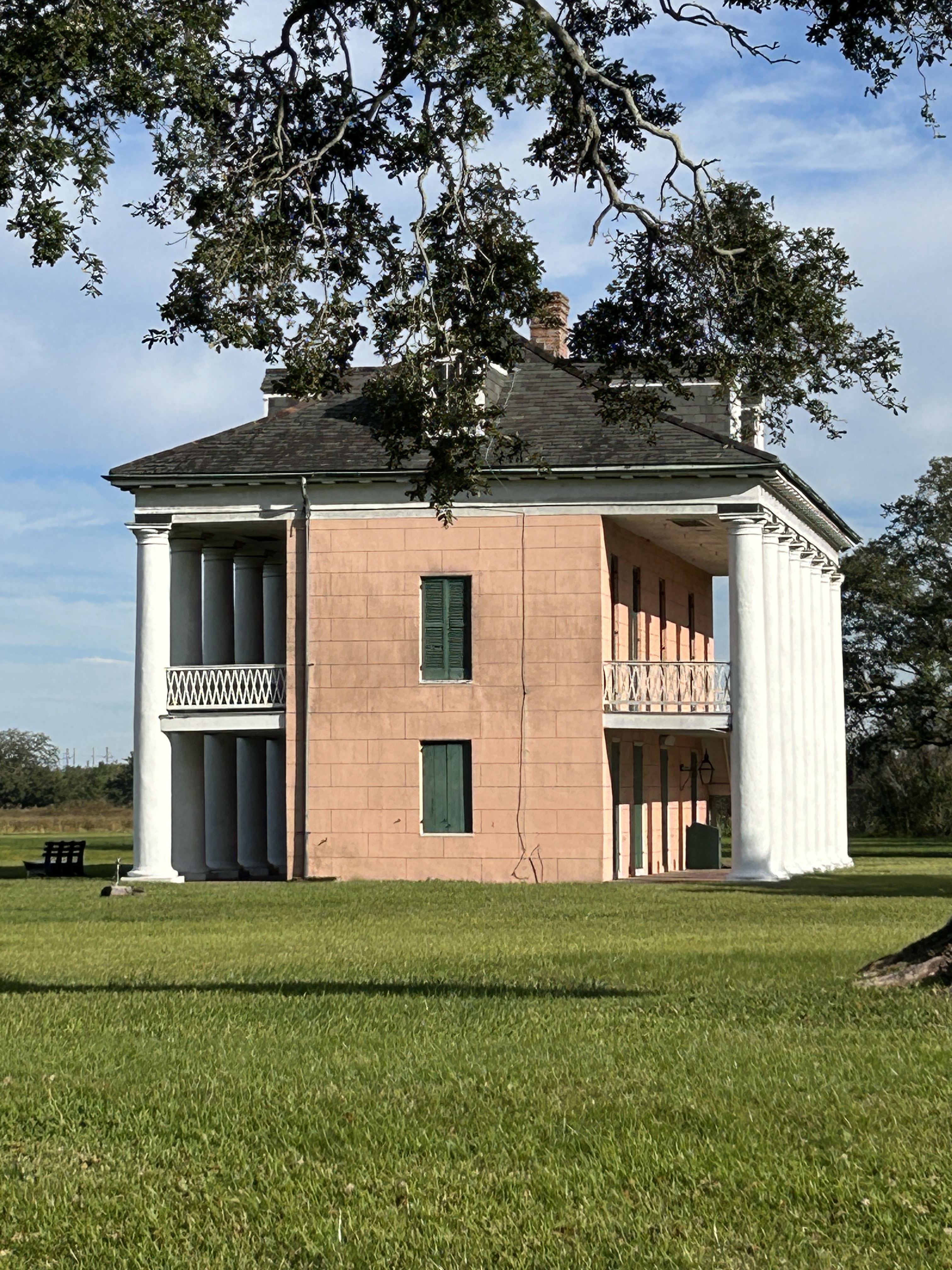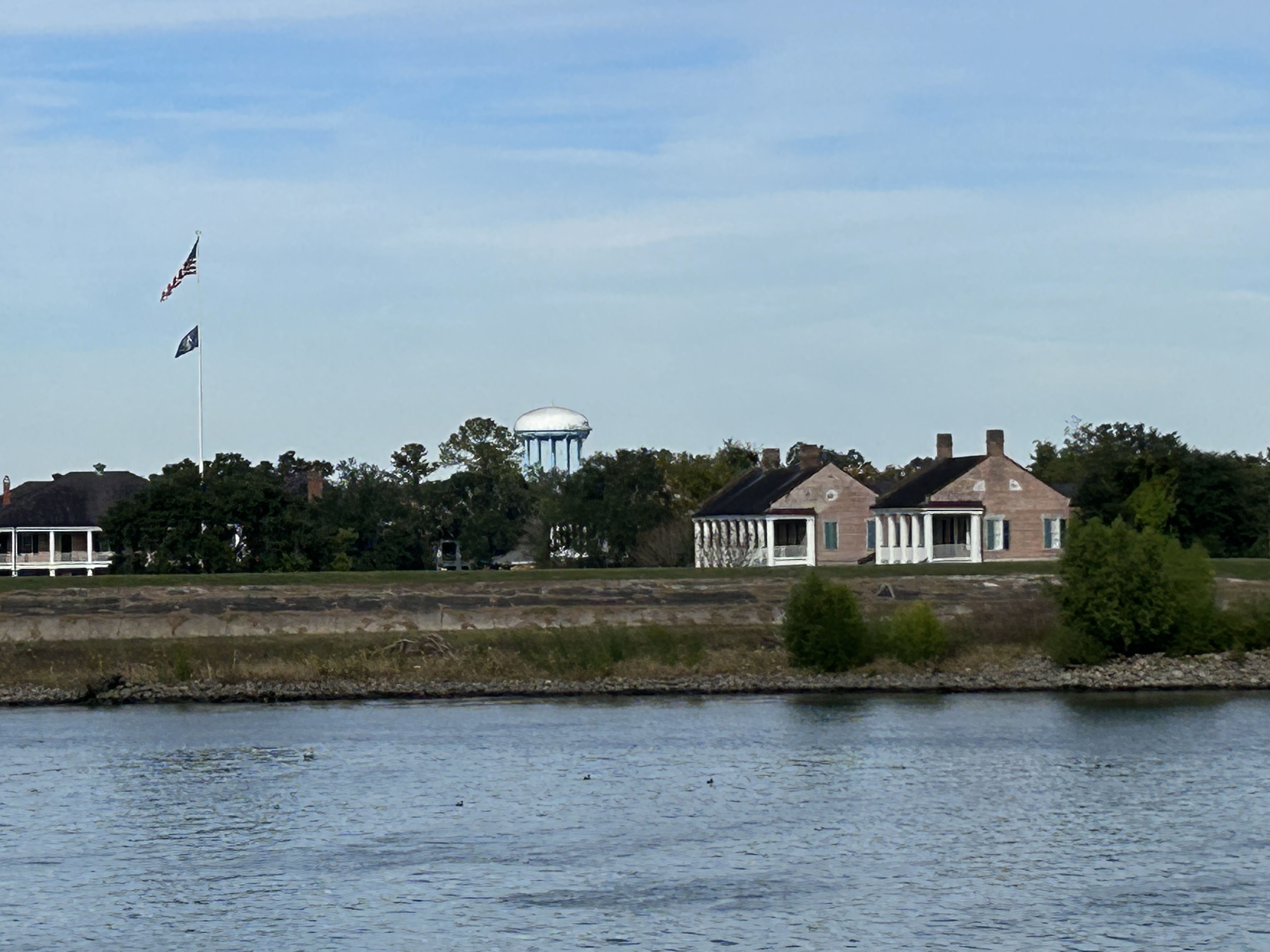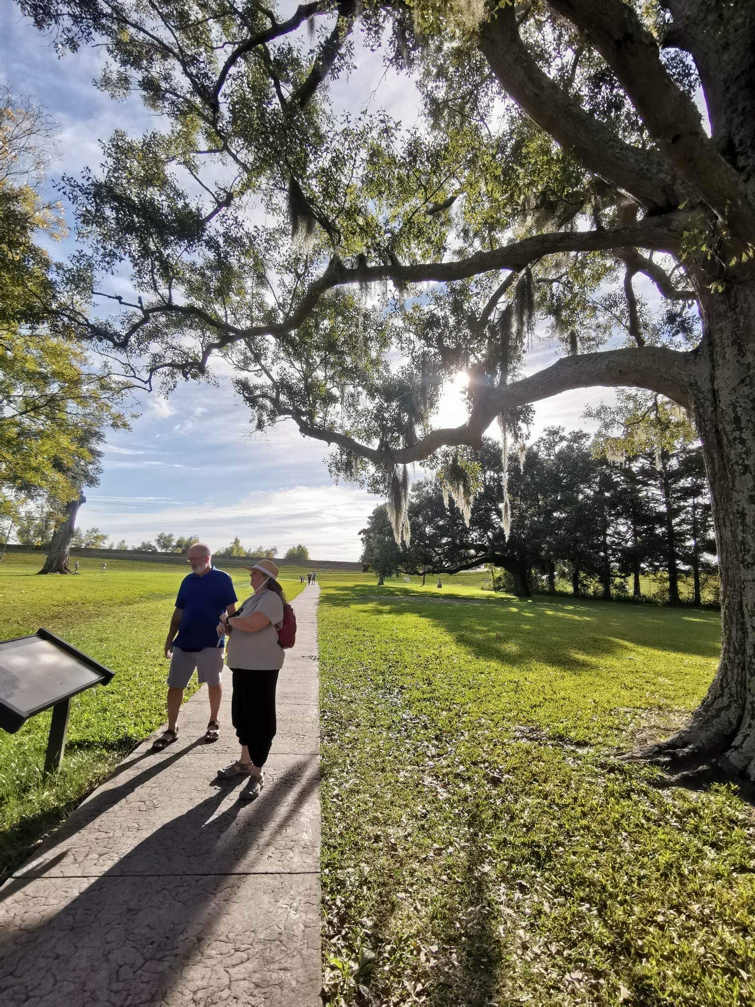 Lors d’un escale, nous avons également visité le site historique de la bataille de Chalmette lors de la guerre anglo-américaine de 1812 qui a opposé les États-Unis au Royaume-Uni, avec ses deux colonies du Bas-Canada et du Haut-Canada, entre juin 1812 et février 1815. Cette guerre est aussi connue sous le nom de seconde guerre d’indépendance. Sur ce champs de bataille se trouve également la maison Malus-Beauregard faisant partie de la plantation Chalmette. J’ai été surprise de découvrir que cette maison si imposante est en fait assez petite si on lui enlève ses grandes galeries (voir la photo où on la voit de côté). Sur ce terrain, il y a aussi des arbres à barbe. ![]()