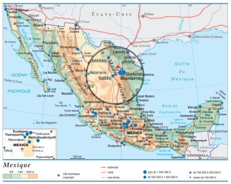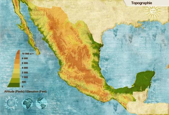 Ensuite, en arrivant à Monterrey et en contournant cette ville, il y a eu les montagnes. Selon les cartes topographiques (voir plus bas), elles sont de 6 000 à 10 000 pieds d’altitude. J’en parle dans cette vidéo. Plus tard, c’était le tour de la végétation. Vous pourrez le constater avec la vidéos et les photos… j’espère.