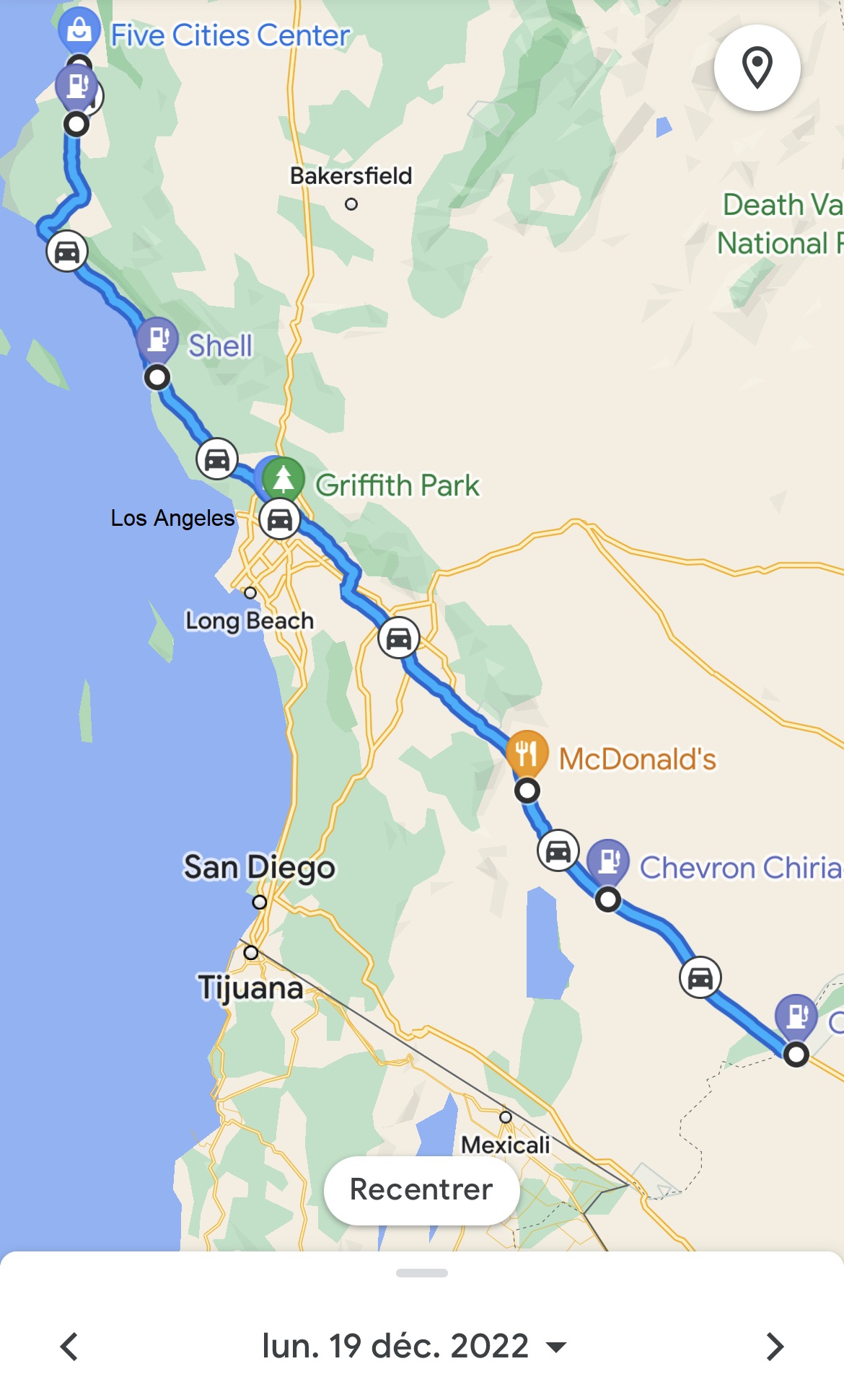 Au début de l’après-midi, pendant environ 1 h 30 minutes, nous avons fait du stationnement sur l’autoroute. Un camion avait répandu son chargement sur la route. Partis à 7 h 34 et arrivés à 17 h 18, nous avons roulé pendant 10 heures 16 minutes. J’étais bien contente de ne pas avoir conduit tout ce temps, même si j’aurai pu le faire pour une portion de la route. En arrivant, j’ai rencontré une québécoise qui nous a invité à l’accompagner avec son mari, au restaurant. mon ex-ami n’est pas venu. Moi, j’y suis allée avec plaisir afin de ne pas avoir à le supporter pendant quelques instants.