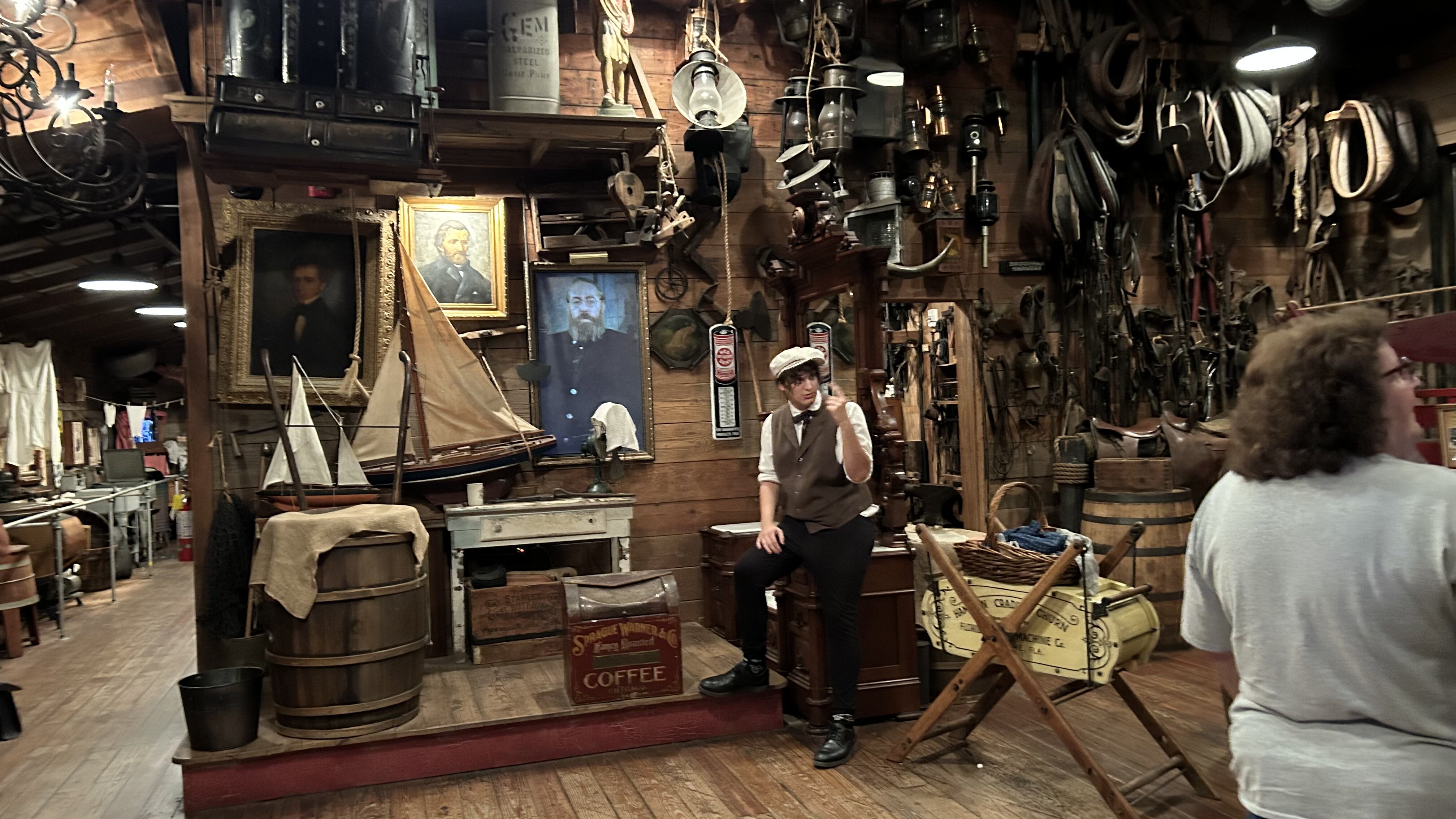 Sans nous en rendre compte, du moins c’est le cas pour moi, nous avons acheté un combo qui nous a permis de faire le tour de ville, mais aussi de visiter un magasin général et une prison avec animation. Le côté réaliste de ces lieux m’a plu. Le magasin général renfermait de belles pièces antiques. La prison, quant à elle, est aménagée à la manière de l’époque. Les personnages qui y sont rendent la visite plus que crédible. À l’arrière de la prison, on trouve un échafaud qui a vraiment servi à pendre des gens. Les deux animateurs étaient excellents et ils ont su recréer l’atmosphère qui devait régner dans ces lieux.
