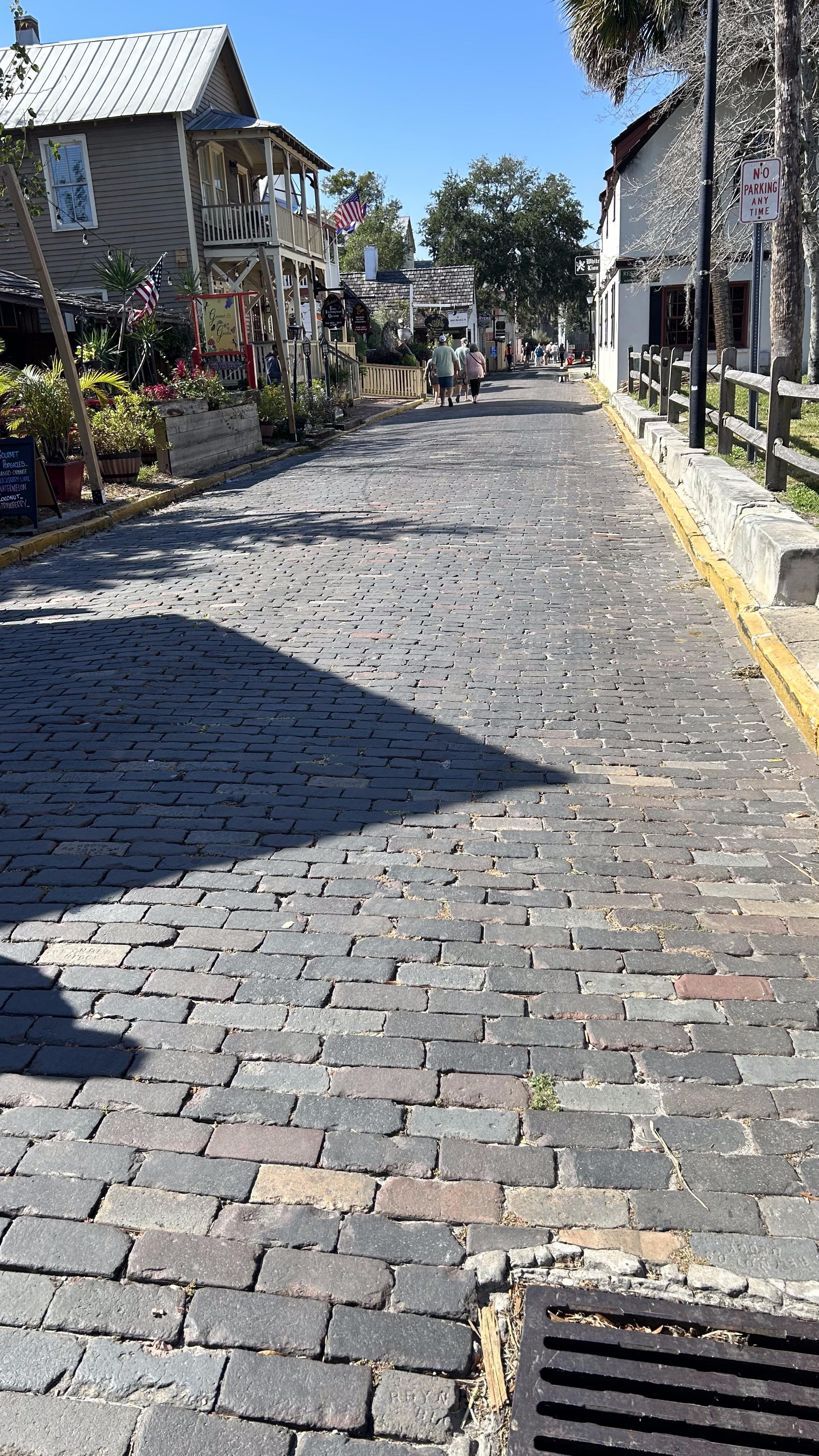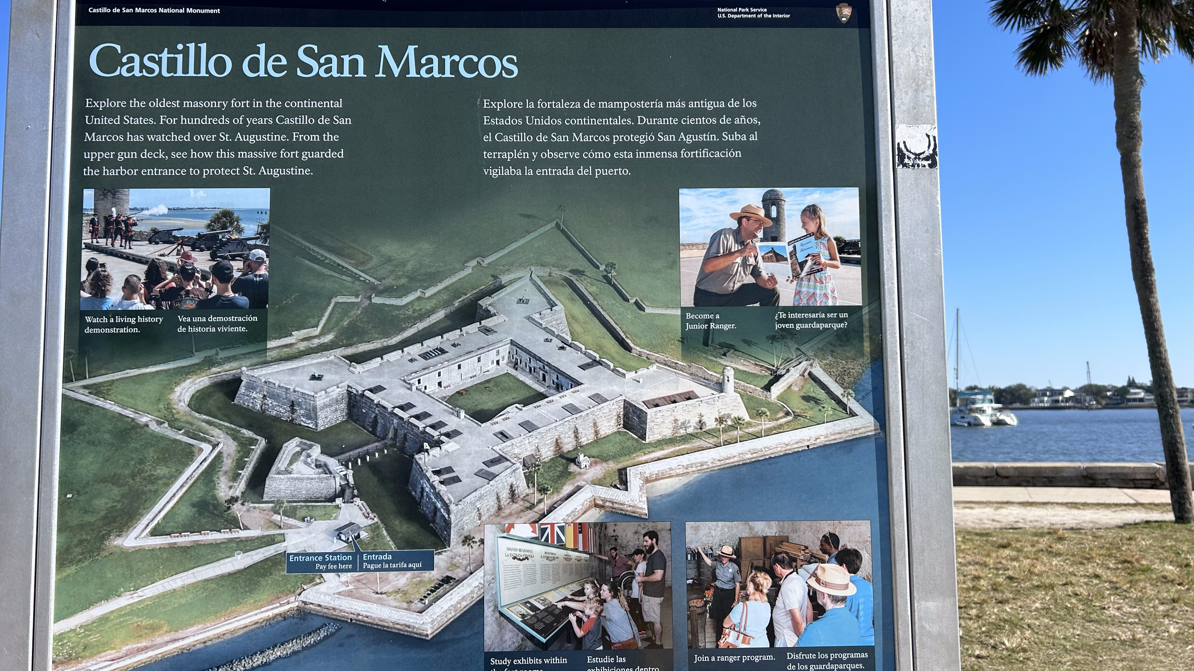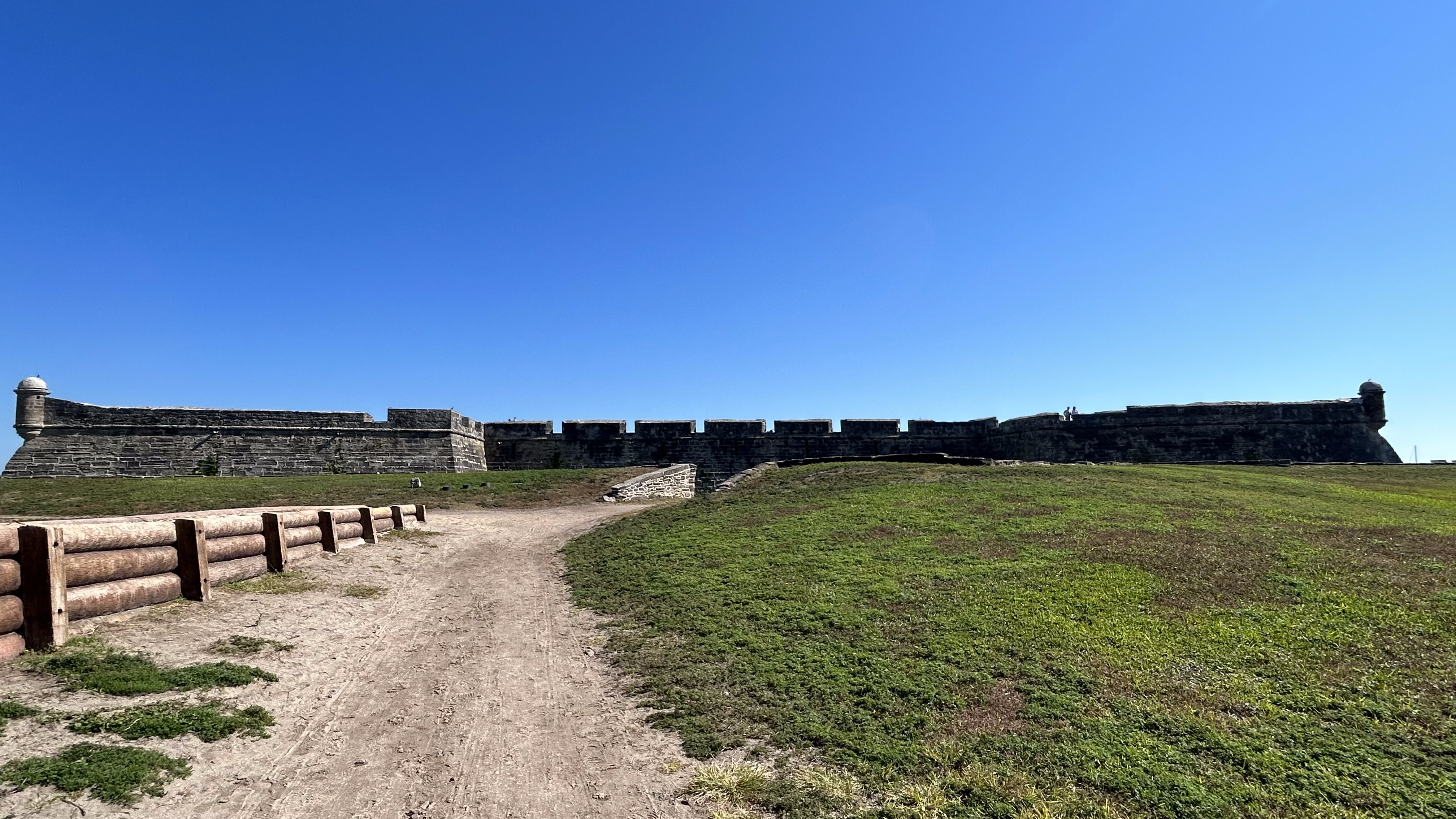 Je voulais aller voir de plus près la forteresse espagnole, Castillo de San Marcos. C’est donc ce que nous avons fait. Cette forteresse faite en coquina a été édifiée au XVIIe siècle. Elle porte encore les stigmates des combats du passé, mais elle est toujours intacte. Le coquina est un calcaire local poreux. Il a été fabriqué à partir de millions de coquillages pressés ensemble pendant des milliers d’années d’où la solidité de la structure.