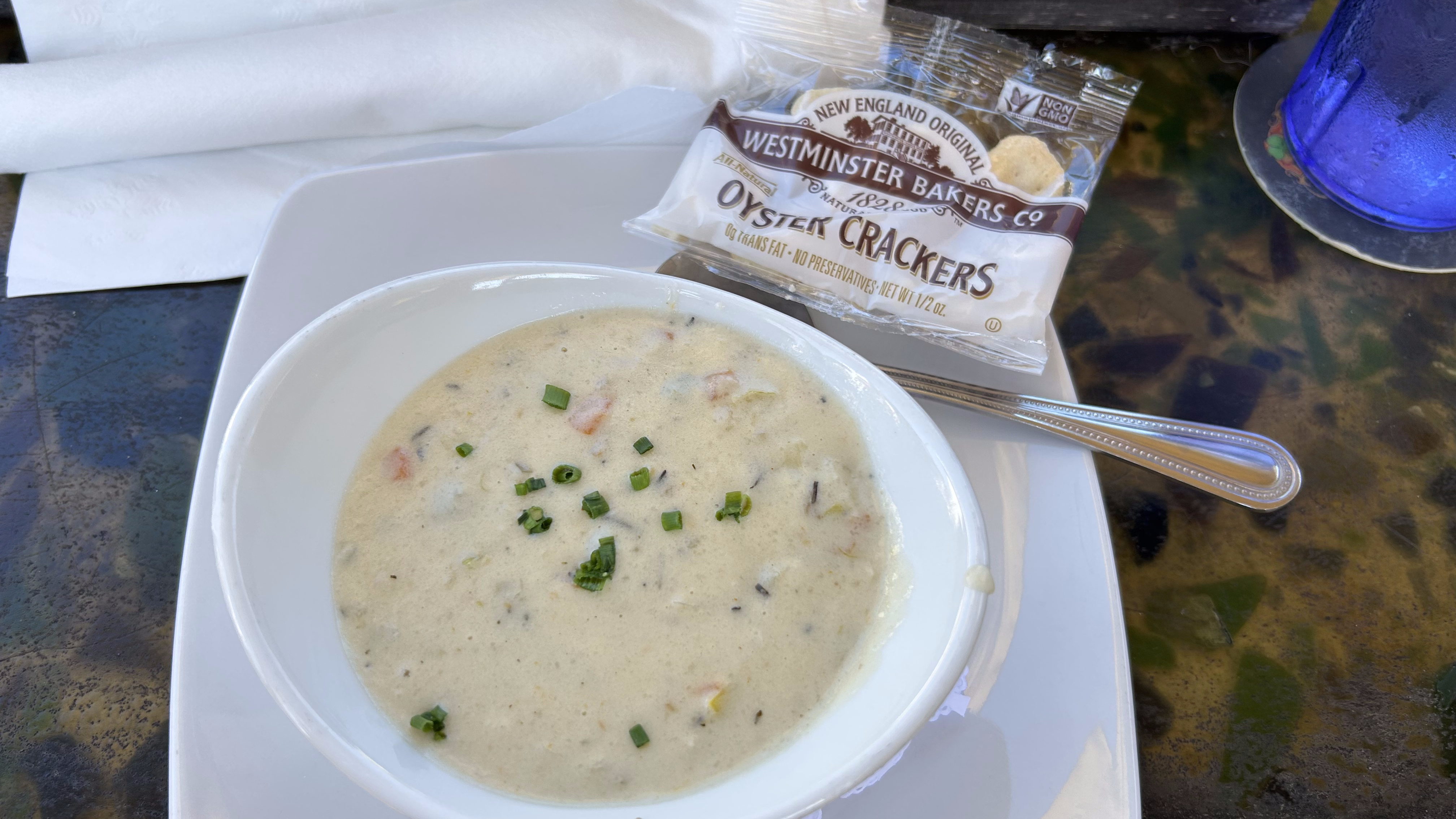 Nous avons ensuite marché dans les rues piétonnes du centre historique. Nous sommes entrés d’un restaurant qui semblait correct, car nous avions très faim. Nous y avons fait la découverte de la meilleure crème de palourdes du monde entier. Miam ! 😋 Un délice !! Dans ce centre historique aux rues pavées, nous avons vu des bâtiments ancestraux bien préservés.
