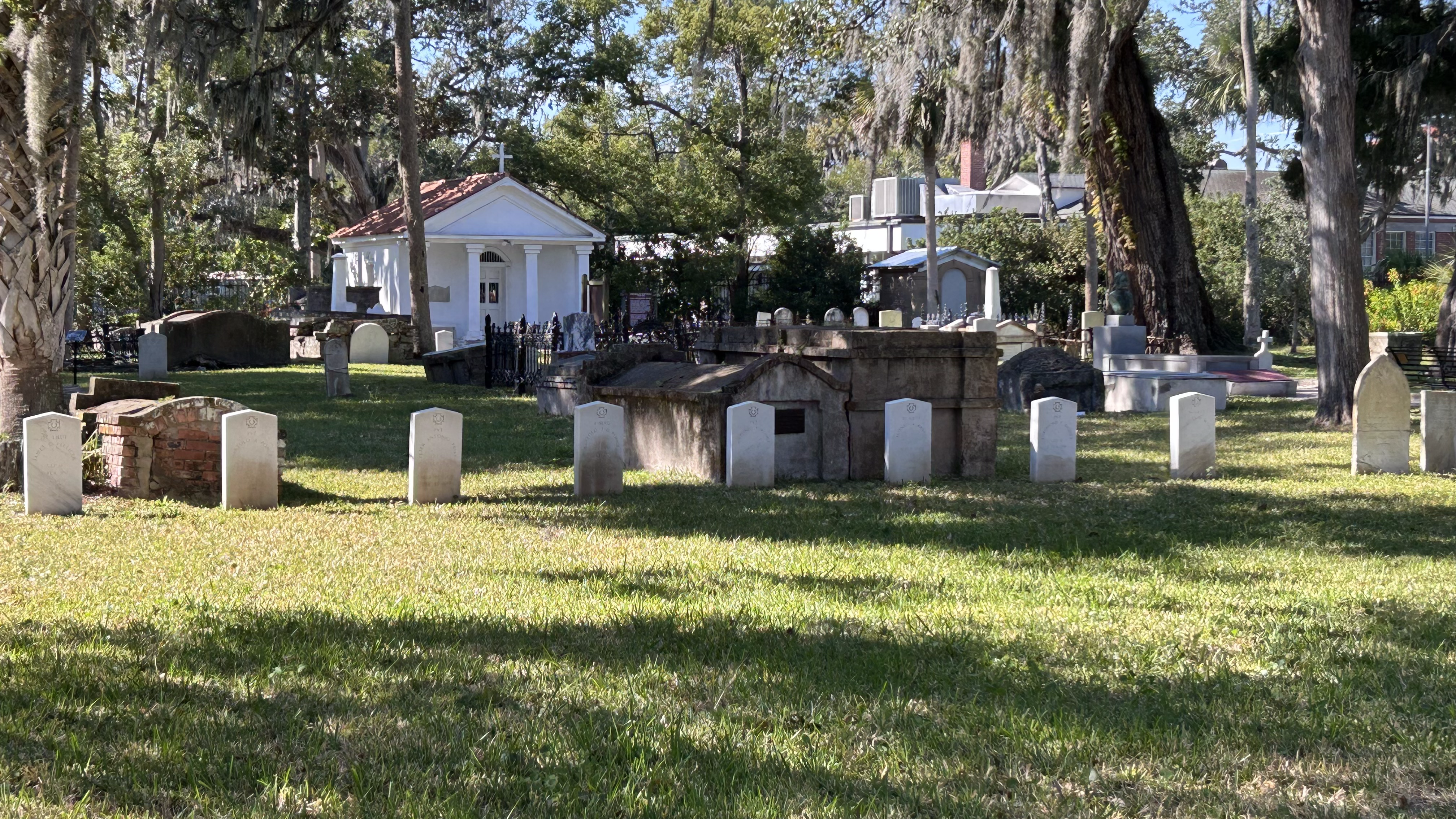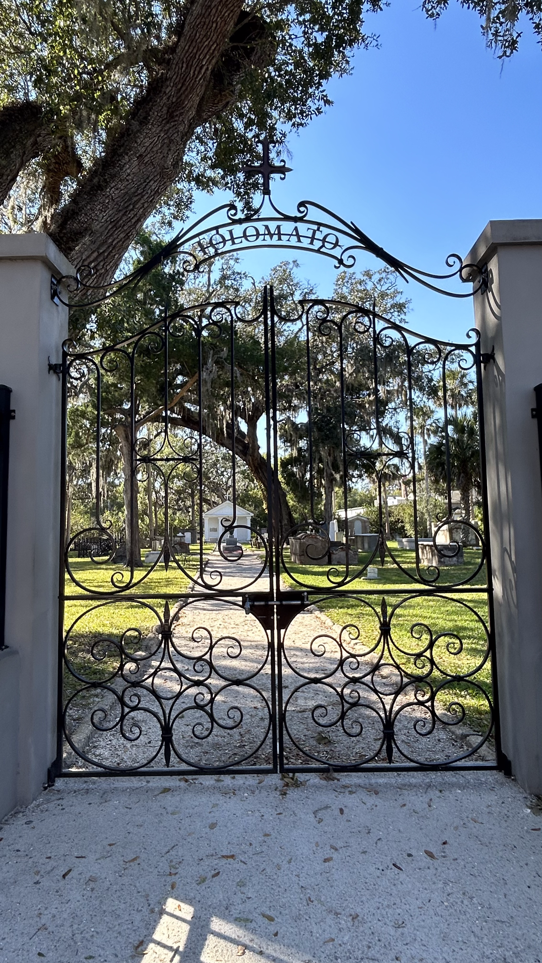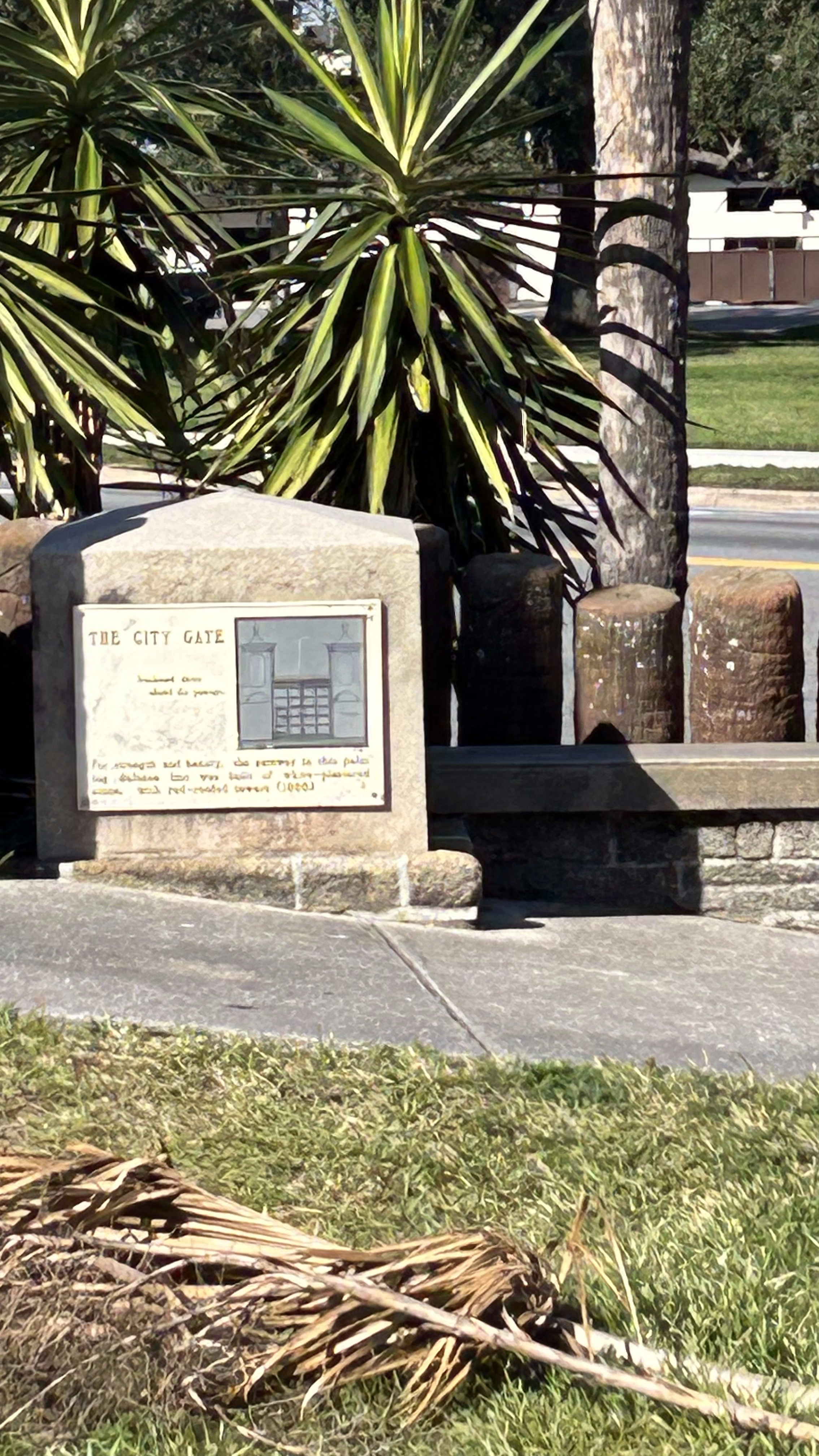 Rapidement, nous avons décidé de descendre du trolley et nous avons vu le Tolomato cimetery. Décidément, c’est mon année Cimetière ! 😲 Il n’est pas nécessaire de regarder bien longtemps pour constater que les pierres tombales et les tombeaux sont tttrrrèèèèèèssssss vieux. Un peu plus loin, il y a la porte de la ville du temps jadis et naguère.