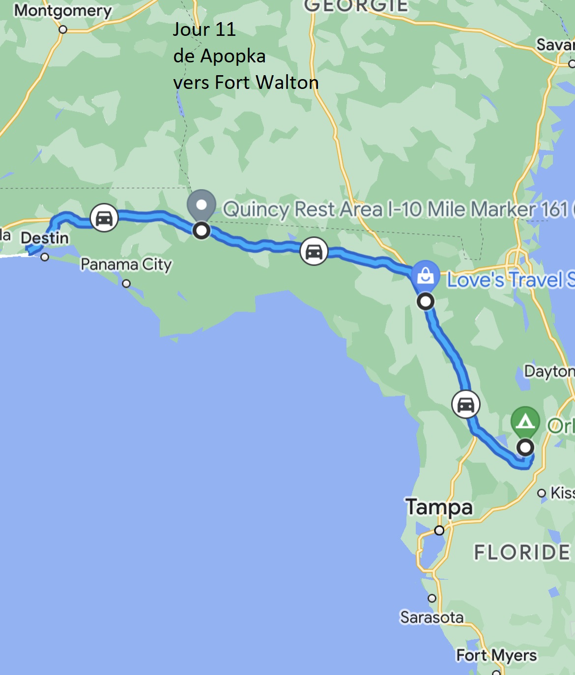 Depuis que je sais que Nancy et Yves seront à Destin, en Floride pendant que je serai dans les environs, j’avais envie de les visiter à cet endroit. Avant même de savoir que mes plans changeraient, j’avais demandé à Lynda et Réjean de passer par Destin pour voir Nancy et Yves. J’avais un bon pressentiment par rapport à cet endroit. De plus, j’avais hâte de revoir mes amis que j’avais rencontrés l’an passé, au Tacho’s.