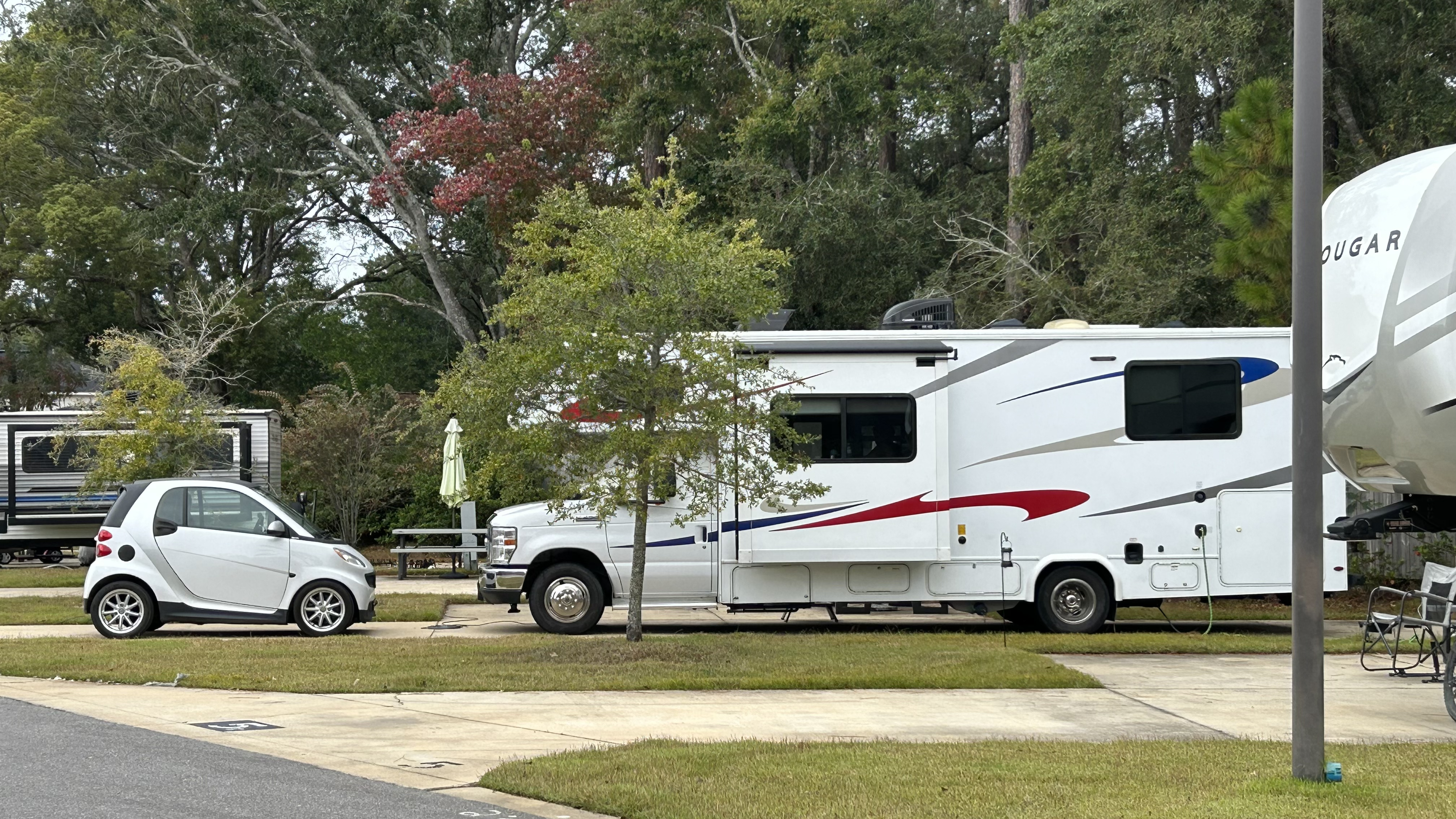 Le 11 novembre était une journée pour voyager, car il pleuvait. Nous étions stationnés dans un petit terrain de camping tout mignon. Il n’y avait personne qui occupait le bureau. Les salles de bain étaient grandes et bien entretenues. Dans la même pièce, il y avait une toilette et une douche. La salle de lavage aussi était propre. Il y avait une machine Keurig et du café qu’on pouvait utiliser. J’ai beaucoup aimé cet endroit, même s’il n’y avait pas de piscine. Il nous était toutefois possible d’utiliser la piscine d’un terrain de camping qui se situait tout près du nôtre.