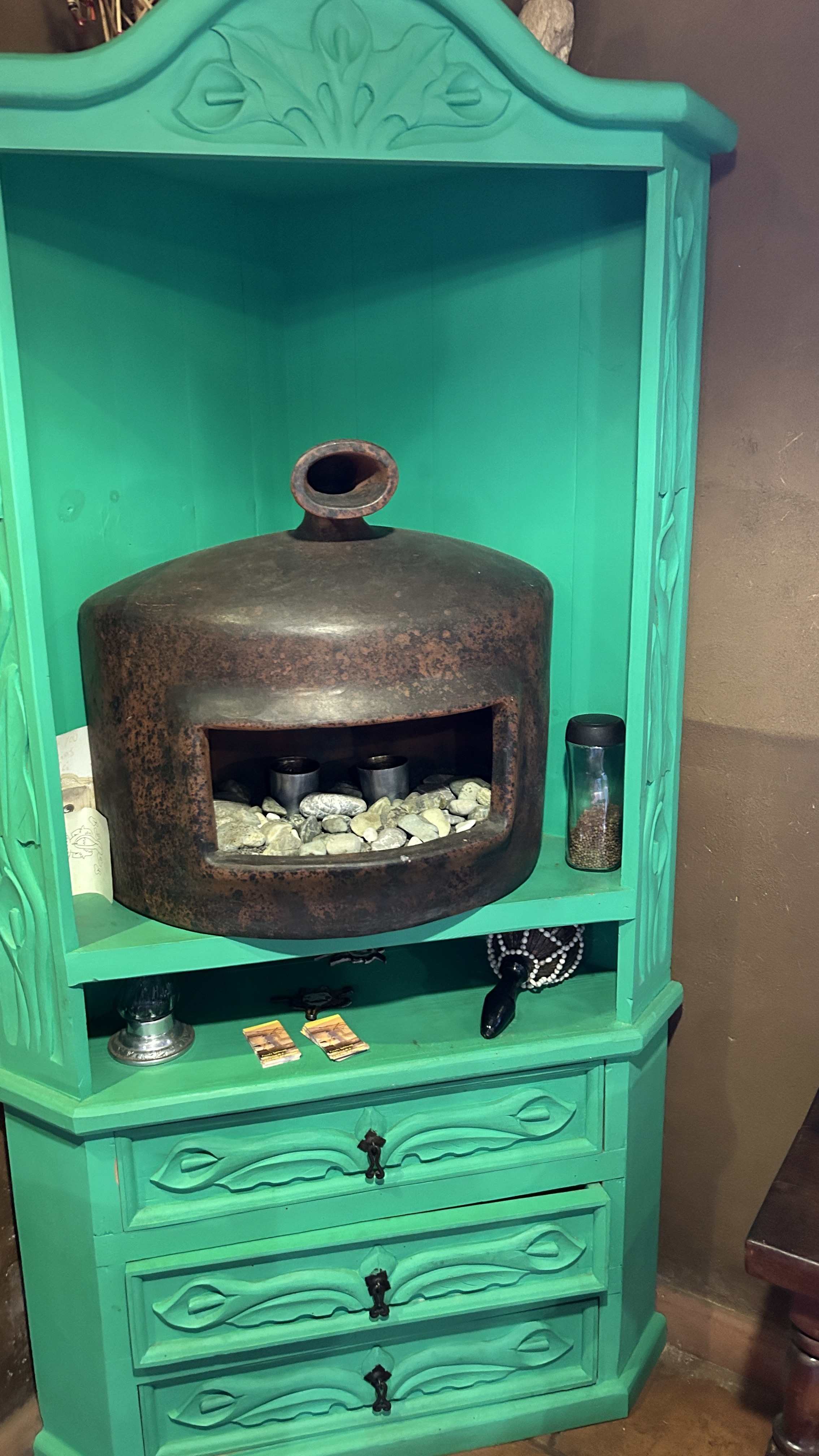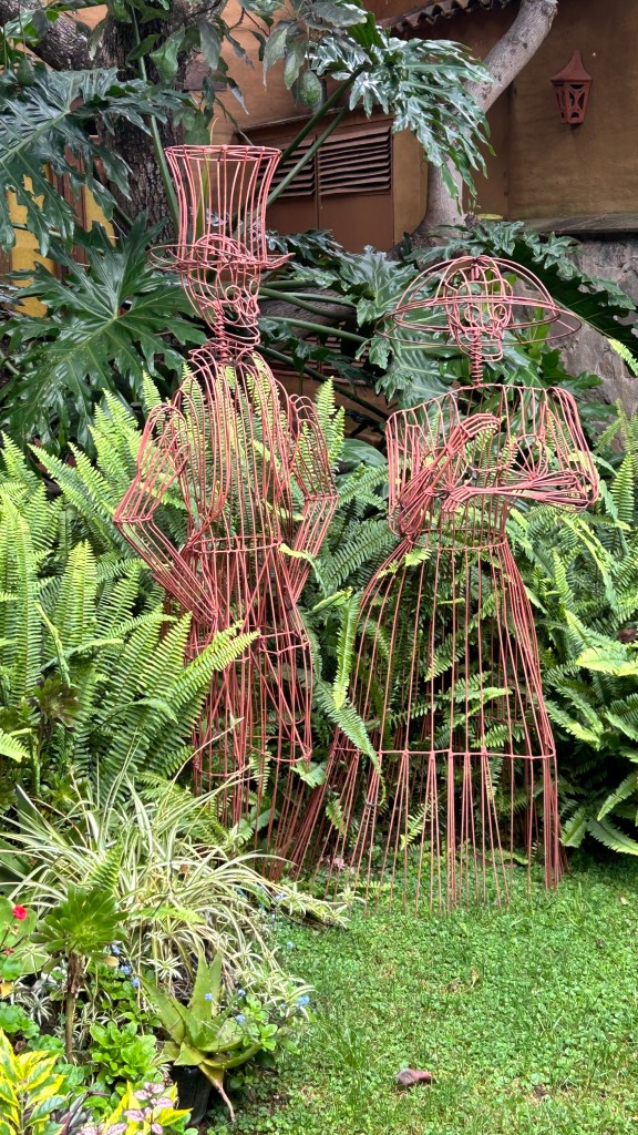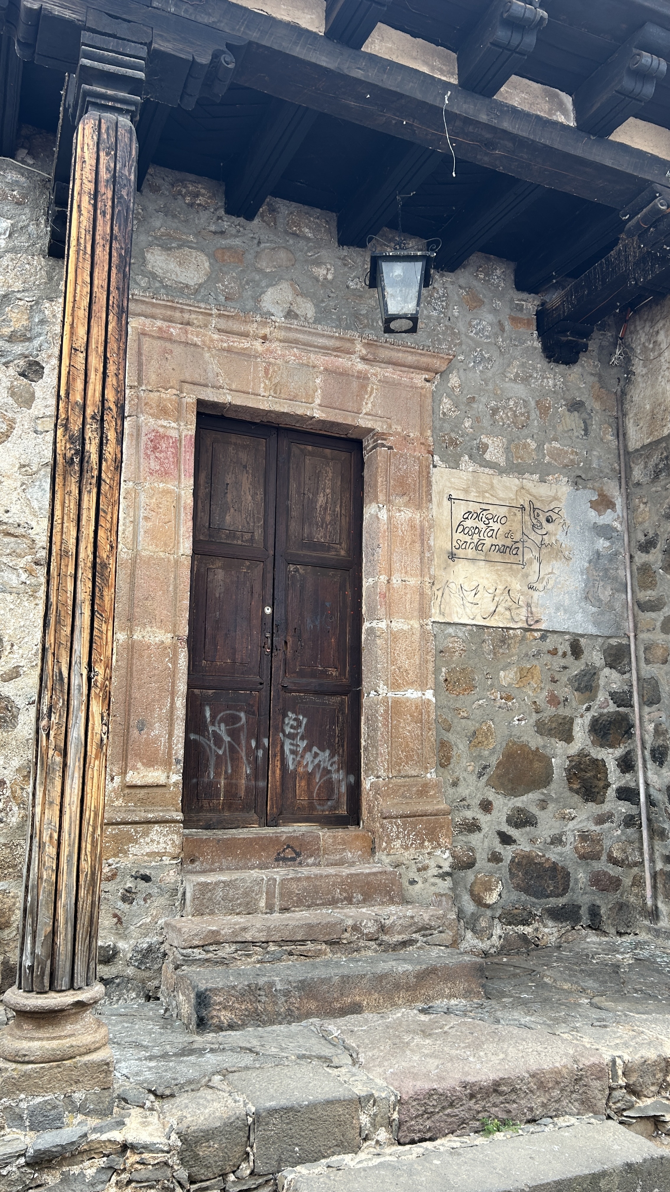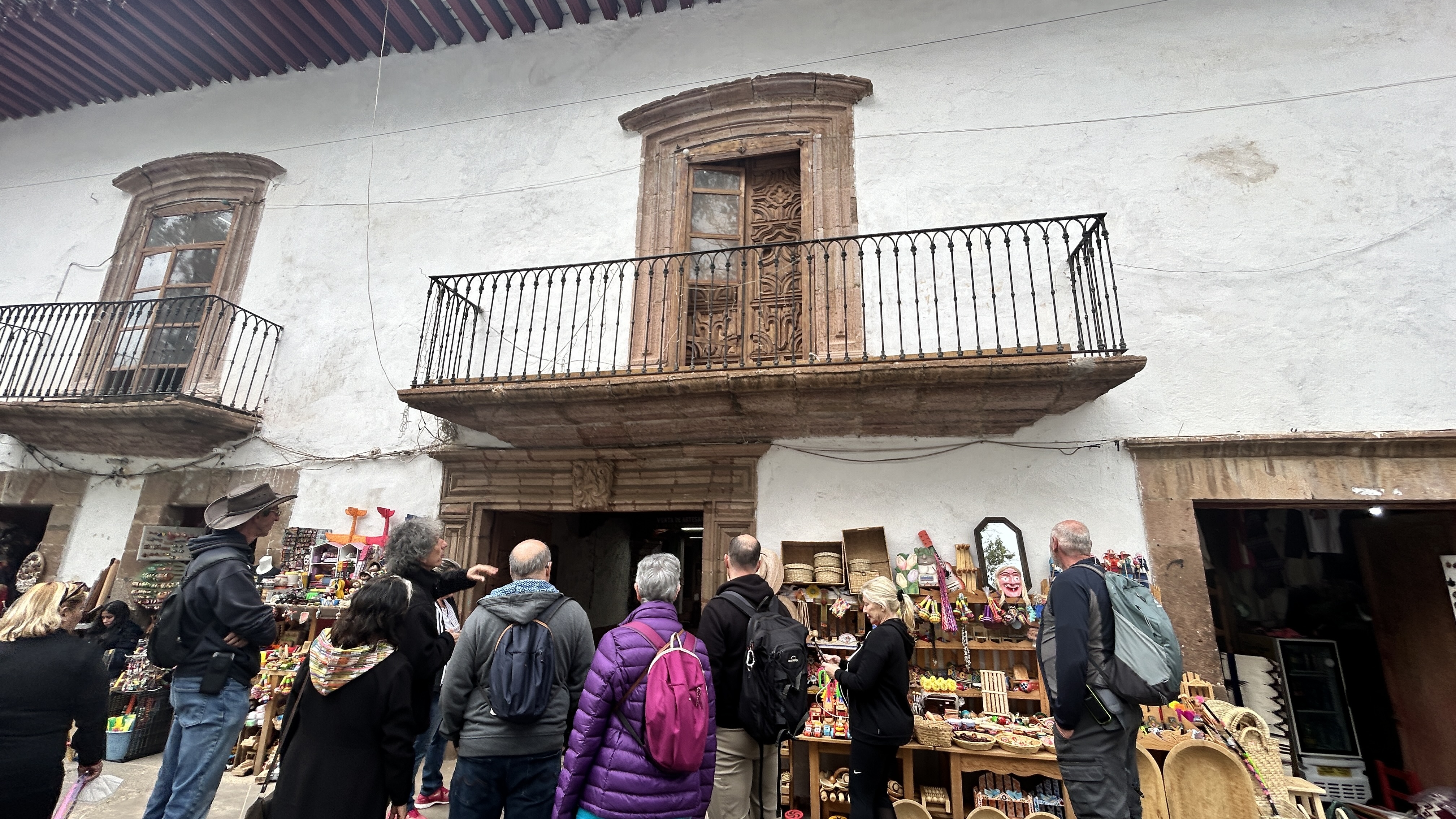 Éric et Vicky nous ont fait visiter leur auberge, en nous mentionnant que celle-ci était aménagée comme la plupart des maisons mexicaines. Les habitations sont fermées par de hauts murs, sur les quatre façades. À l’intérieur de cette muraille se trouve tout ce qu’on retrouve dans nos propriétés, mais disposé différemment. Bien entendu, leur auberge comporte plus de chambres qu’une habitation régulière. Dans la plupart des habitations, il y a un salon intérieur ainsi qu’un patio pour recevoir les invités, à l’entrée de la propriété. Les patios sont souvent des jardins aménagés pour recevoir avec des endroits protégés contre le soleil et d’autres non. Souvent, il y a des chambres au-dessus du salon. Un bâtiment comprenant les chambres à l’étage ainsi que la salle à manger et la cuisine au rez-de-chaussée fait face au premier patio. Ensuite vient le deuxième patio où la famille se retrouve dans l’intimité. Les salles de bain et les toilettes sont réparties dans les bâtiments. Un troisième patio se trouve au fond de la propriété où se trouvent les animaux, les jardins et les arbres fruitiers. La plupart des fenêtres donnent sur la cour intérieure. Souvent, le salon avant est transformé en boutique. En campagne, la muraille sera parfois moins haute et les jardins pourraient être plus exposés.