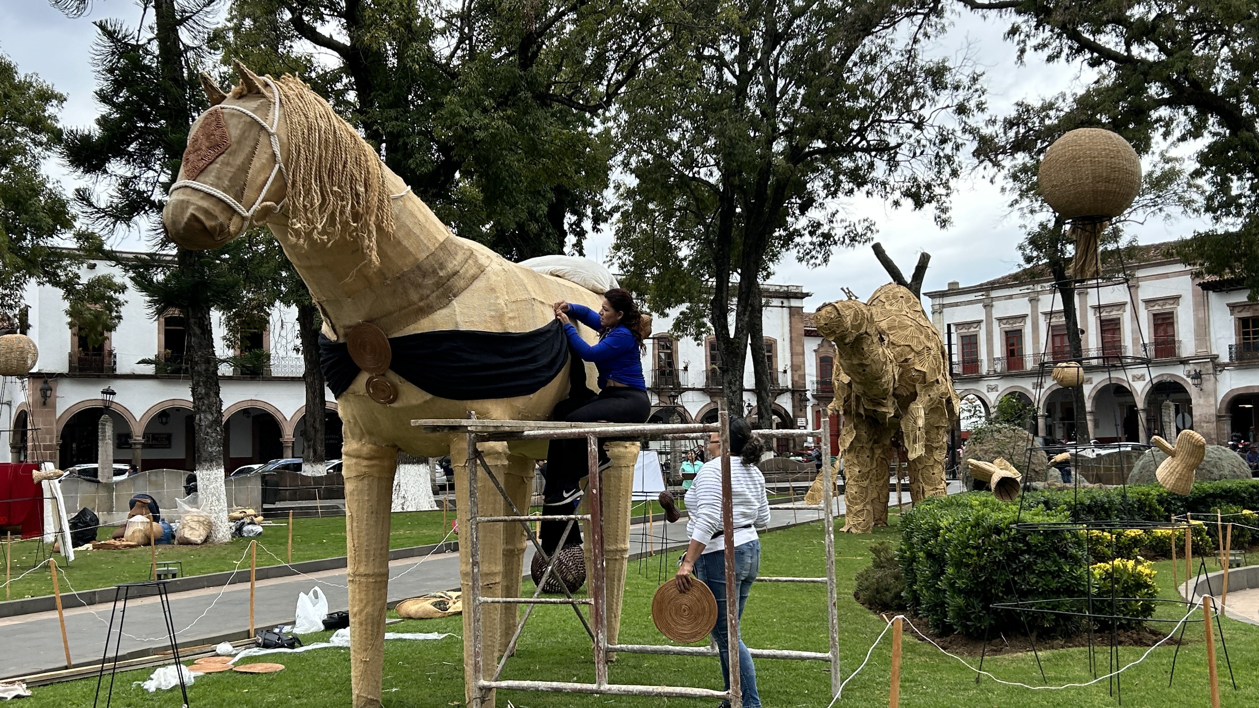 L’état du Michoacán est le plus artisanal du Mexique. Ses marchés regorgent d’articles tous plus beaux et colorés les uns que les autres. La qualité de leur travail est impressionnante. Ils utilisent une panoplie de matériaux allants du plus simple tels que la chuspata, le coton ou le plastique, au plus complexe tels que le cuivre, l’argent ou l’or. Plusieurs décorations pérupechas sont faites avec la chuspata. La chuspata est une herbe qu’on trouve dans le lac Pátzcuaro. Ils l’utilisent séchée pour faire à peu près n’importe quoi. Dans mes photos, il y a quelques exemples. Ils font aussi des tapis ou d’autres articles avec des épis de blé tressés. Ils décorent également leur maison avec des banderoles de papier ou de plastique. Ces banderoles s’appellent « picados de papel o picados de plastico ». Le mot picado, salutation à mon amie Jocelyne 😉, vient du fait qu’anciennement ces banderoles étaient poinçonnées pour produire les dessins qui s’y trouvent. Accumulation de trous qui produisait le dessin désiré. Maintenant, ces banderoles sont faites à l’aide de presses. Les Mexicains changent les banderoles en fonction de la fête qu’ils souhaitent souligner, car les dessins qui s’y trouvent sont adaptés pour chaque occasion.