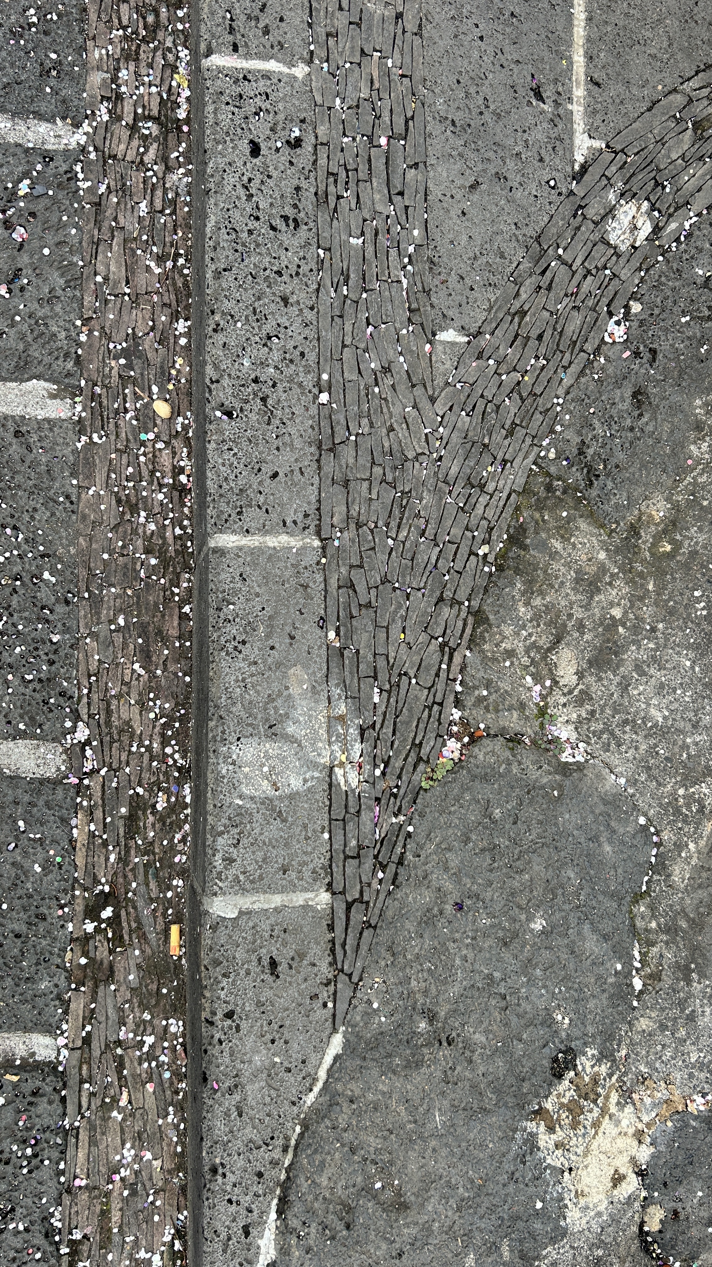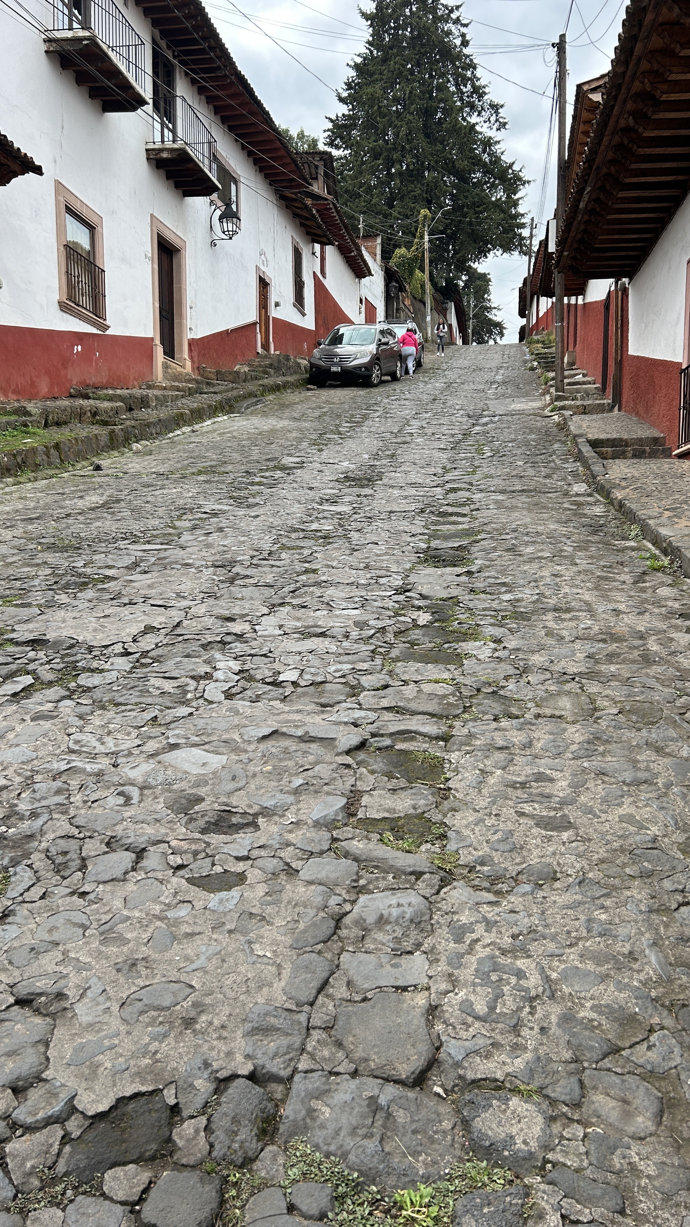 Les Mexicains sont des artistes dans l’âme. Ils font des décorations même dans leurs rues pavées. Comme ils sont aussi économes, ils utilisaient parfois des côtes ou des vertèbres de bœufs entre les carreaux au sol.