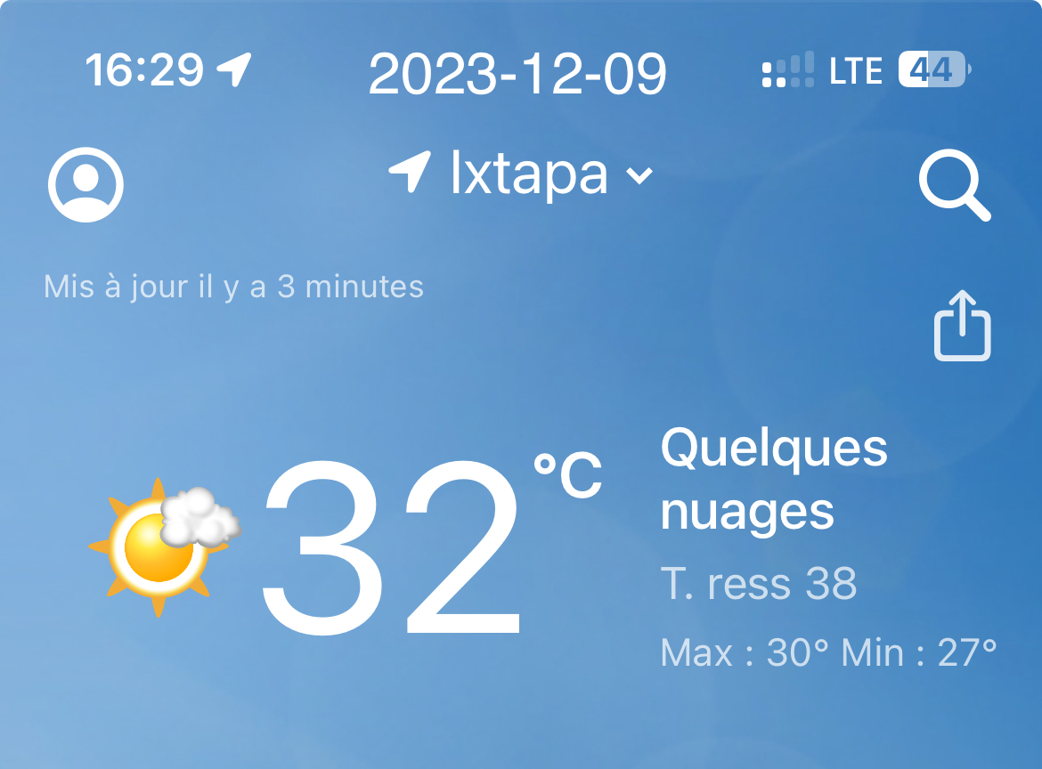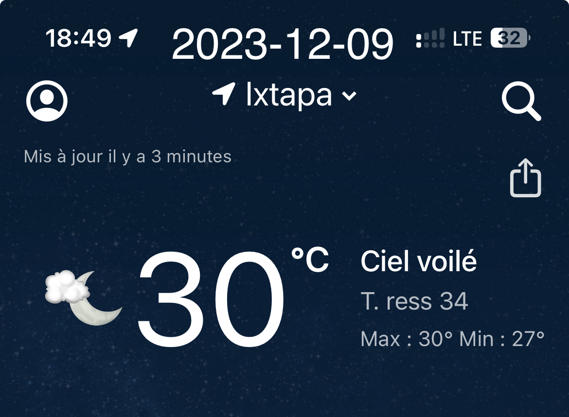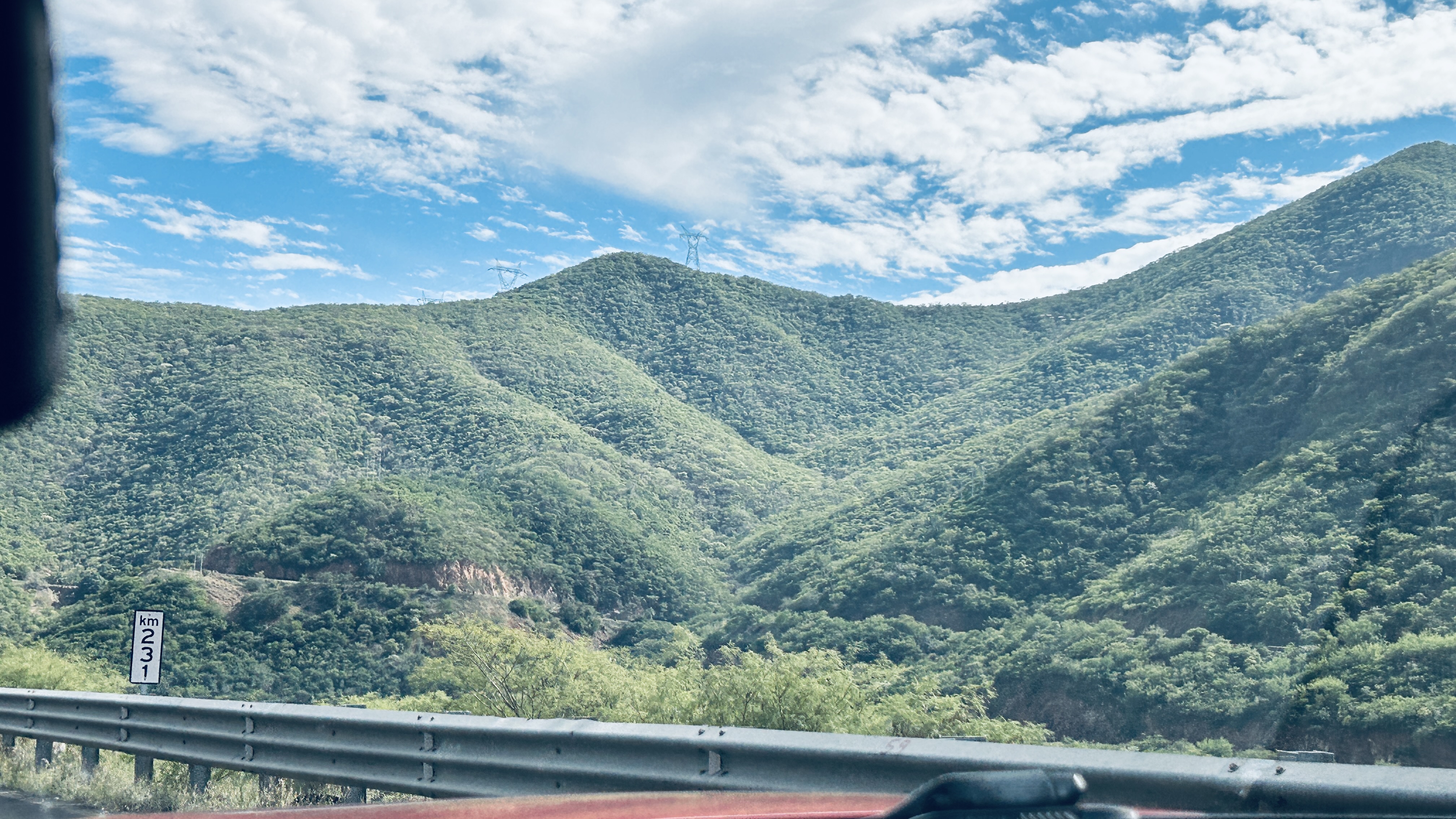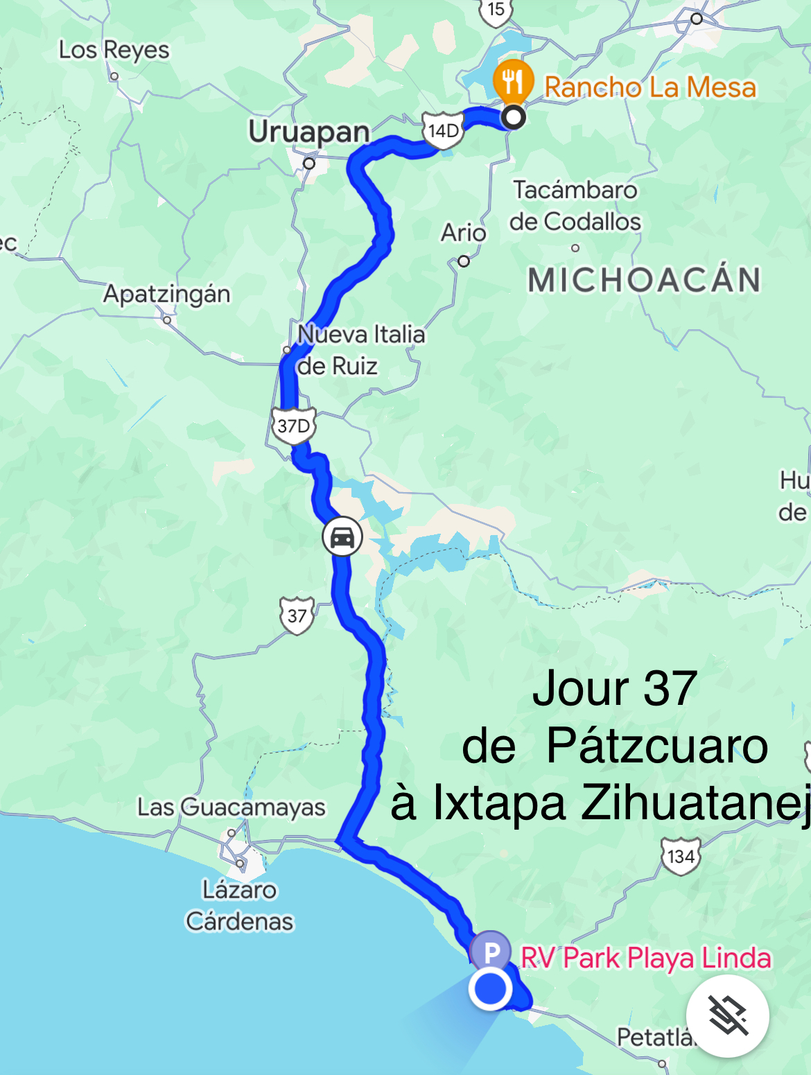 Après un magnifique séjour à Pátzcuaro, le 7 décembre 2023, j’ai repris la route en compagnie de Nancy et Yves. Il était 11 h 30. Il a plu les deux premières heures de notre parcours et nous avons vécu l’effet de l’altitude à l’envers. C’était moins dérangeant que lorsque nous étions en altitude, même assez drôle. Après les bouteilles qui explosent sous la pression interne, les v’là ti pas qu’elles ratatinent. Dans les photos, vous verrez un sac de chips de Chantal, à notre arrivée à Pátzcuaro. Sur une autre, vous verrez une bouteille de 4 litres d’eau, pendant notre route vers Ixtapa Zihuatanejo. Tout au long de notre route, j’entendais des clacs assez sonores, comme je ne voyais pas ma bouteille d’eau, je ne comprenais pas que ce bruit venait d’elle. Un moment donné, nous sommes arrêtés après un péage et j’ai cherché ma bouteille. J’ai tellement ri en la voyant ! 😂🤣