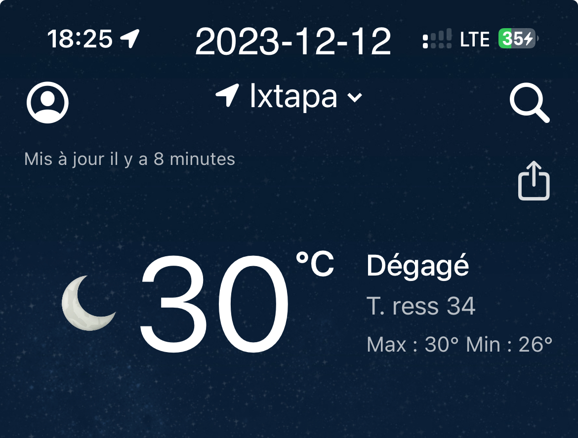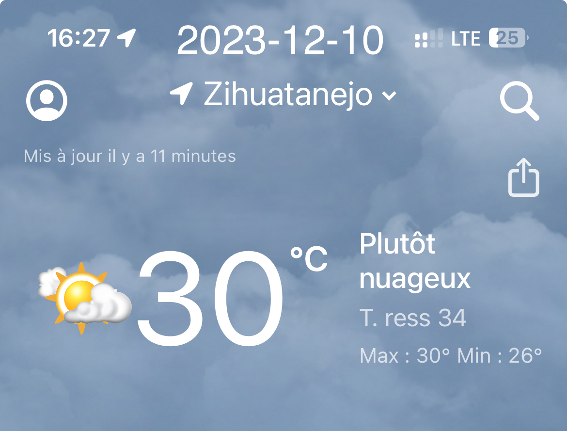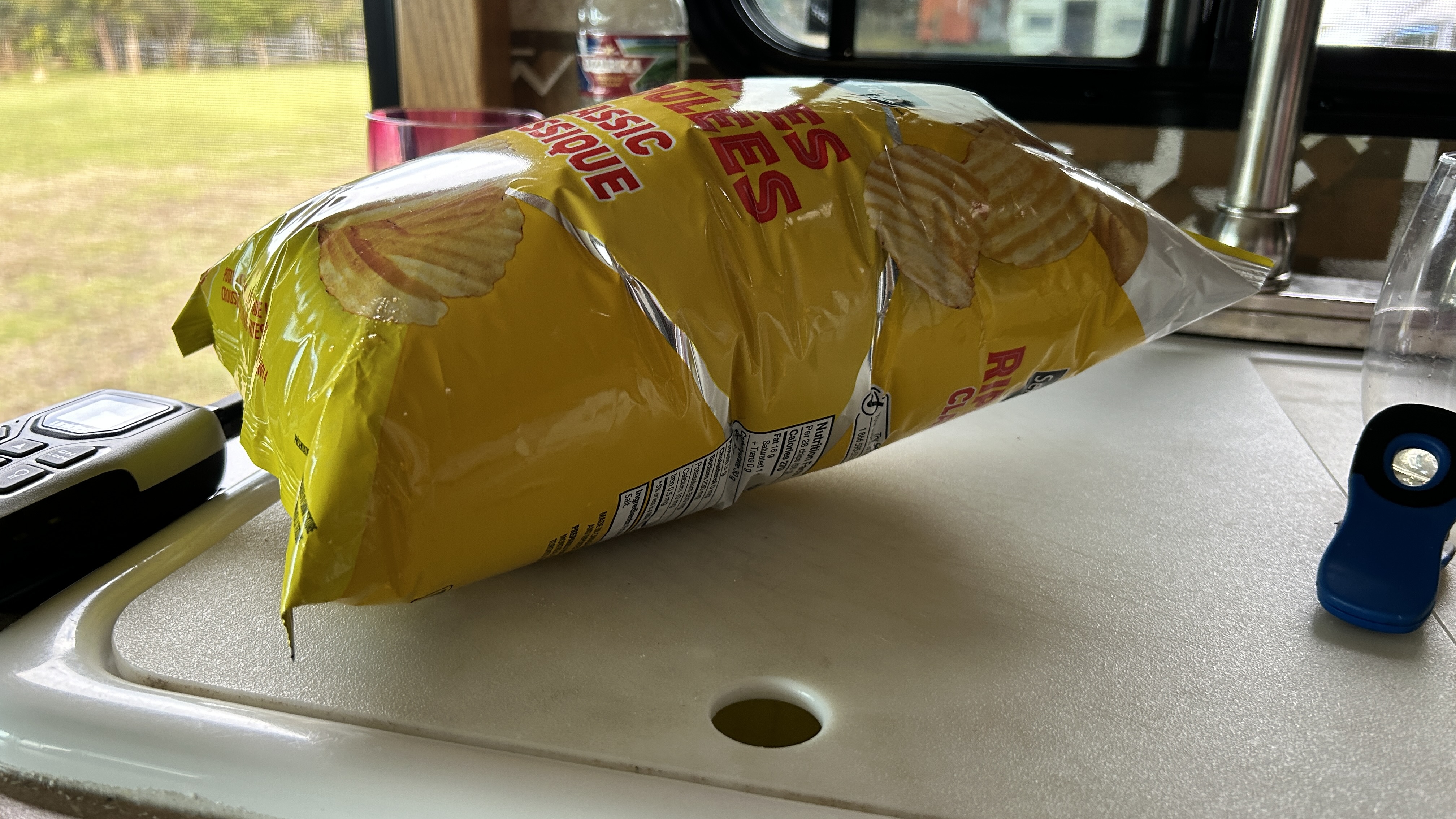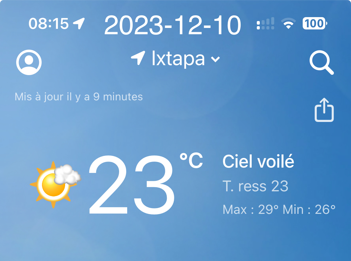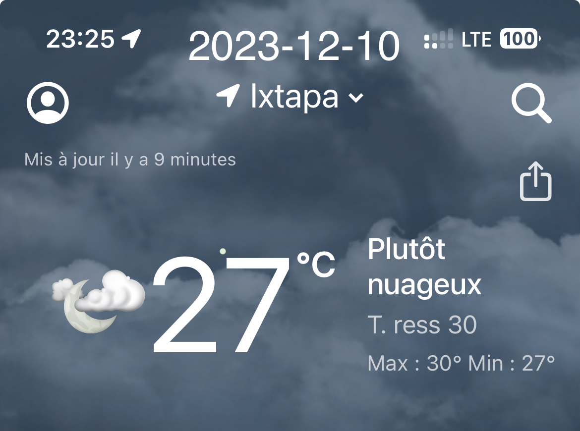 Après un magnifique séjour à Pátzcuaro, le 7 décembre 2023, j’ai repris la route en compagnie de Nancy et Yves. Il était 11 h 30. Il a plu les deux premières heures de notre parcours et nous avons vécu l’effet de l’altitude à l’envers. C’était moins dérangeant que lorsque nous étions en altitude, même assez drôle. Après les bouteilles qui explosent sous la pression interne, les v’là ti pas qu’elles ratatinent. Dans les photos, vous verrez un sac de chips de Chantal, à notre arrivée à Pátzcuaro. Sur une autre, vous verrez une bouteille de 4 litres d’eau, pendant notre route vers Ixtapa Zihuatanejo. Tout au long de notre route, j’entendais des clacs assez sonores, comme je ne voyais pas ma bouteille d’eau, je ne comprenais pas que ce bruit venait d’elle. Un moment donné, nous sommes arrêtés après un péage et j’ai cherché ma bouteille. J’ai tellement ri en la voyant ! 😂🤣