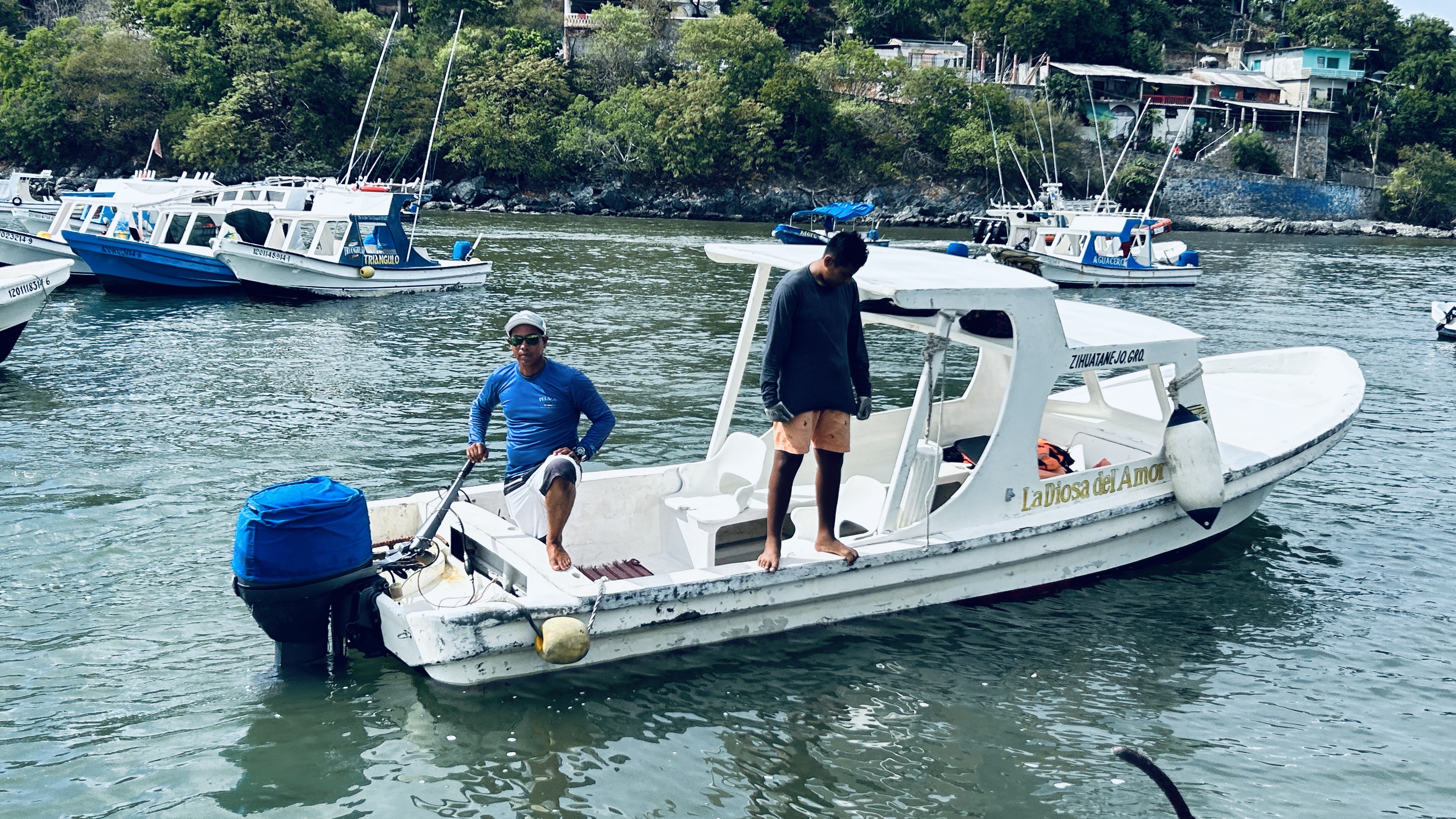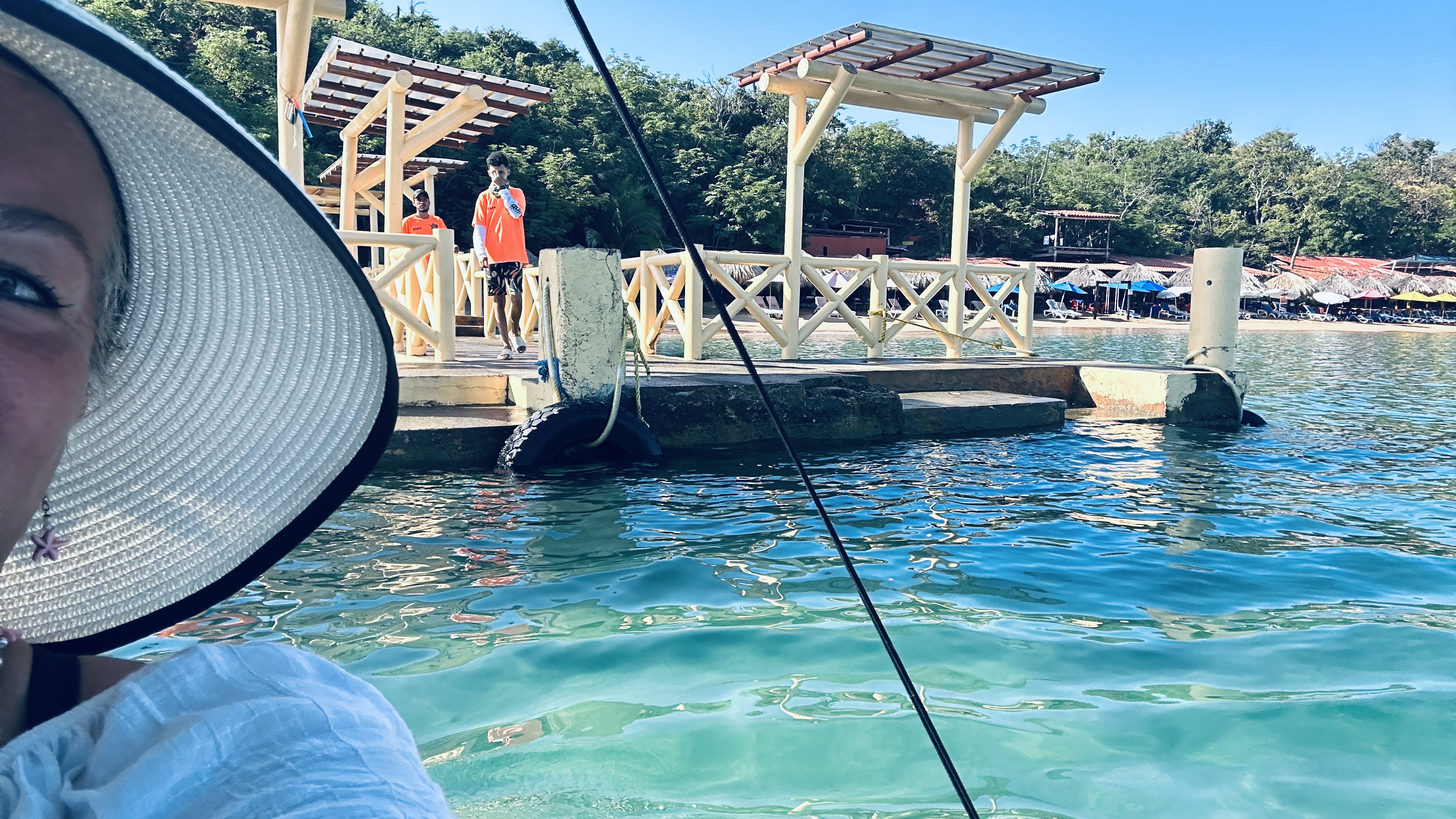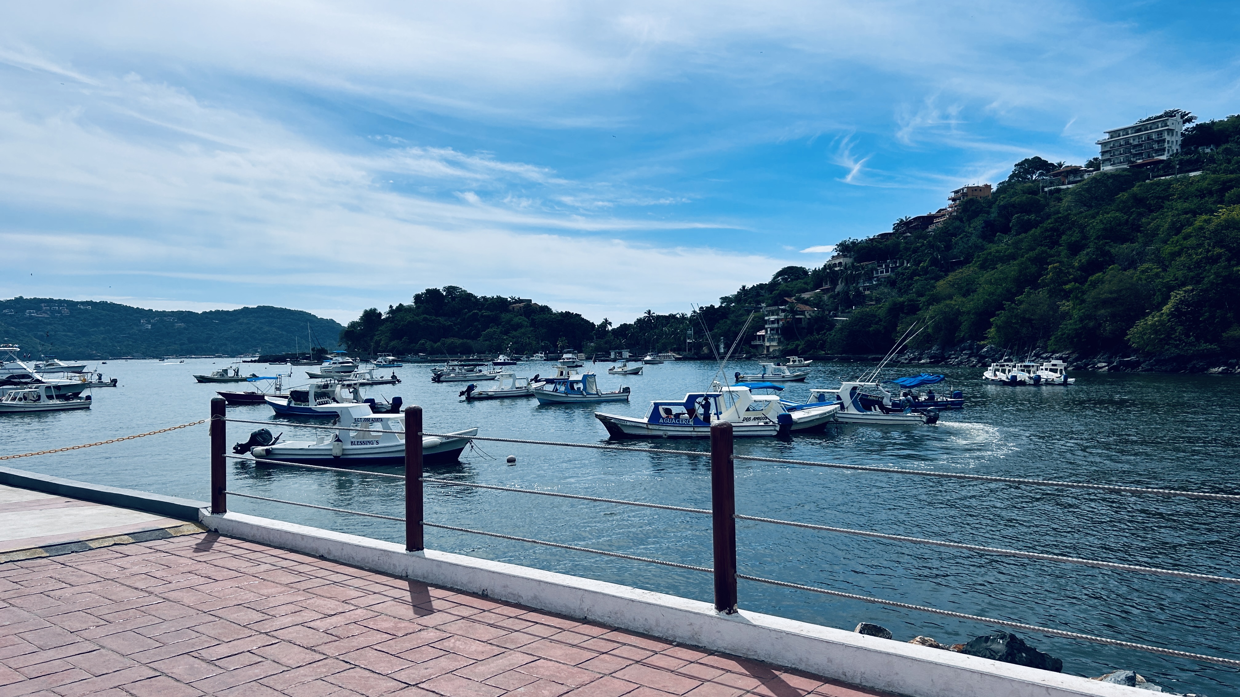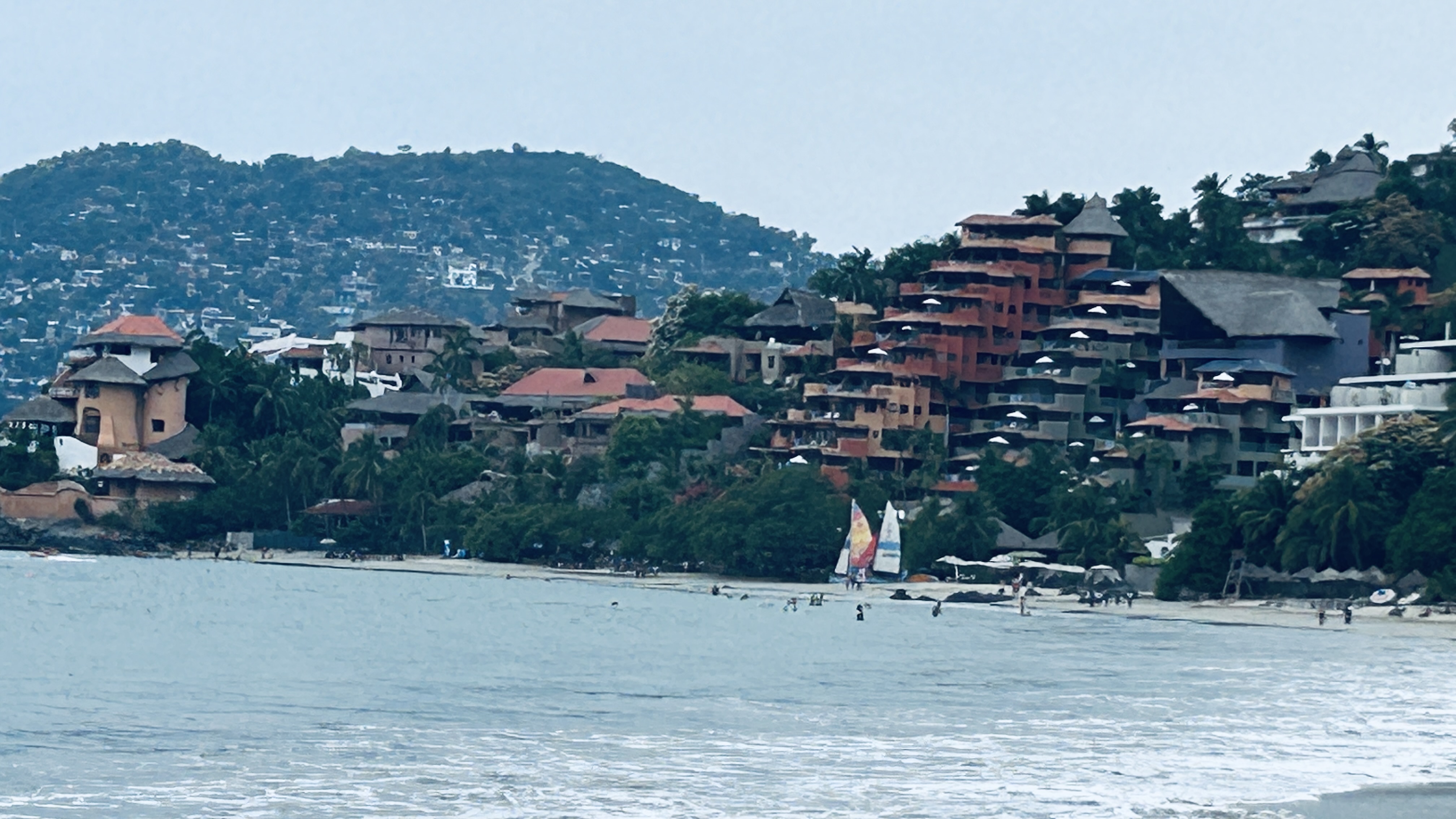 Le 14 décembre, Nancy, Yves et moi sommes allés visiter la Playa Las Gatas (plage Les chattes). J’ai eu la chance de stationner mon camion à côté de la billetterie, car un homme m’a fait une place toute spéciale. 😊 C’est en bateau à partir du port de Zihuatanejo que nous avons atteint la plage. Jocelyne et Jean ont tenté de venir en voiture ou à pied, mais n’ont pas réussi. C’est qu’ils avaient leur chariot et que ce chariot ne pouvait pas être apporté dans le bateau. Ils ont donc passé la journée sur la Playa La Ropa. C’était un lieu agréable où on avait une belle perspective de la ville de Zihautanejo. L’eau y est transparente, car le sable est fait en grande partie de coraux. Nancy et moi sommes allées marcher jusqu’à la pointe de cette plage. C’est de cet endroit que nous avions le meilleur point de vue sur Zihuatanejo. Regarde maman, des cactus-doigts que tu aimes. Ils servent de haie ici. Comme le transport en bateau cesse à 17 h, nous avons dû revenir tôt. Je serais restée plus longtemps si j’avais pu.