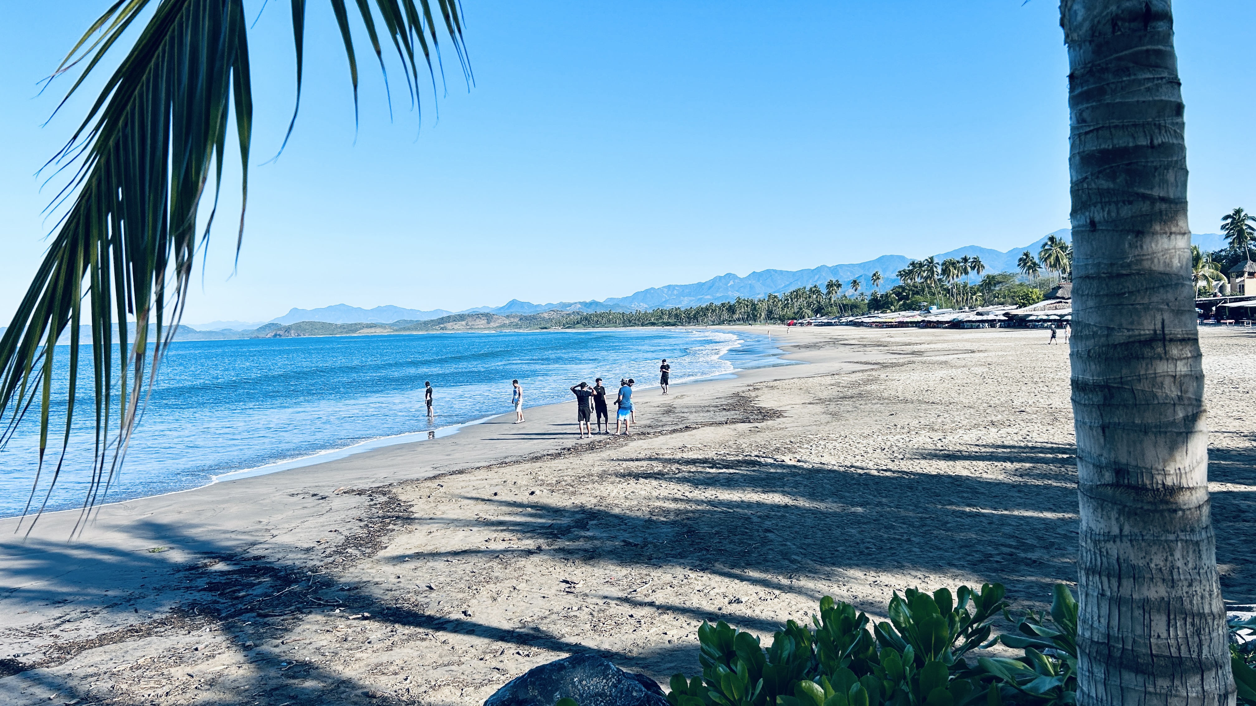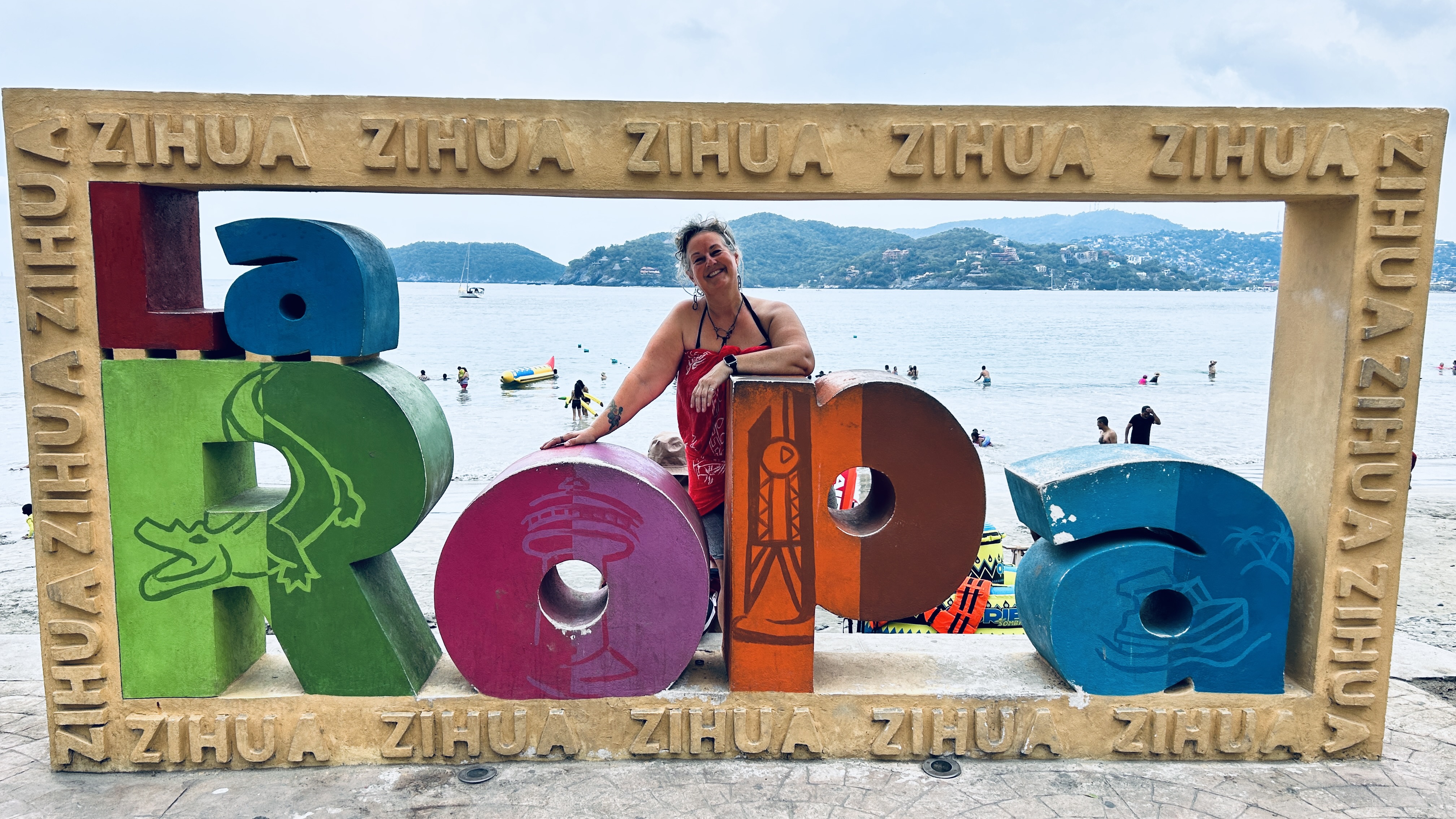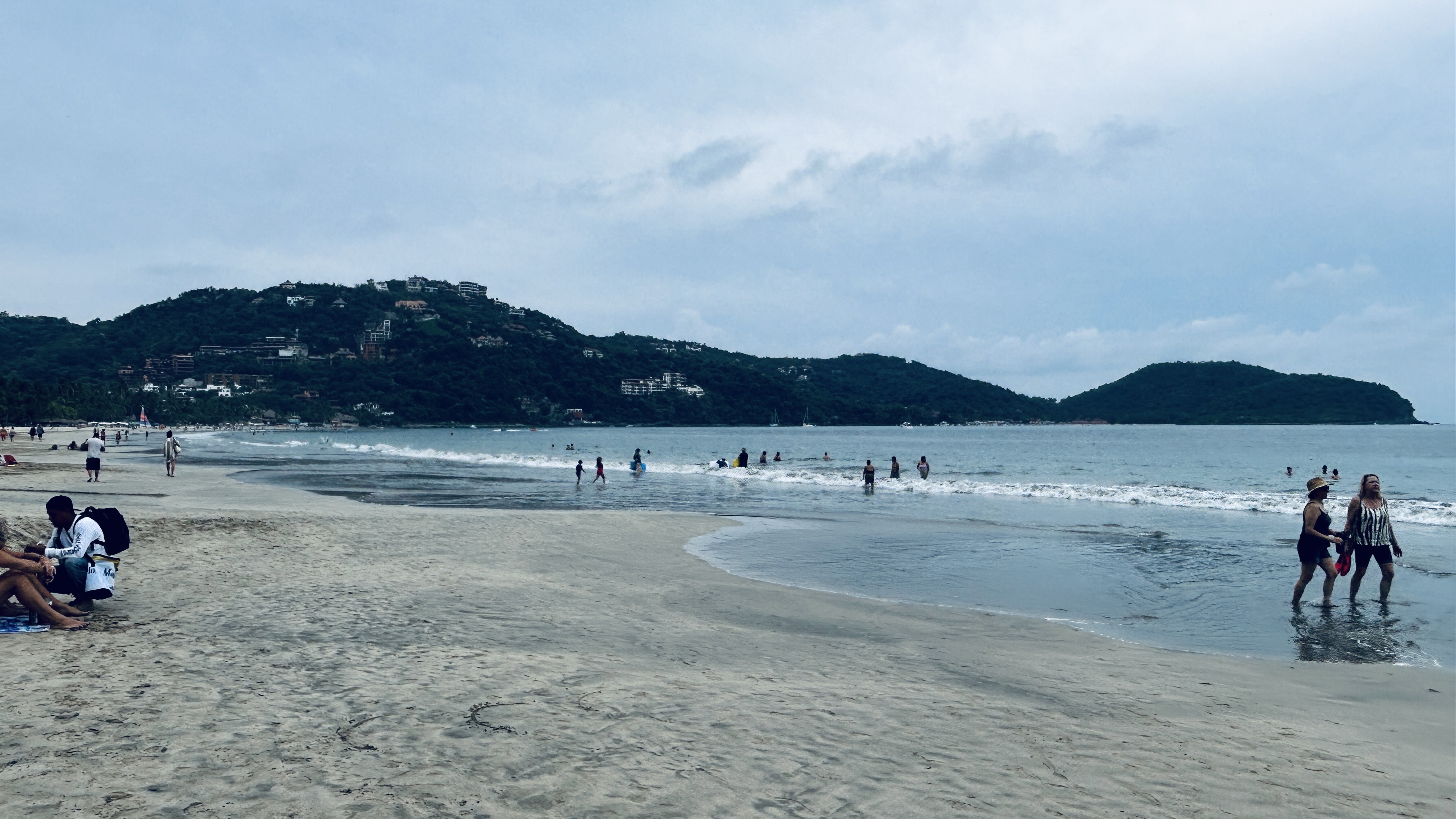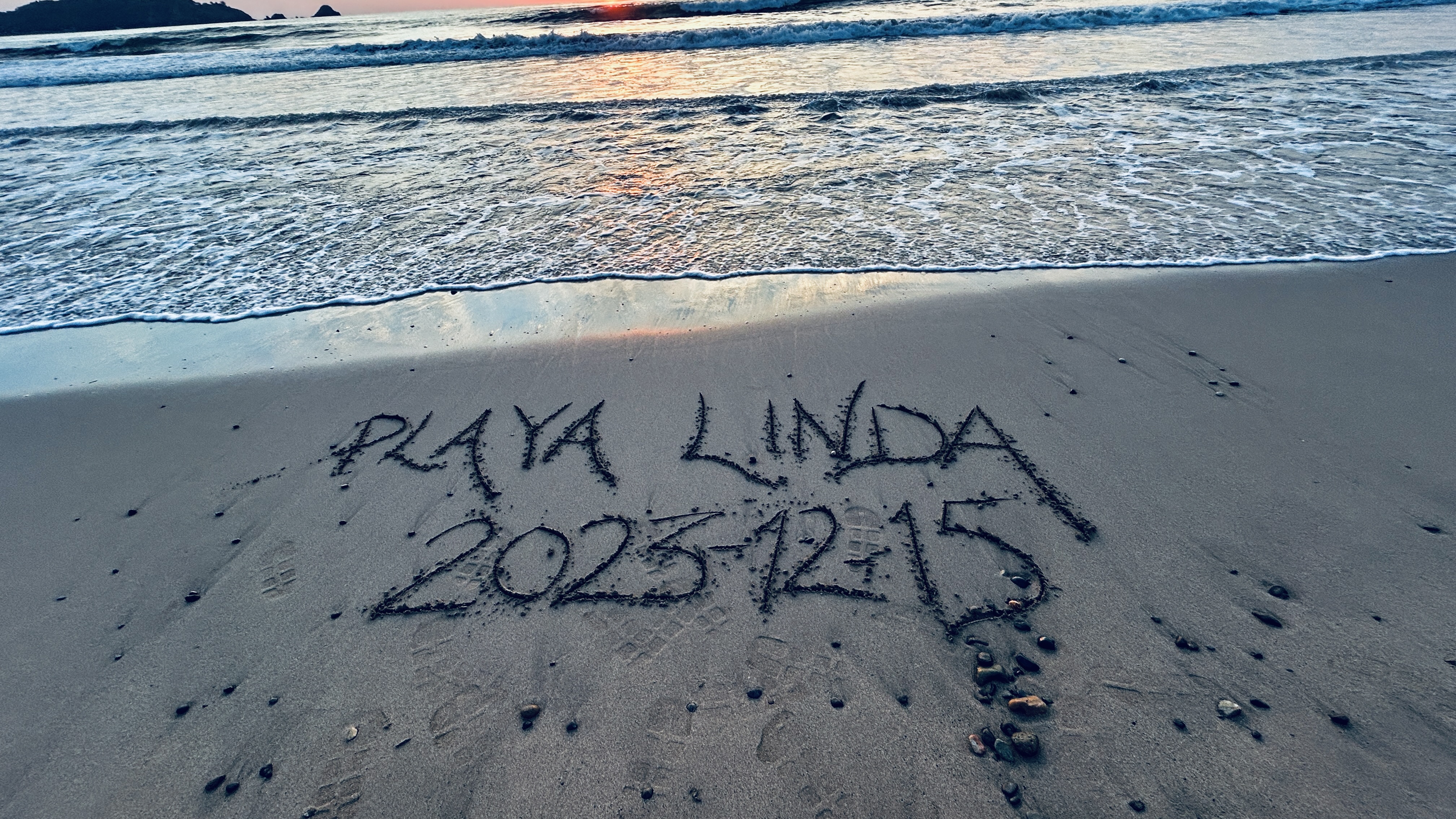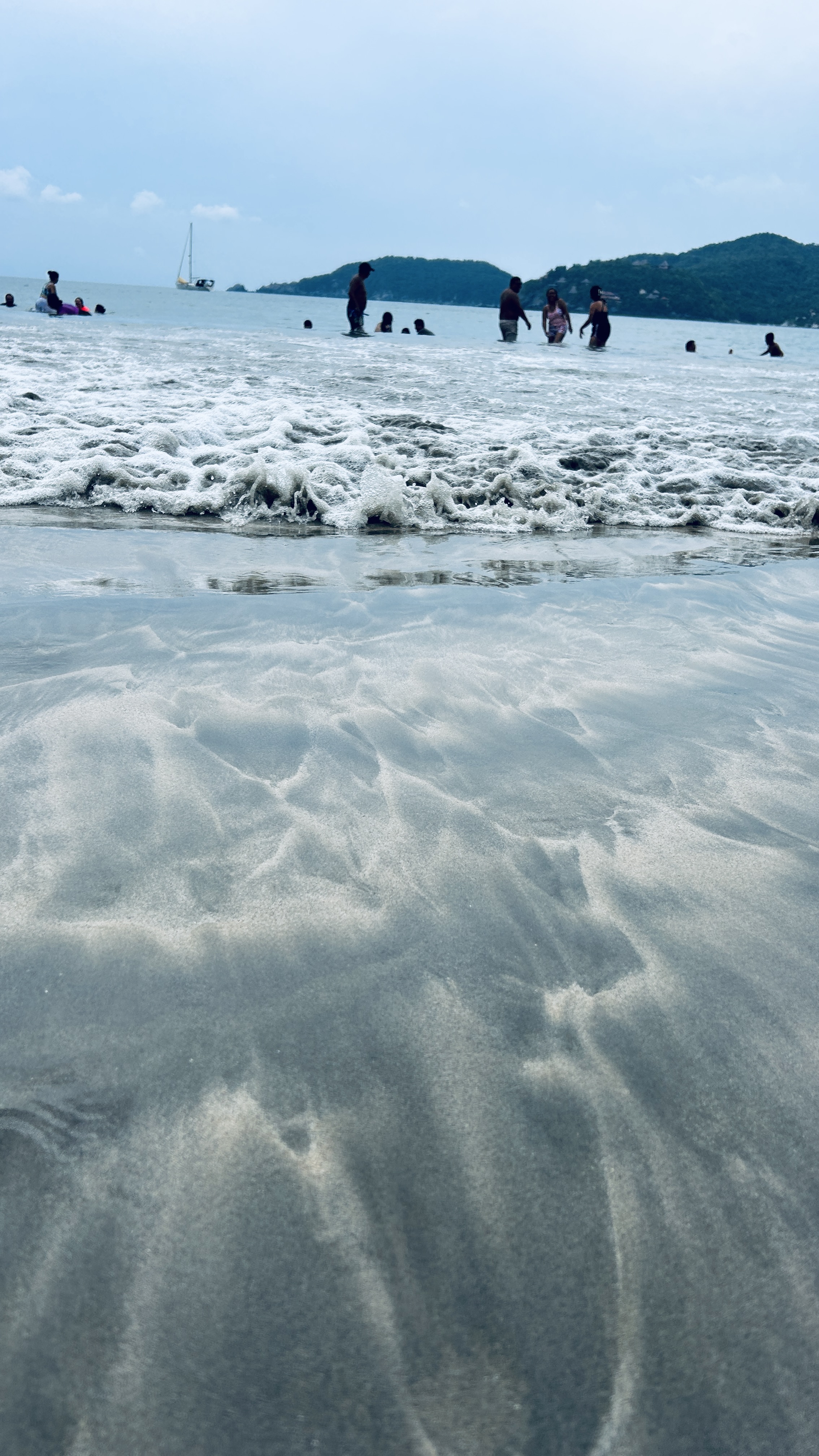 Le lendemain, j’ai fait une marche avec Jocelyne. Nous sommes retournées vers le port d’Ixtapa et le sanctuaire de crocodiles. En après-midi, je suis allée avec Nancy et Yves, à la Playa Larga (longue plage). Sur la photo, j’ai écrit Playa largo dans le sable. C’est une erreur de débutante en espagnol. 🤦🏻♀️ C’est una playa. Elle ne peut pas largo ; elle doit être larga. Que voulez-vous ? Je suis en apprentissage ! 🤷🏻♀️ Nous étions seuls dans le restaurant et la plage était presque déserte. C’était gênant. La piscine n’était pas limpide, mais nous nous y sommes trempé les pieds en attendant de commander. Nancy et moi sommes allées sur la plage, en attendant que le repas soit prêt. Nous avons pris beaucoup de photos et avons marché un peu. Ça m’a pris plusieurs tentatives pour réussir à prendre le nom de la plage en photo. Nancy a d’ailleurs filmé une de mes tentatives. J’ai aussi filmé des personnes pour montrer comment prendre les vagues et éviter d’être emporté par une vague et d’être blessé. J’ai mangé des camarones al coco (des crevettes panées à la noix de coco). Elles étaient très bonnes. Après le repas, nous sommes retournés marcher sur la plage, avec Yves, cette fois.