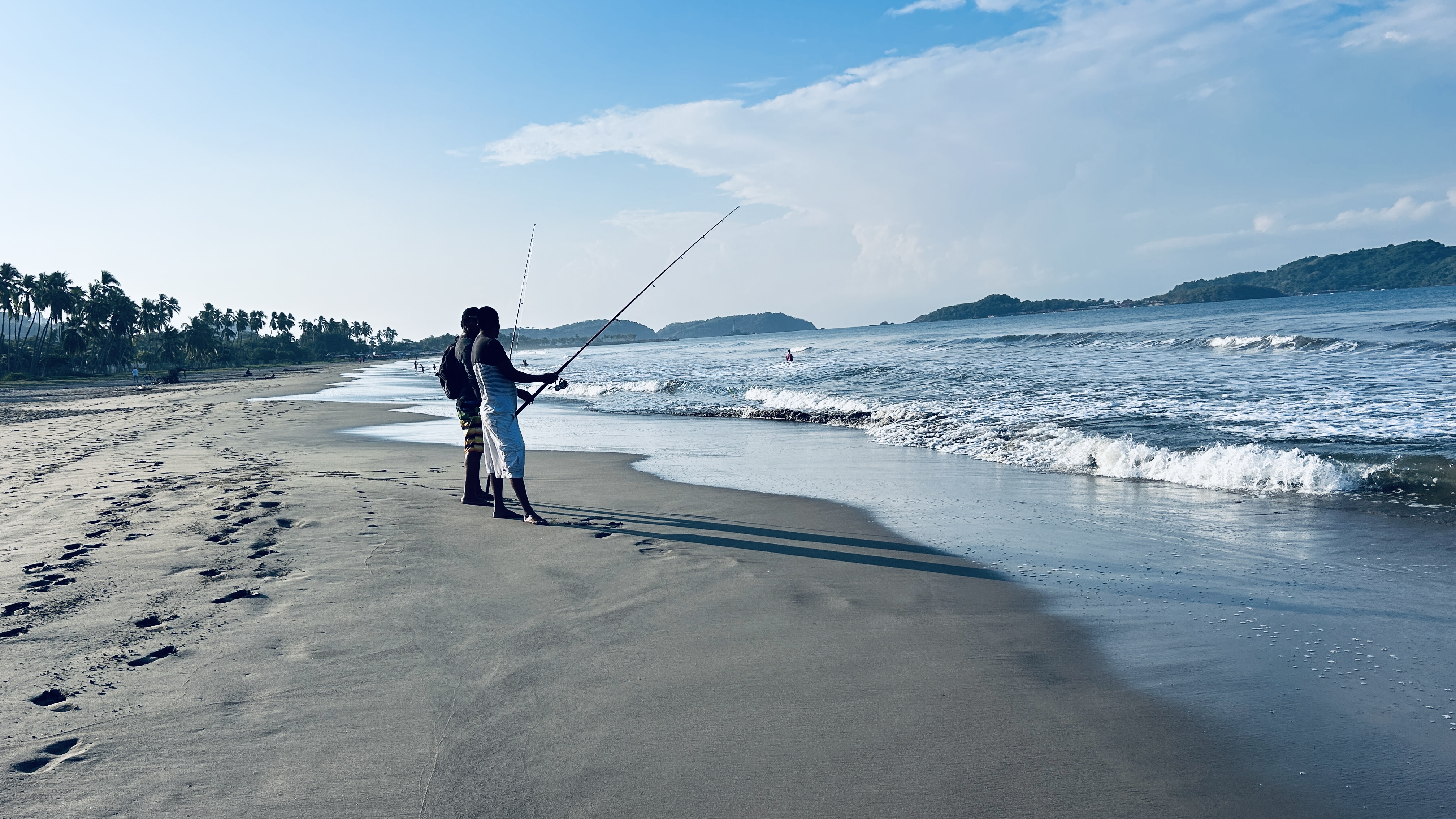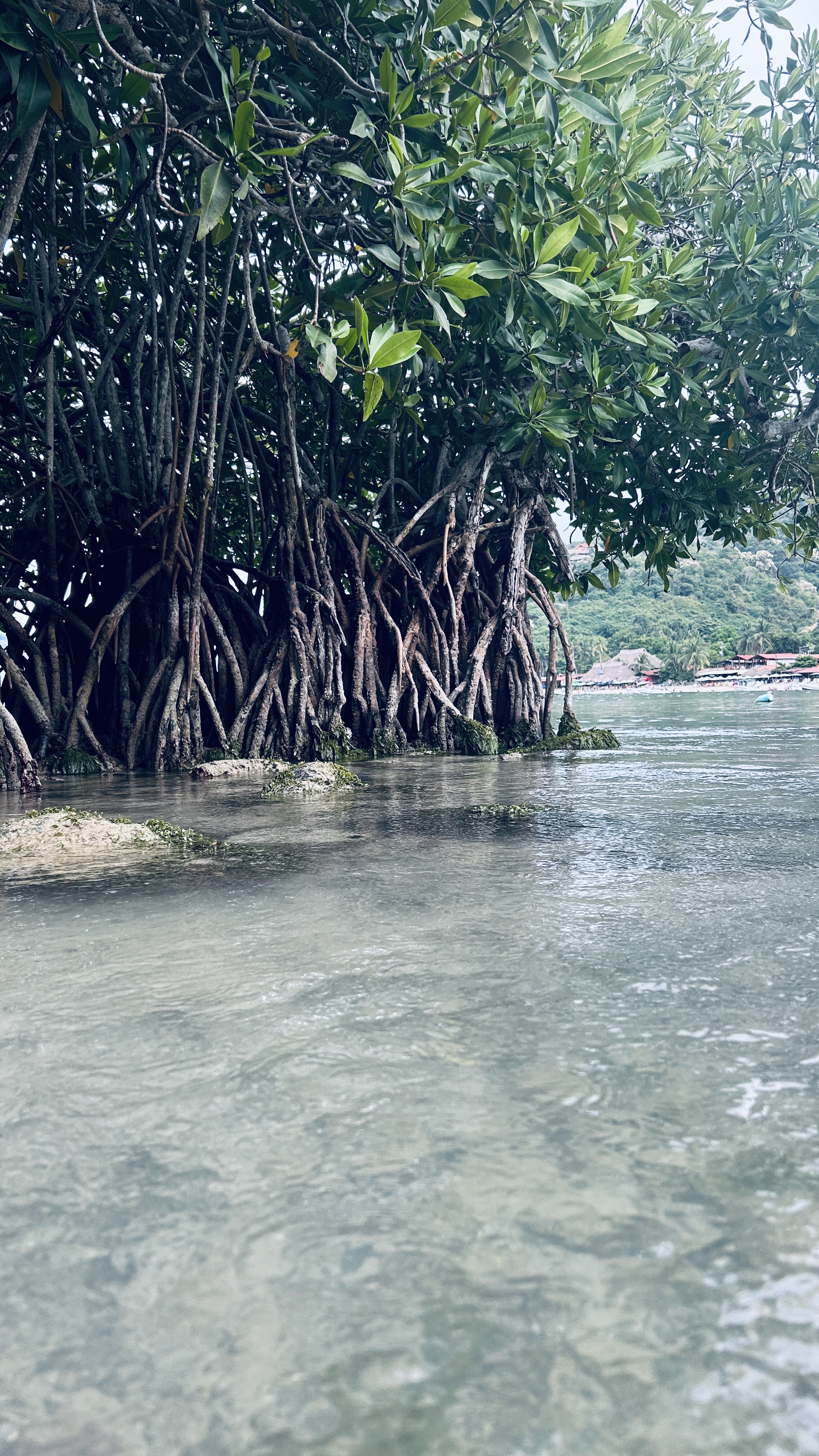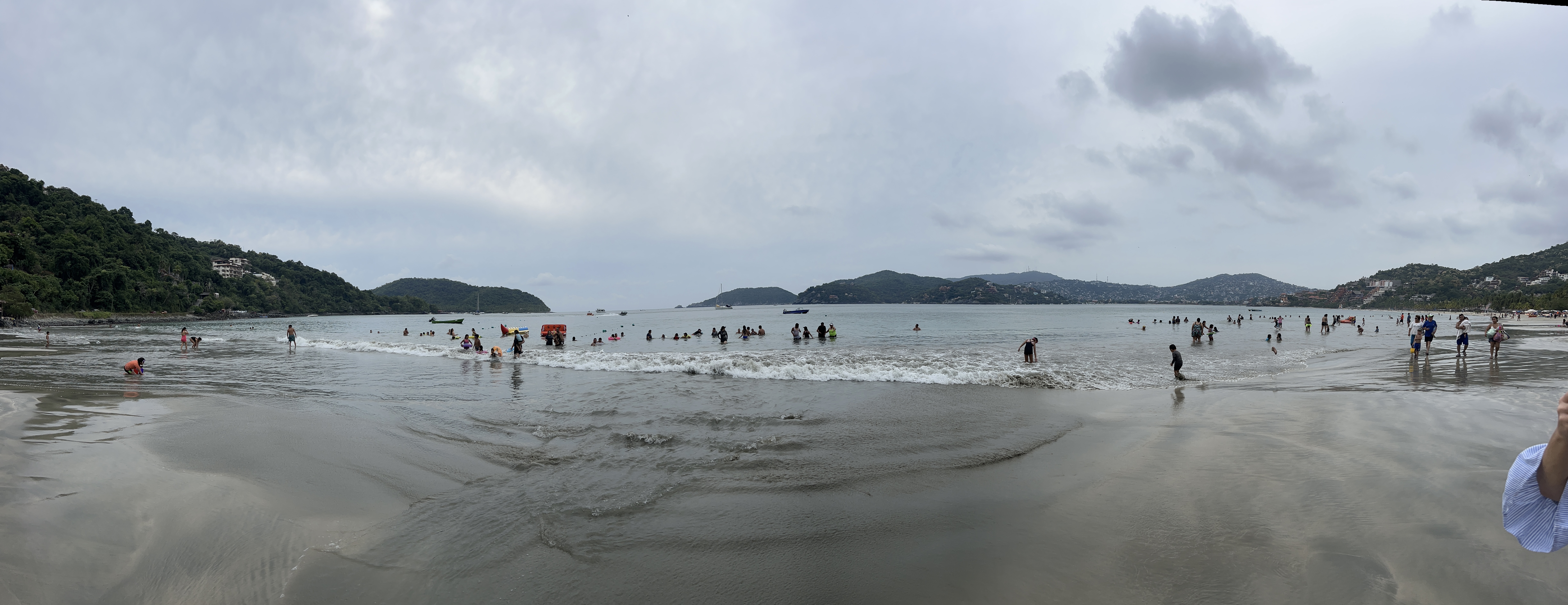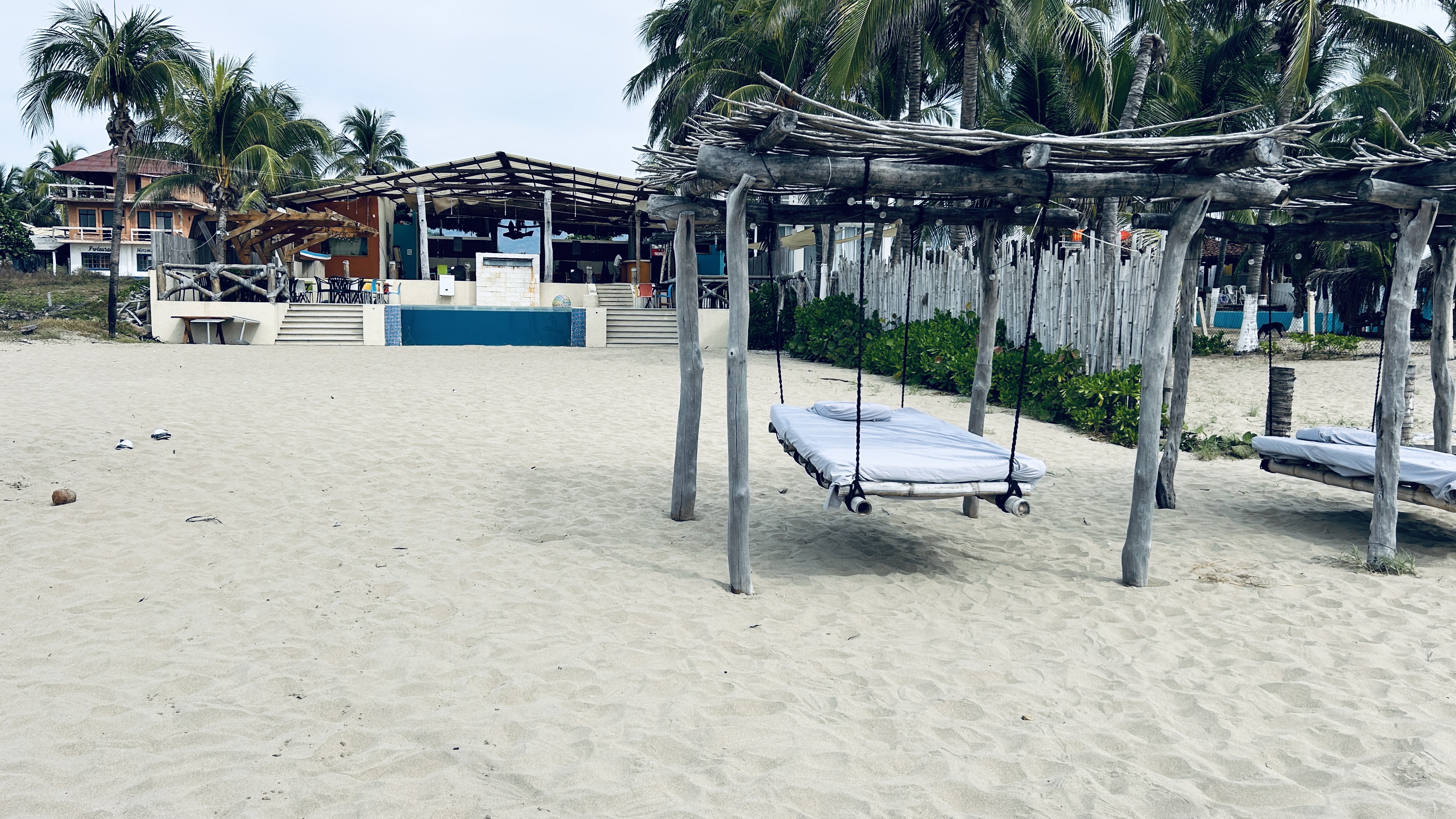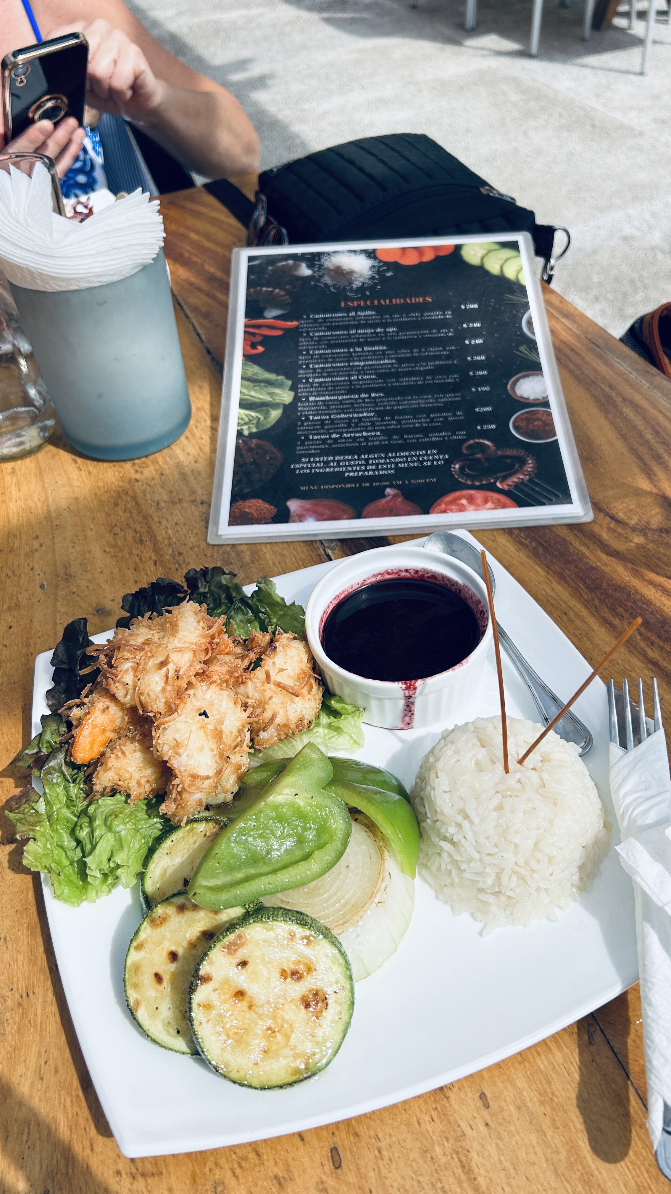 Le lendemain, j’ai fait une marche avec Jocelyne. Nous sommes retournées vers le port d’Ixtapa et le sanctuaire de crocodiles. En après-midi, je suis allée avec Nancy et Yves, à la Playa Larga (longue plage). Sur la photo, j’ai écrit Playa largo dans le sable. C’est une erreur de débutante en espagnol. 🤦🏻♀️ C’est una playa. Elle ne peut pas largo ; elle doit être larga. Que voulez-vous ? Je suis en apprentissage ! 🤷🏻♀️ Nous étions seuls dans le restaurant et la plage était presque déserte. C’était gênant. La piscine n’était pas limpide, mais nous nous y sommes trempé les pieds en attendant de commander. Nancy et moi sommes allées sur la plage, en attendant que le repas soit prêt. Nous avons pris beaucoup de photos et avons marché un peu. Ça m’a pris plusieurs tentatives pour réussir à prendre le nom de la plage en photo. Nancy a d’ailleurs filmé une de mes tentatives. J’ai aussi filmé des personnes pour montrer comment prendre les vagues et éviter d’être emporté par une vague et d’être blessé. J’ai mangé des camarones al coco (des crevettes panées à la noix de coco). Elles étaient très bonnes. Après le repas, nous sommes retournés marcher sur la plage, avec Yves, cette fois.