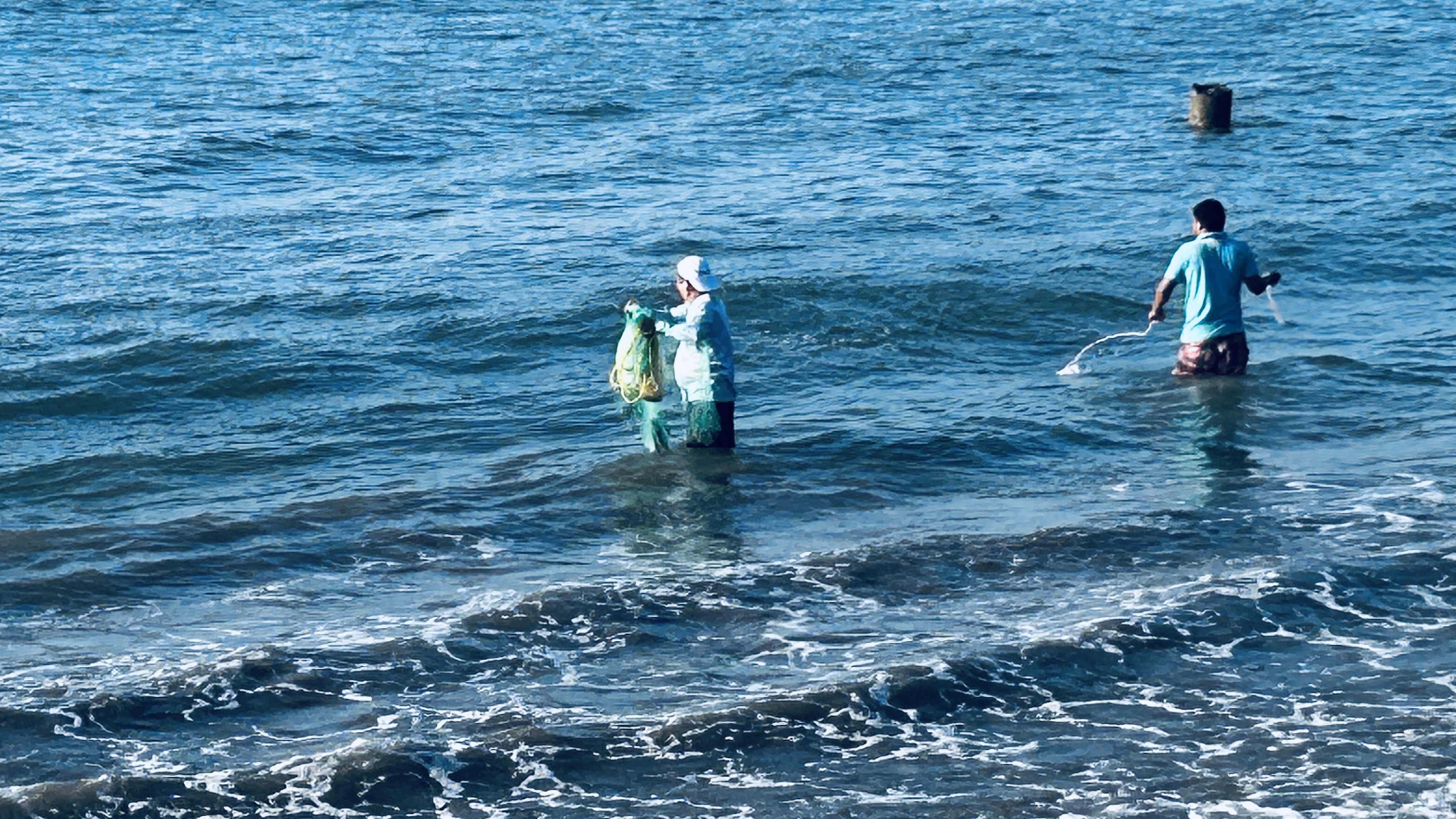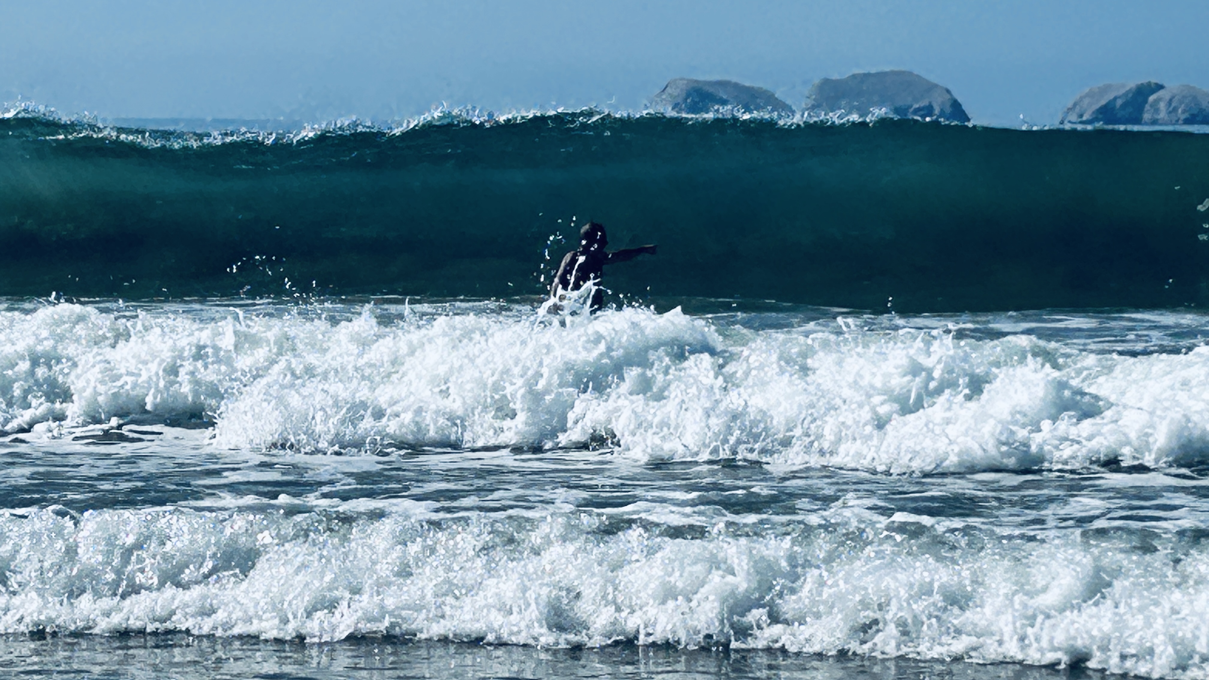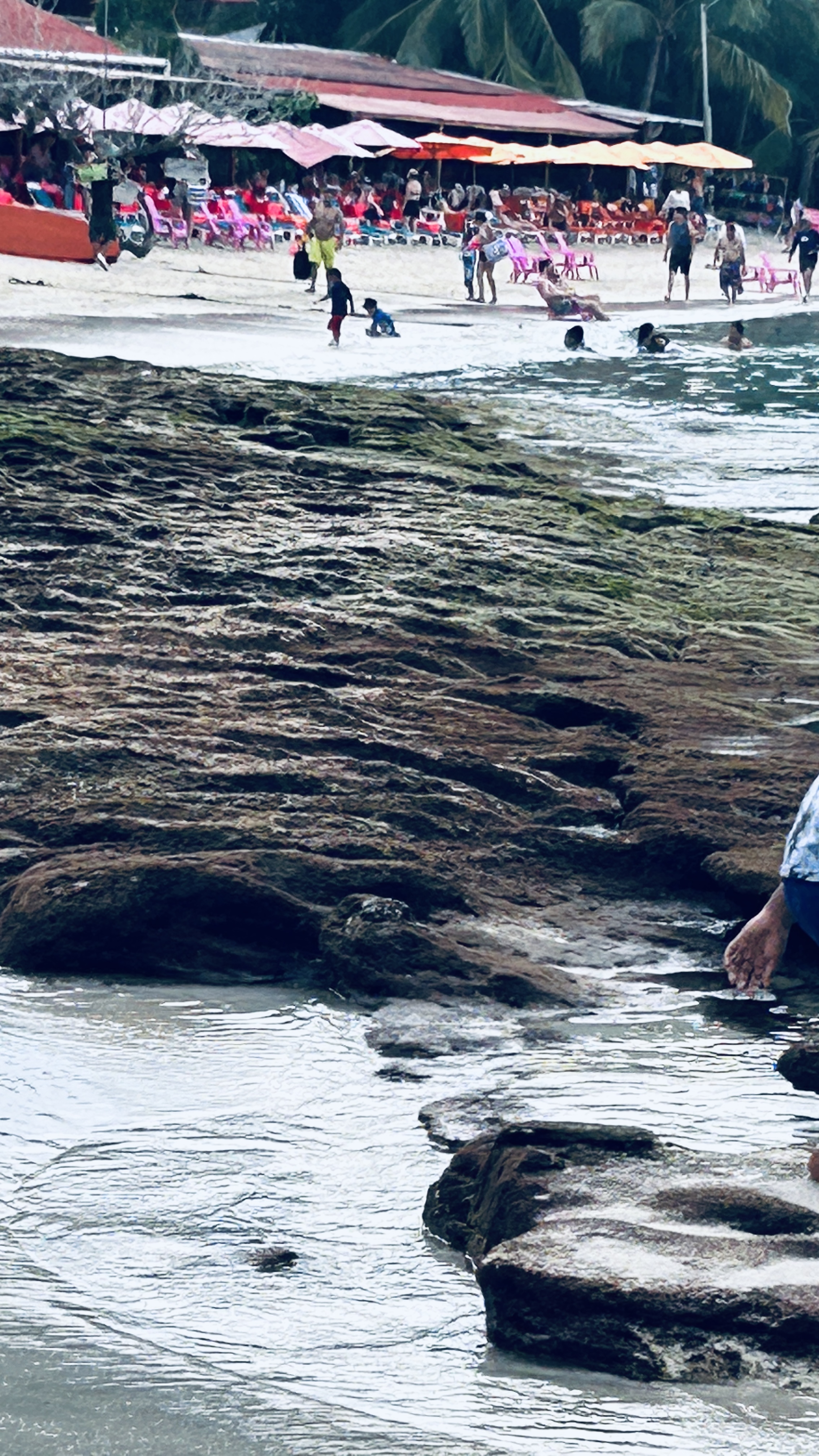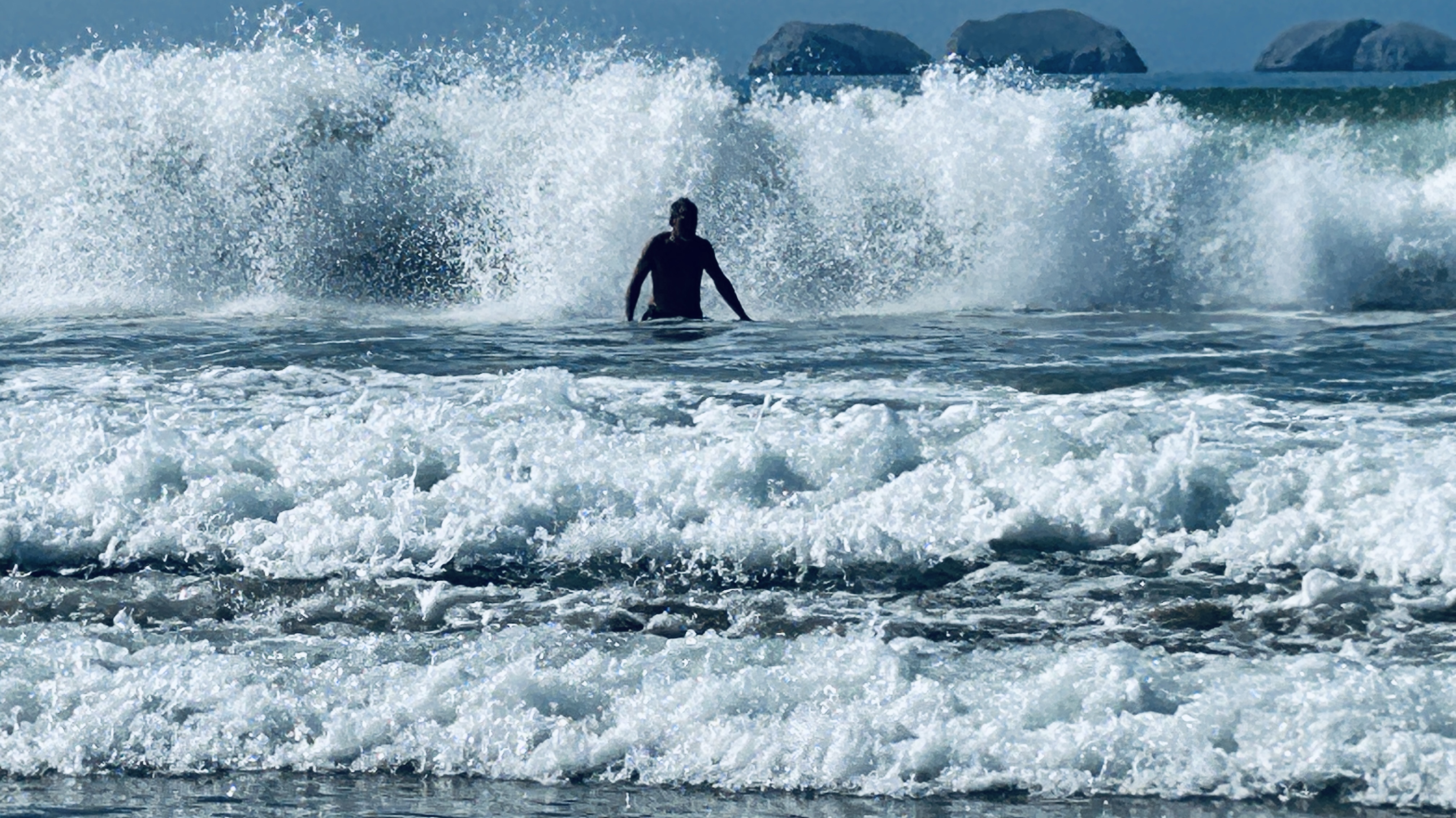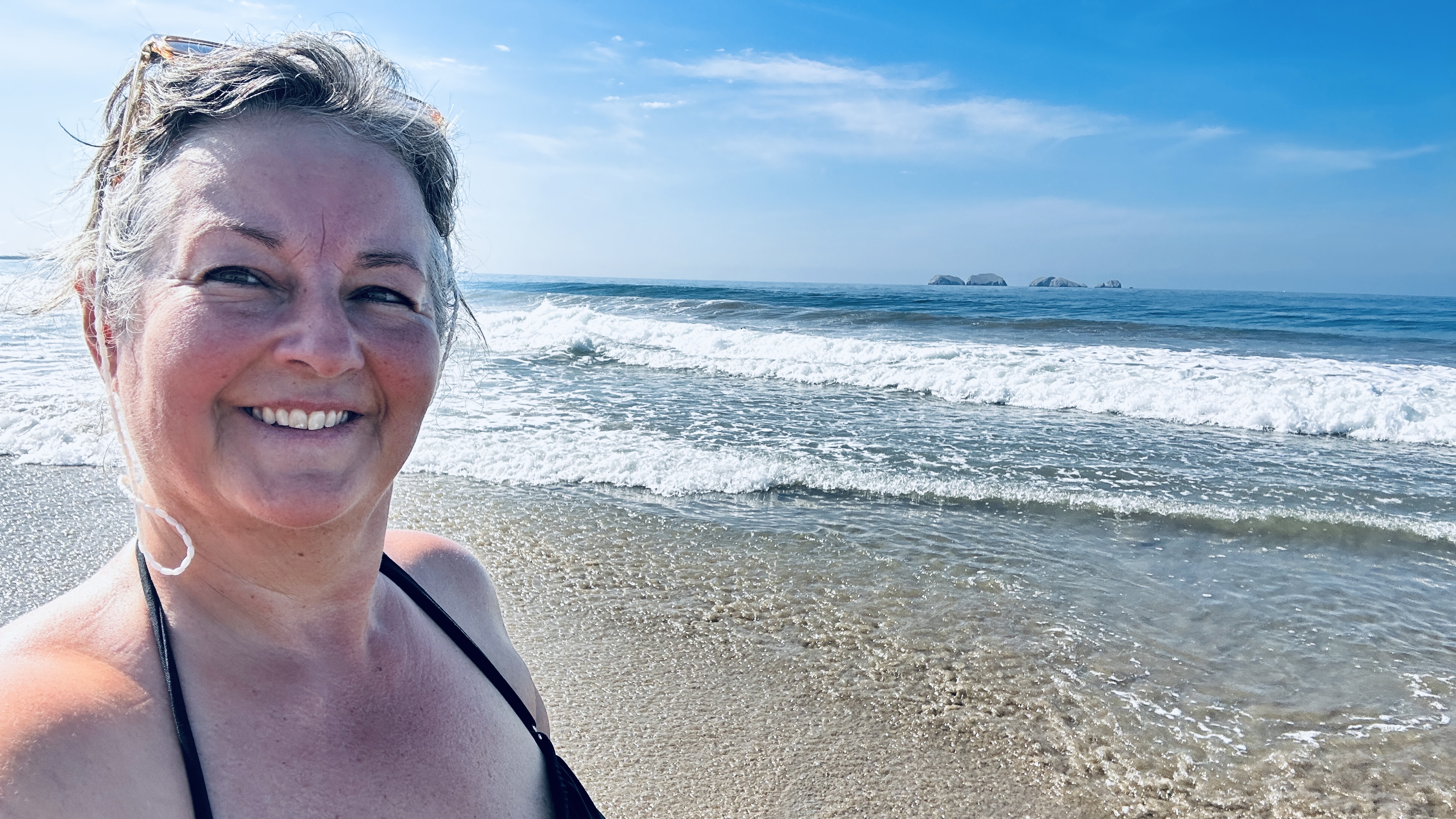 Le lendemain, j’ai fait une marche avec Jocelyne. Nous sommes retournées vers le port d’Ixtapa et le sanctuaire de crocodiles. En après-midi, je suis allée avec Nancy et Yves, à la Playa Larga (longue plage). Sur la photo, j’ai écrit Playa largo dans le sable. C’est une erreur de débutante en espagnol. 🤦🏻♀️ C’est una playa. Elle ne peut pas largo ; elle doit être larga. Que voulez-vous ? Je suis en apprentissage ! 🤷🏻♀️ Nous étions seuls dans le restaurant et la plage était presque déserte. C’était gênant. La piscine n’était pas limpide, mais nous nous y sommes trempé les pieds en attendant de commander. Nancy et moi sommes allées sur la plage, en attendant que le repas soit prêt. Nous avons pris beaucoup de photos et avons marché un peu. Ça m’a pris plusieurs tentatives pour réussir à prendre le nom de la plage en photo. Nancy a d’ailleurs filmé une de mes tentatives. J’ai aussi filmé des personnes pour montrer comment prendre les vagues et éviter d’être emporté par une vague et d’être blessé. J’ai mangé des camarones al coco (des crevettes panées à la noix de coco). Elles étaient très bonnes. Après le repas, nous sommes retournés marcher sur la plage, avec Yves, cette fois.