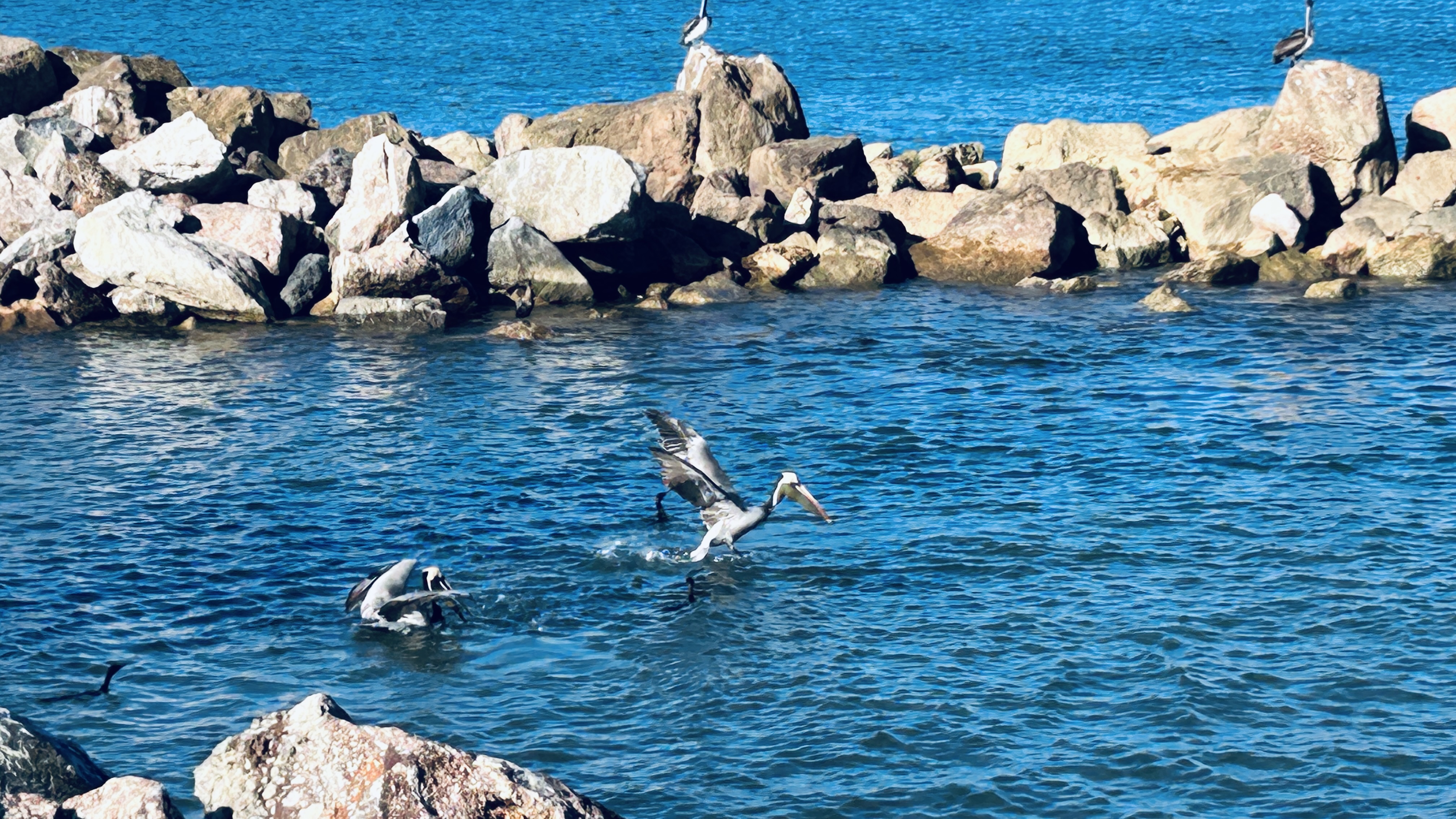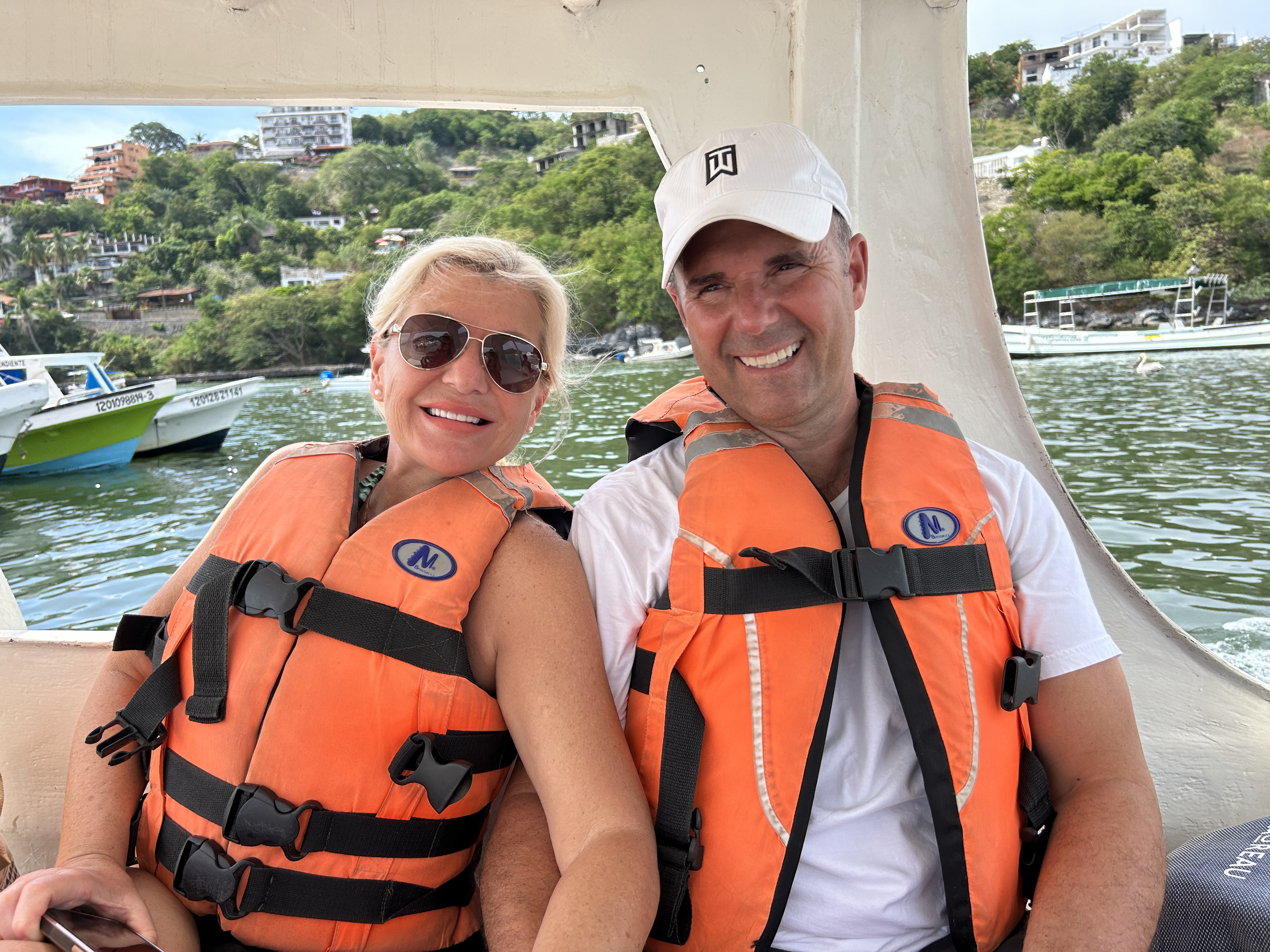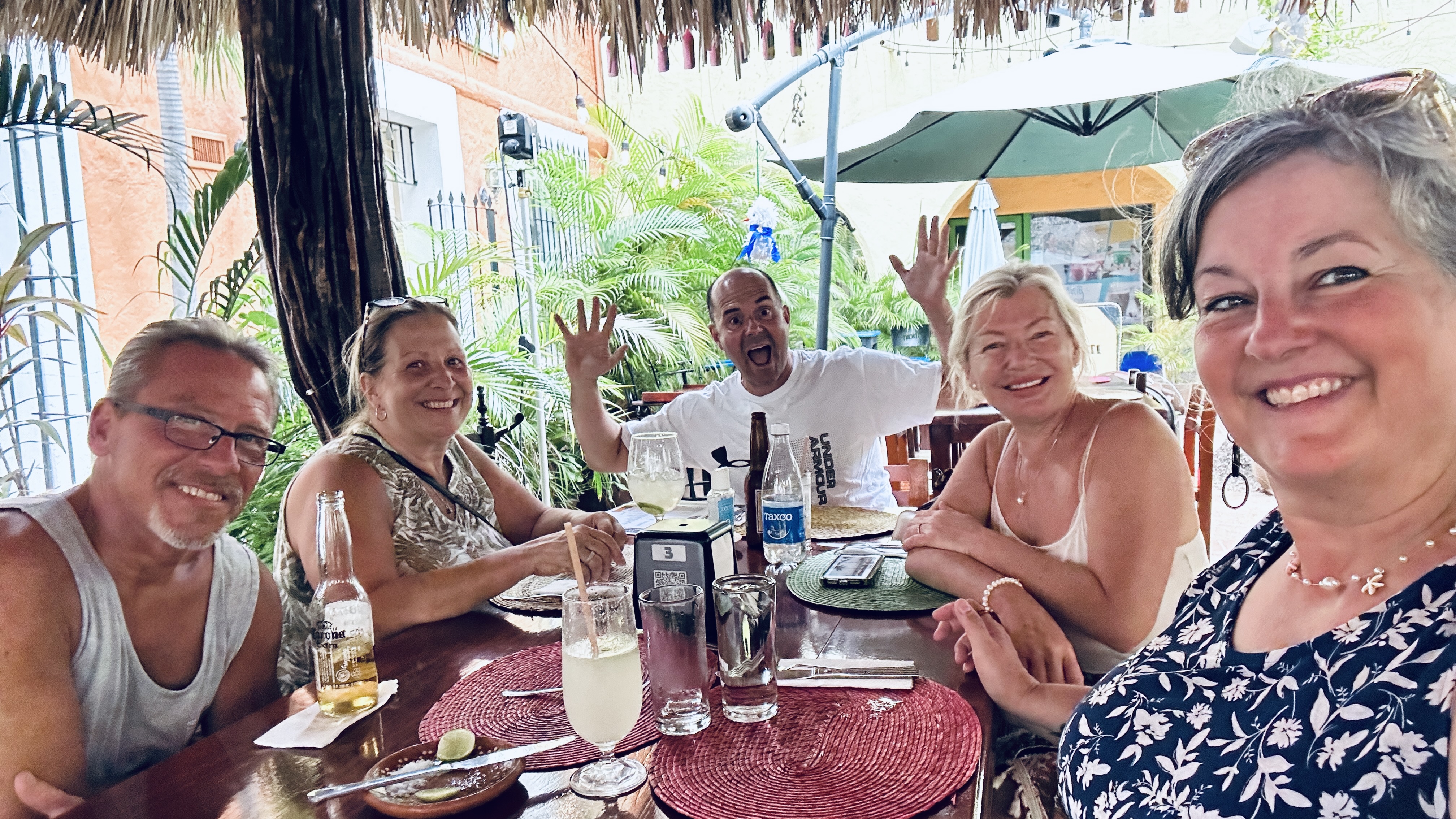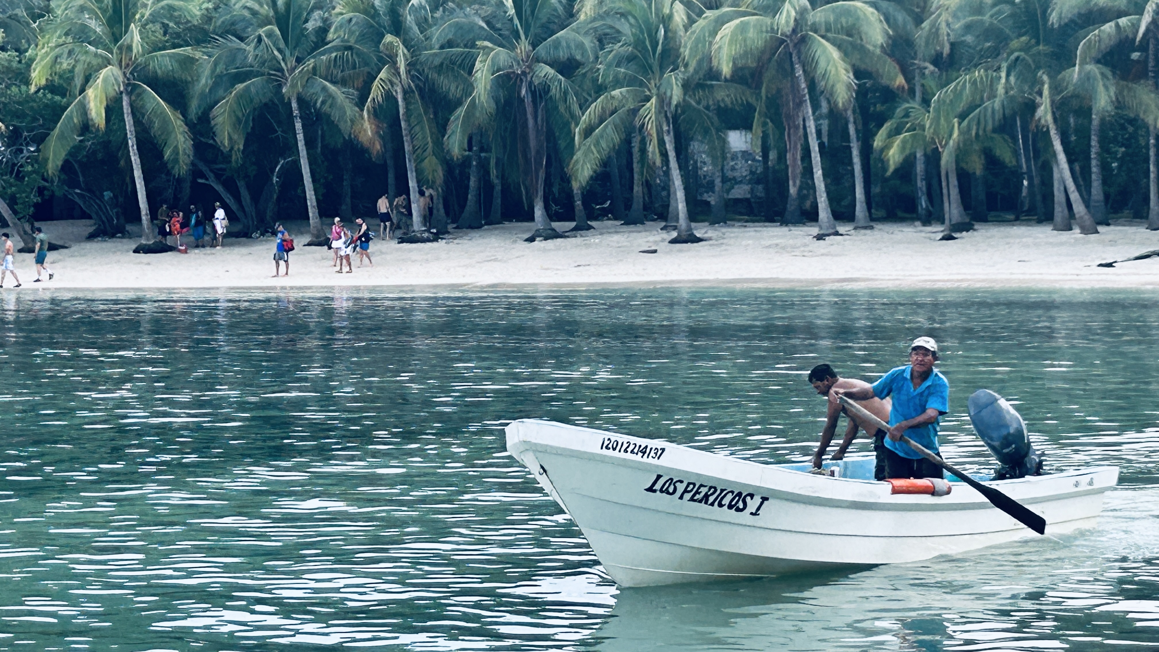 Le lendemain, nous allions tous visiter la Isla Ixtapa (île Ixtapa) et la Playa Varadero (plage Quai). Nancy, Yves et moi nous sommes rendus à la marche jusqu’au port de Ixtapa. Ensuite, un bateau nous amenait vers l’île. L’eau était turquoise et montait jusqu’à nos chaises longues. La température était parfaite autant dans l’eau qu’à l’extérieur. J’ai mangé de succulentes camarones al coco (crevettes à la noix de coco). Elles étaient croustillantes et accompagnées de légumes croquants et d’une exquise sauce à la noix de coco. Un régal !!! 🤤😋 Nous avons dû quitter pour 17 h afin de reprendre le bateau. Ça a été une autre superbe journée en bonne compagnie. Au retour au camping, j’ai réussi à prendre un vidéo d’un pélican qui attrape un poisson. 😉J’étais au lit à 20 h 30, mais j’ai fait de l’insomnie de 3 h à 4 h 30. Ça a tout de même été une nuit reposante. Ça faisait plusieurs nuits que je me couchais trop tard et me levait tôt. C’est qu’il fait chaud et humide à Ixtapa. Vraiment chaud et humide !!! 😓😰 😓