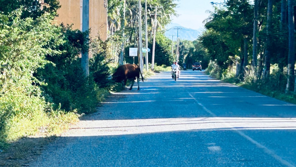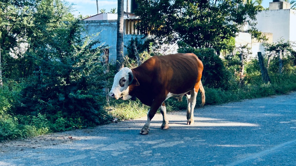 Le 9 décembre, Jocelyne et moi avons marché vers San Jose Ixtapa, une petite ville près du camping. Nous avons vu une vache qui déambulait tranquillement dans la rue. Nous pensions qu’elle faisait partie du troupeau d’un homme qui se trouvait dans le champ, mais il nous a dit qu’elle n’était pas à lui. Dans la journée, je me suis fait piquer par je-ne-sais-quoi et j’ai fait une grosse réaction allergique. Oh non, ne me dites pas que ça recommence ! L’an passé, j’ai eu des problèmes avec des abeilles au Tacho’s (voir le lien de l’article). Le reste de la journée, j’ai travaillé sur mon carnet de voyage. Ça a été ainsi que tous les soirs de mon séjour là-bas. Pendant la soirée, je suis allée «chiller» chez Nancy et Yves.