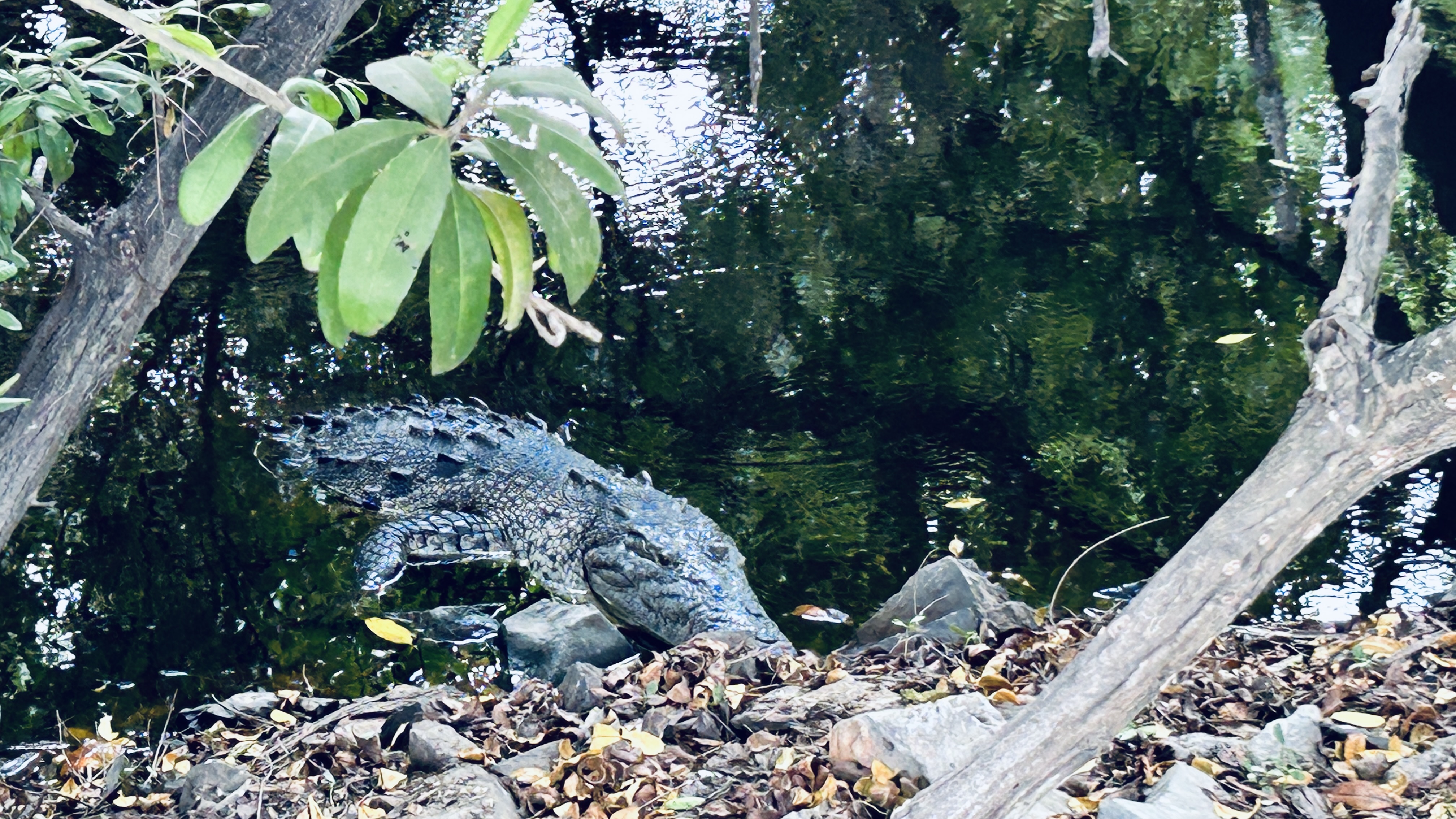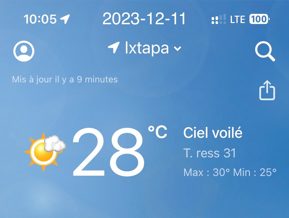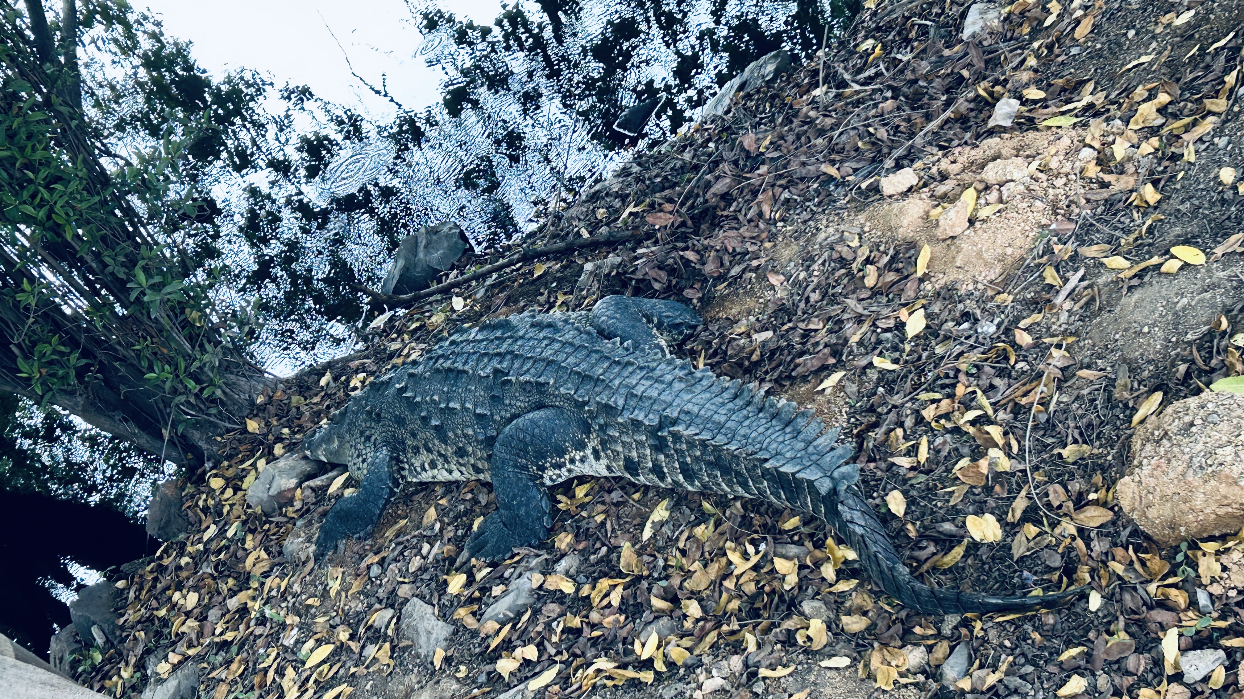 Le matin du 8 décembre, je suis allée marcher avec Jocelyne vers le port d’Ixtapa, un beau port tout neuf. J’ai réussi à prendre un vidéo d’un pélican où on le voit prendre son envol, pour ensuite plonger dans la mer afin d’attraper un poisson et l’avaler. Un magnifique vidéo, j’étais tellement contente ! 🤩 Jocelyne m’a aussi montré un sanctuaire d’iguanes et de crocodiles nommé Cocodrilario Tamakun. À notre retour, j’ai lavé ma roulotte et mon camion. Je suis ensuite allée me rafraîchir dans la piscine. Pendant que j’y étais, le gardien de sécurité m’a demandé d’aller voir Edwin, le gérant. J’étais certaine qu’il m’annoncerait que je devais déménager. 😨 Il voulait simplement que je paye les 13 jours de camping à 4 550 pesos, car il serait absent durant la fin de semaine. 🤭 Nancy et Yves ainsi que Raymond et Diane, un couple de Québécois rencontré dans la piscine sont venus passer la soirée sous mon gazebo, tout neuf. 😁 Pour ceux qui ont cliqué sur le lien du vidéo, vous avez compris que j’ai complètement raté mon coup. Je commence à prendre des vidéos comme des personnes âgées. 😂🤣