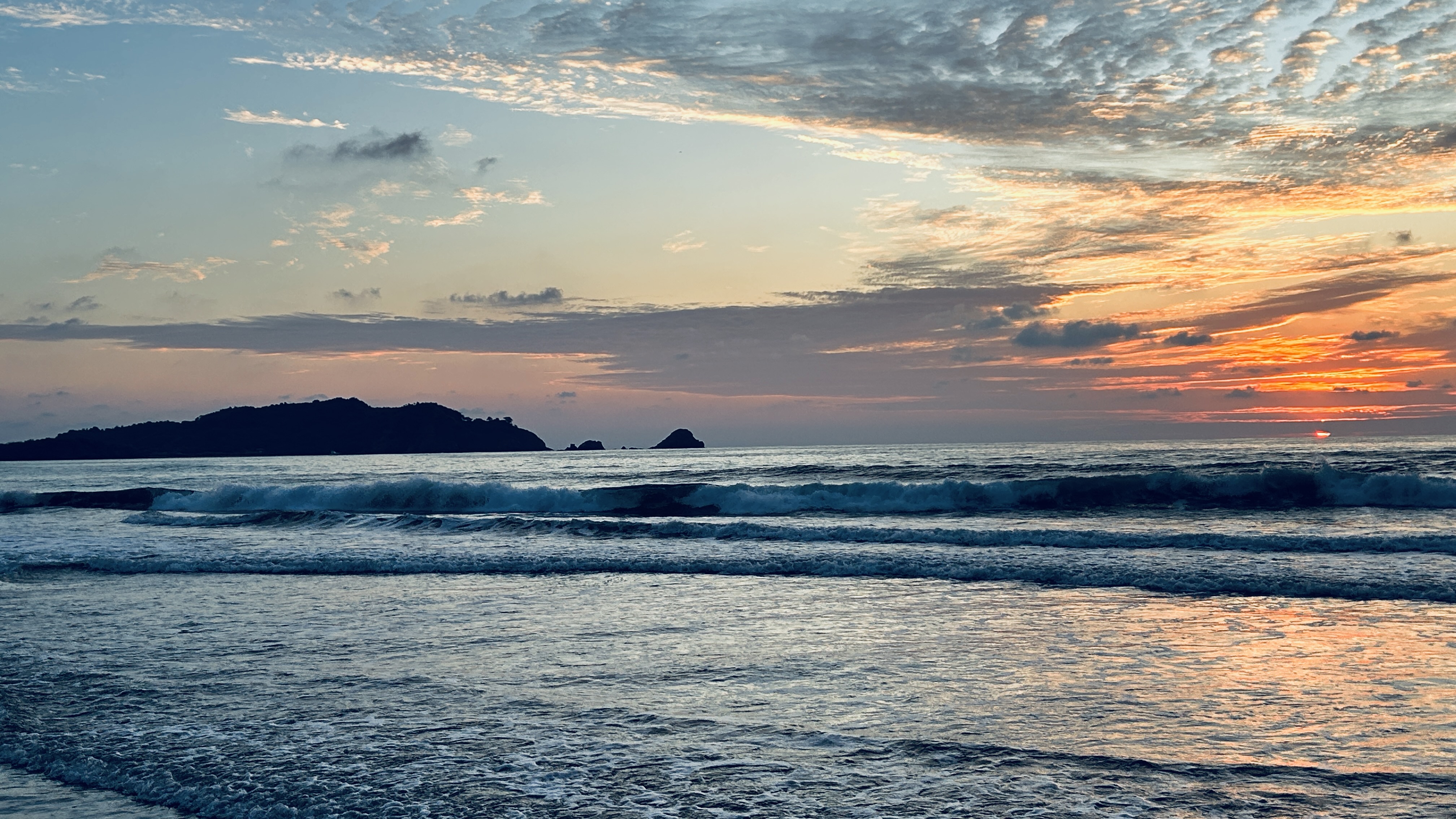 Le premier soir de notre arrivée, après mon installation, je suis allée dans la piscine. Ça a fait du bien de me rafraîchir un peu. C’est que c’est chaud et humide à Ixtapa Zihautanejo. Nous nous sommes ensuite regroupés chez Jocelyne et Jean. Nous avons eu droit à un magnifique coucher de soleil. Jocelyne, Nancy et moi sommes allées sur la plage pour l’admirer et prendre des photos. Mon séjour à Ixtapa s’est déroulé sous le thème des plages et des couchers de soleil sur le Pacifique.