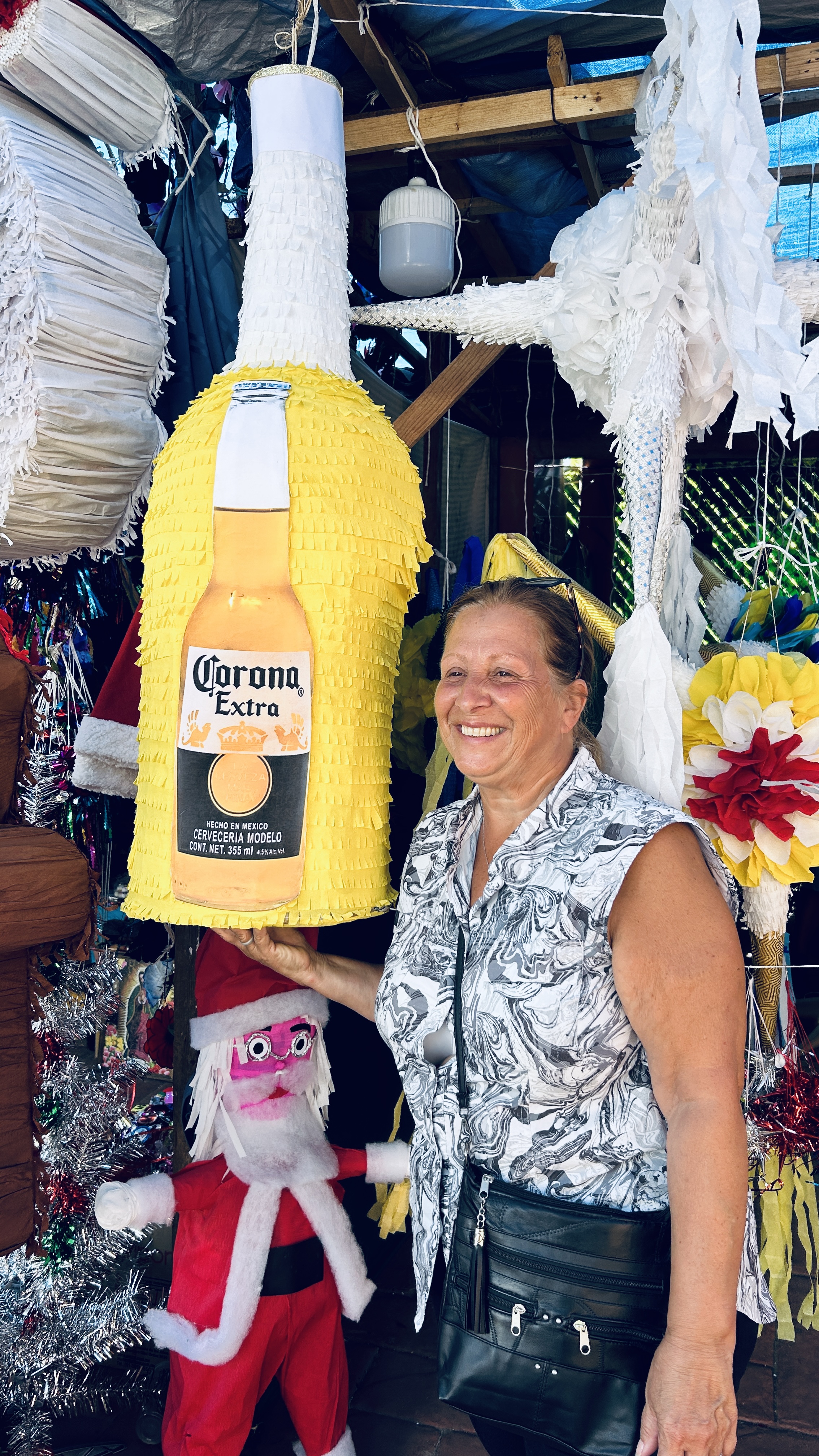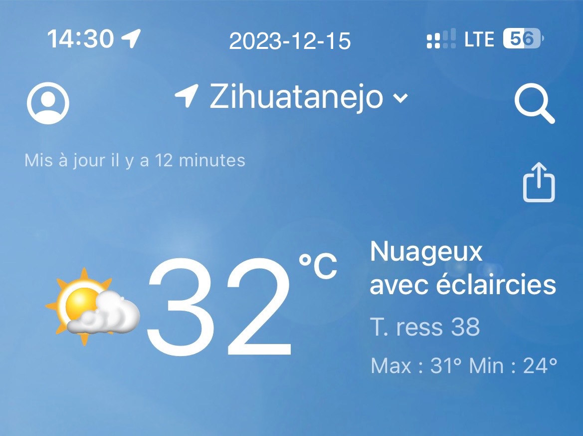 J’avais vraiment besoin d’aller acheter de la nourriture, Jocelyne, Nancy et moi sommes allées au magasin Bodega de Zihuatanejo, le 15 décembre 2023. Nous en avons profité pour nous acheter un bon cornet de lait glacé. Il faisait tellement chaud qu’il fondait plus vite qu’on était capable de le manger. Ce lait glacé n’étant pas Nancy Proof, elle a laissé échapper toute sa glace à quelques pas du comptoir où elle l’avait achetée. Heureusement, la vendeuse lui en a fait un autre. Nous avions initialement l’intention d’aller visiter le centro de Zihua, mais nous avons manqué de temps. En effet, Nancy et Yves avaient un souper d’amoureux corporatif pour Noël. Nous devions donc revenir à temps pour que Nancy s’y prépare. En soirée, je me suis promené sur la plage près du camping. C’est magnifique avec le coucher du soleil !!