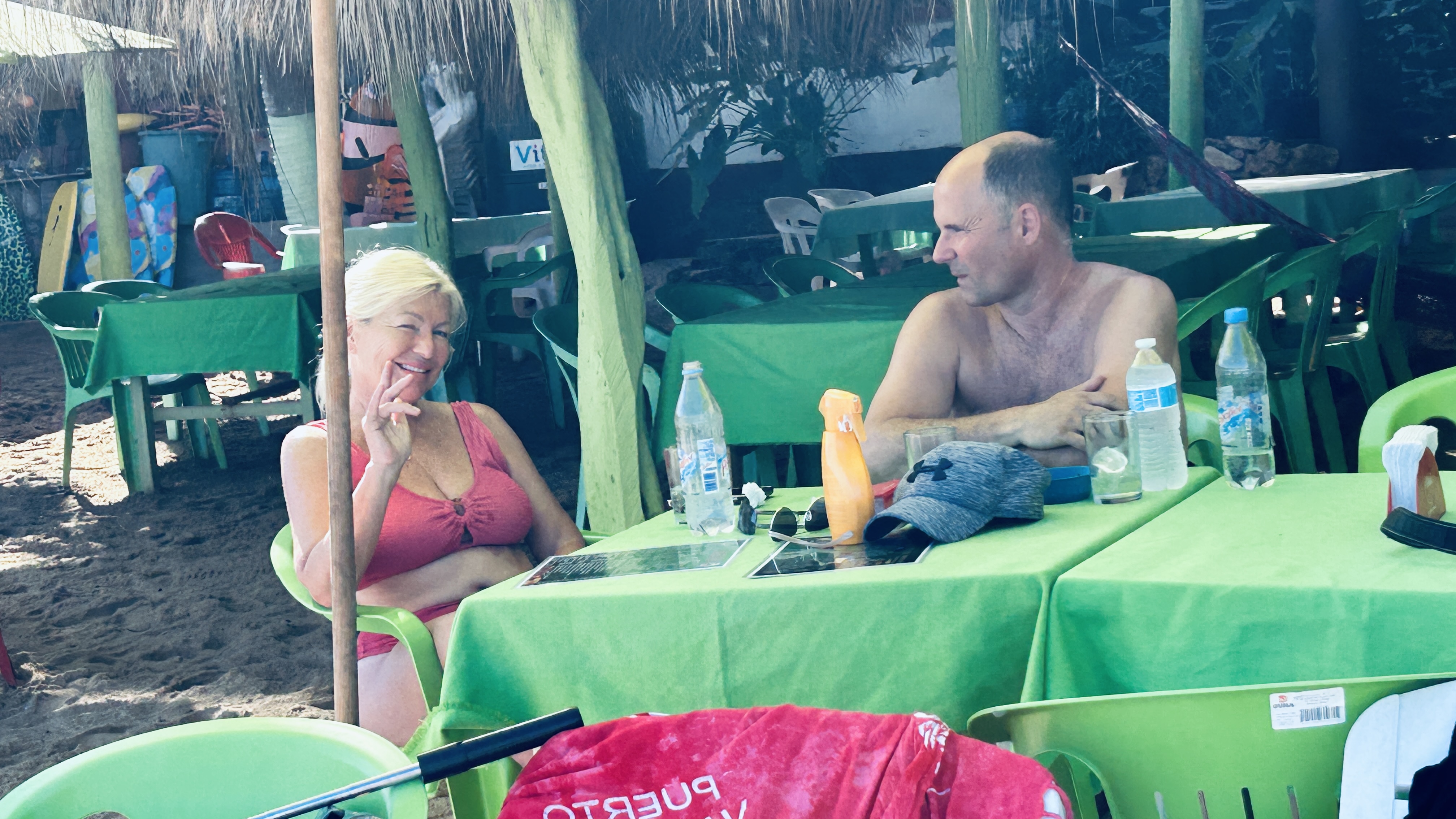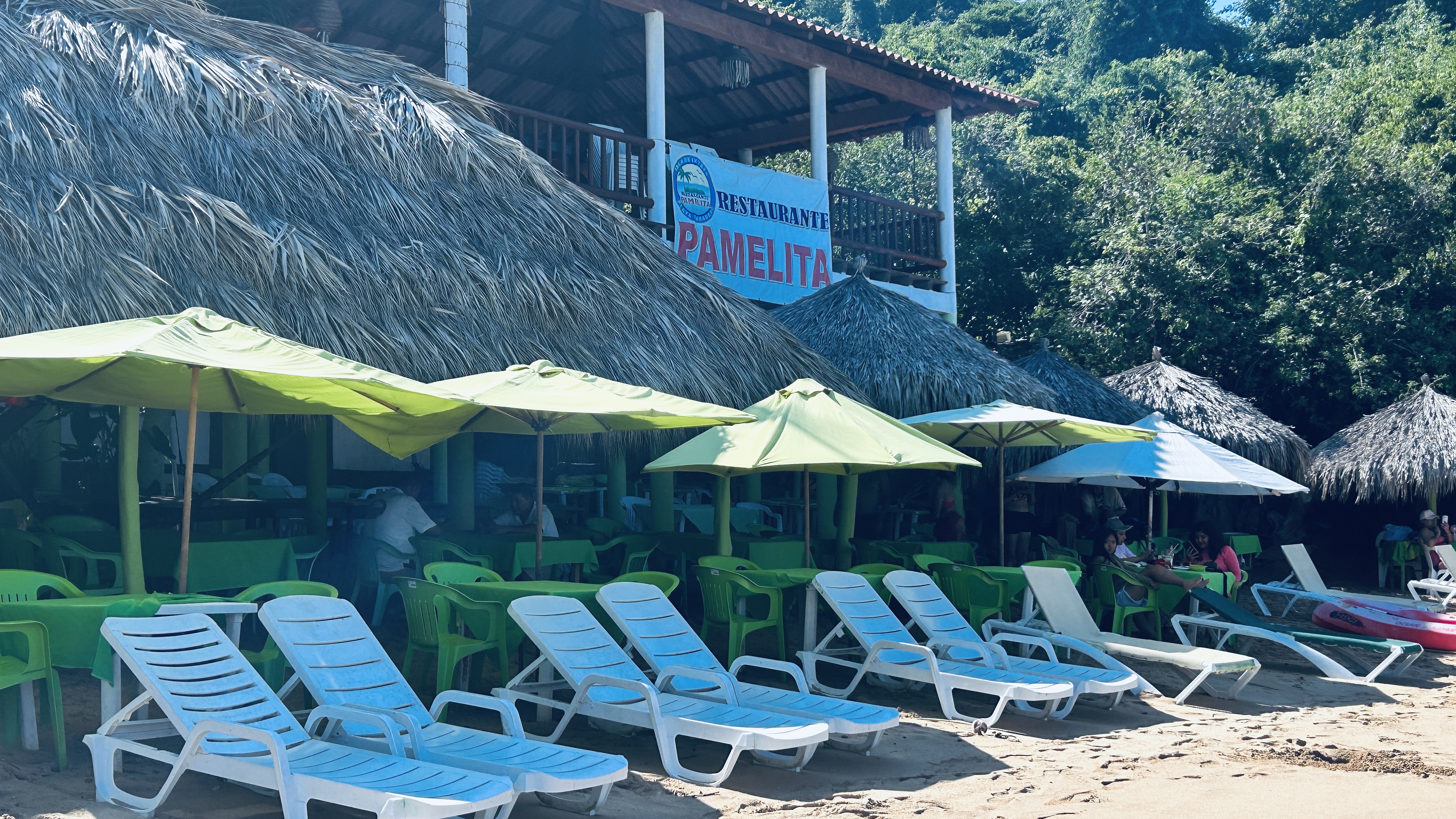 Puis, en milieu d’après-midi, nous avons décidé d’aller visiter la Playa La Ropa (plage Les vêtements). La Playa La Ropa était plus achalandée. On y a vu beaucoup de touristes, mais peu, voire pas du tout, de Québécois. Nous avons marché presque toute la longueur de la plage. Avant de retourner au camping, nous sommes arrêtés chez Paty’s Marimar (je ne sais pas comment le traduire), pour prendre un petit quelque chose. J’ai bu le meilleur smoothie fraise-banane de ma vie. Il était excellent ! Juste à y repenser, l’eau me monte à la bouche. La salsa Pico de gallo (sauce Bec de coq), quant à elle, était trop piquante.