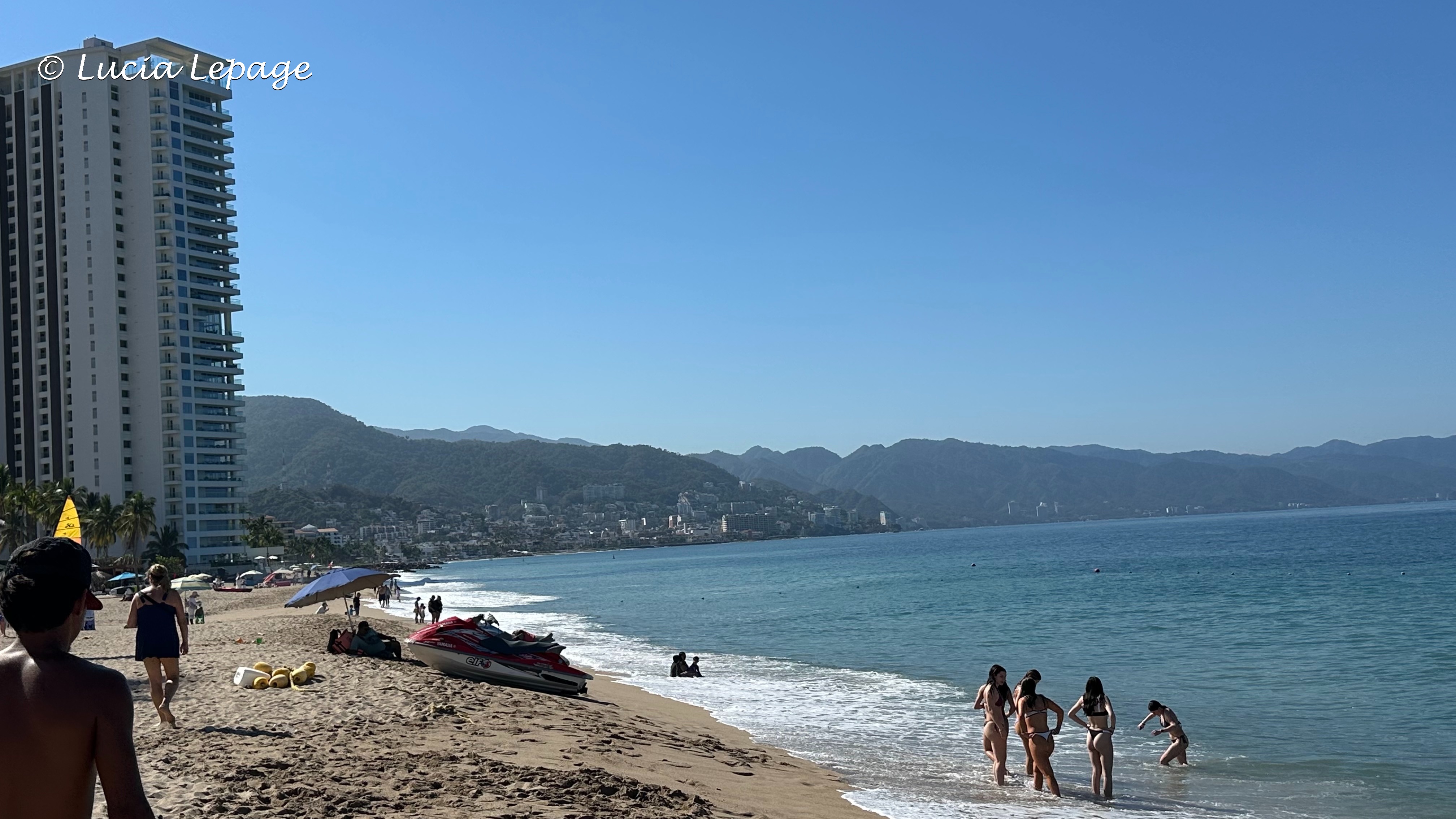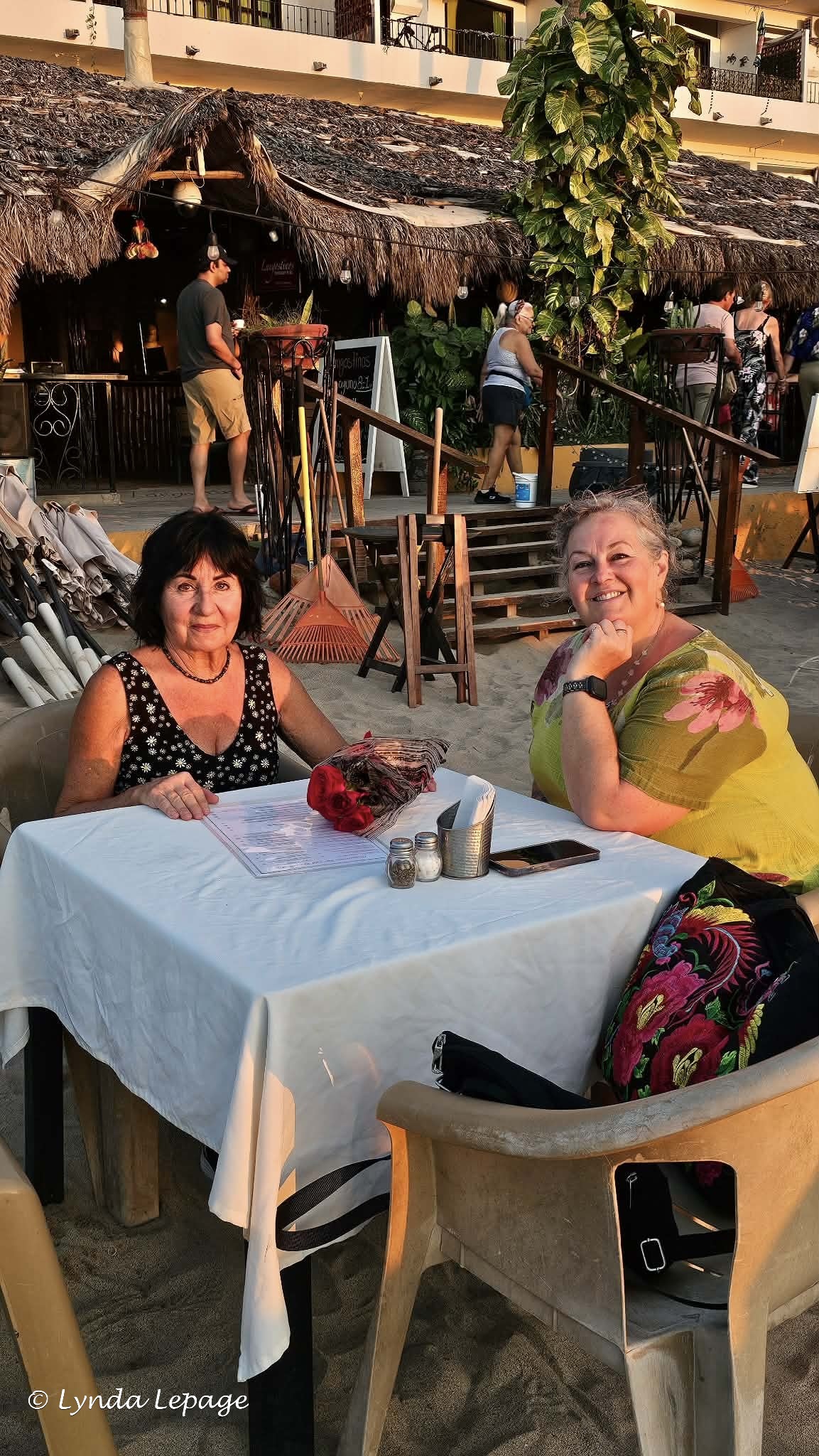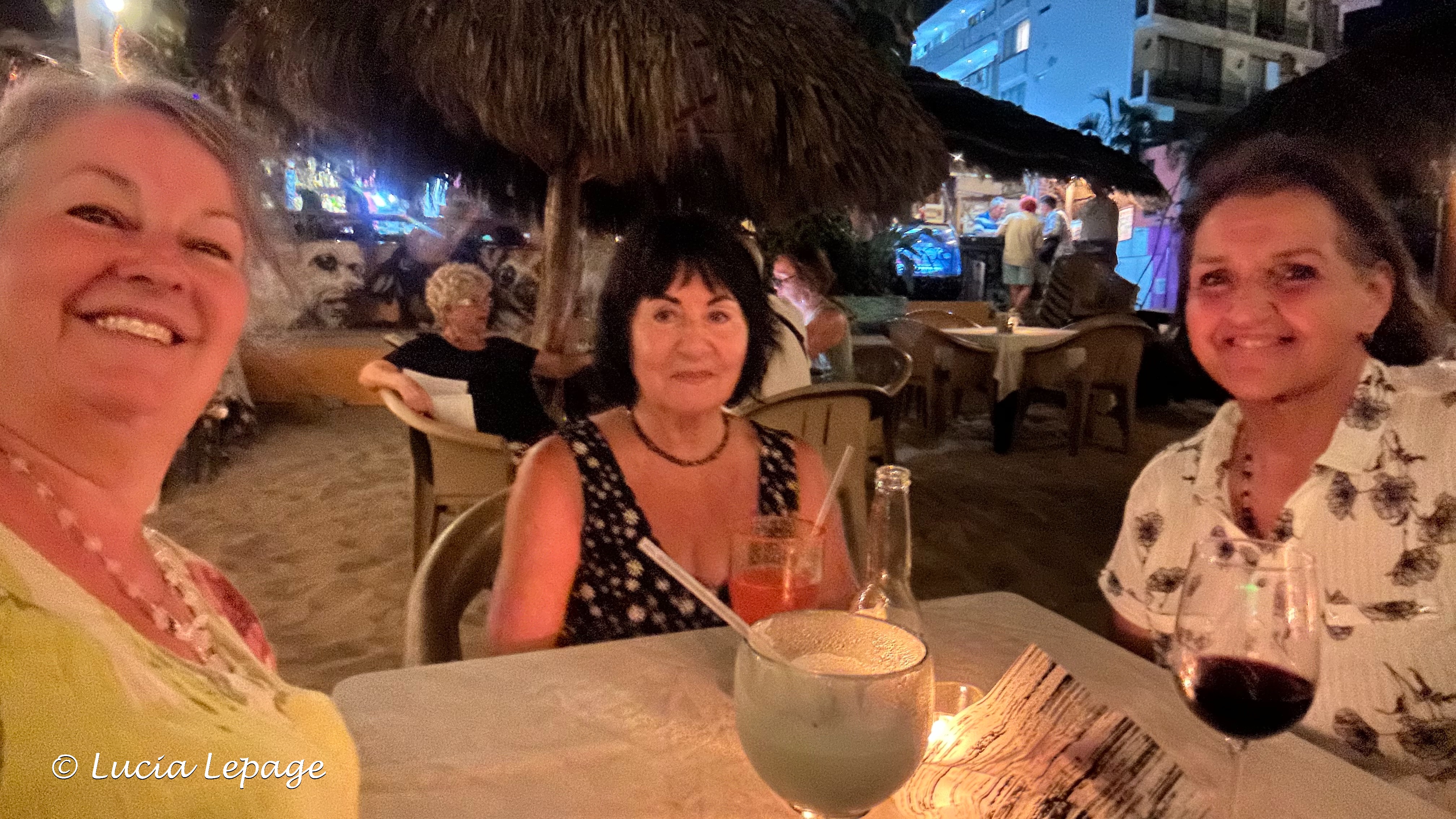 Durant la journée, j’ai finalement rejoint Renelle et elle a eu la surprise d’apprendre que j’étais à Puerto Vallarta. Elle a cru que je voulais lui parler sur Messenger quand je lui ai demandé si elle était occupée en soirée. En fait, je lui demandais si elle était disponible pour venir souper avec Lynda et moi, au Centro. Nous nous sommes donc donné rendez-vous après mon coaching en ligne, soit vers 18 h 15. Elle m’a envoyé une photo de l’autobus qu’elle avait prise pour que nous embarquions dans la même qu’elle. Nous sommes allées manger au Restaurante Langostinos, sur la plage.