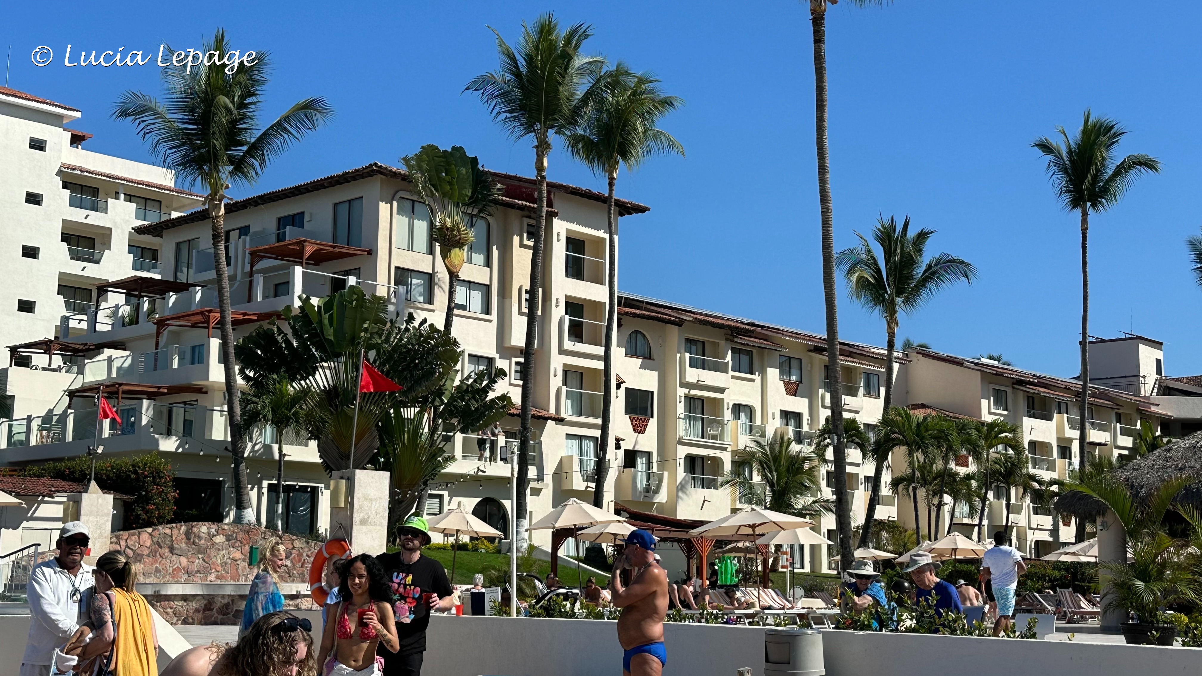 En fin d’après-midi, nous avons enfin trouvé la 3e piscine. Elle est bien cachée. C’est un endroit tranquille où nous avons accès au soleil et à l’ombre durant toute la journée. Il y a plusieurs chaises libres tout au long de la journée. C’est un endroit parfait ! Il y a une piscine avec des jeux d’eau. Malgré cela, c’est agréable d’y être. Les enfants sont accompagnés de leurs parents qui les surveillent. C’est beaucoup mieux que la piscine principale où il y a beaucoup de monde et de bruit. Quelle chance d’avoir trouvé cet endroit !!!