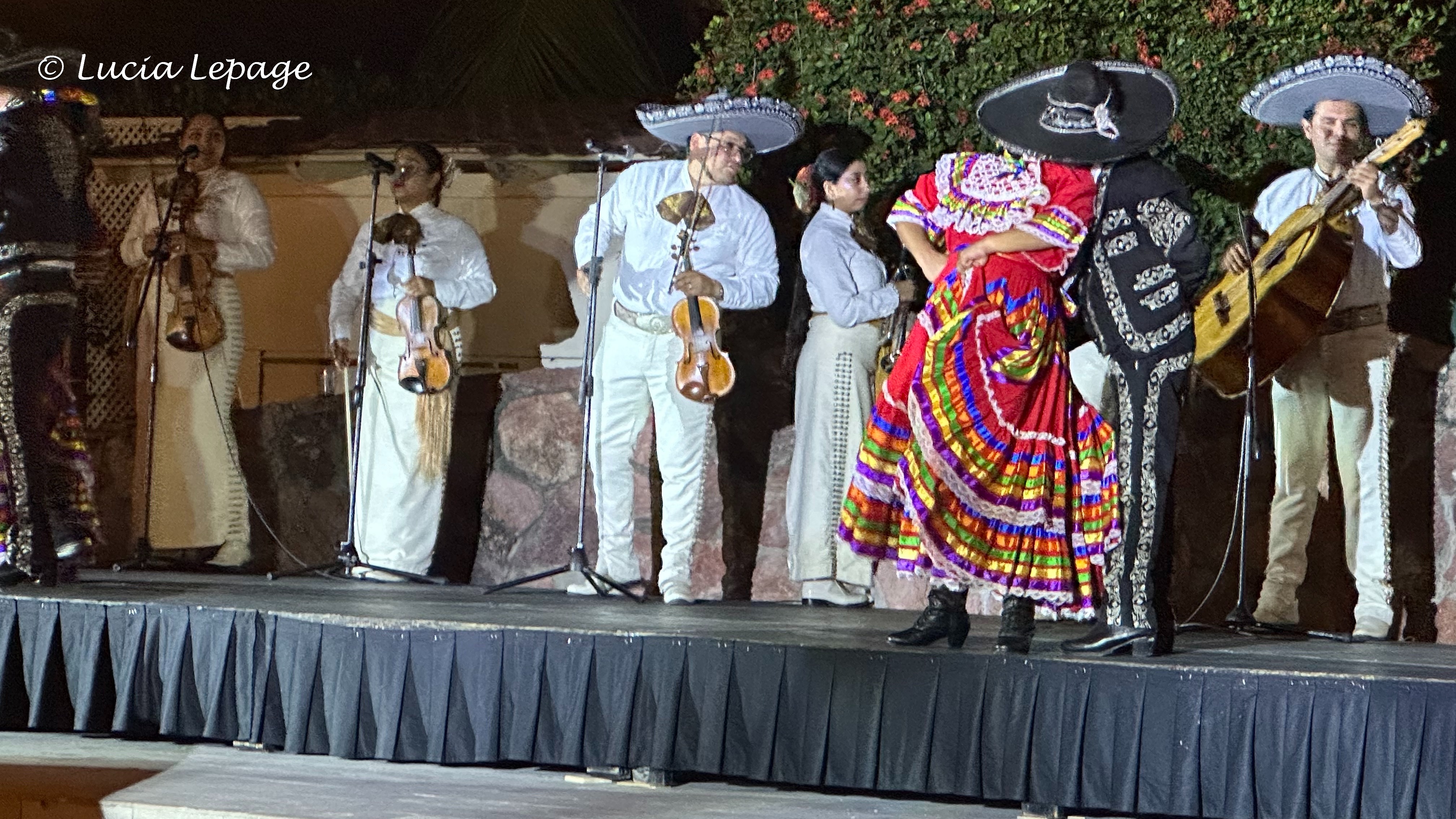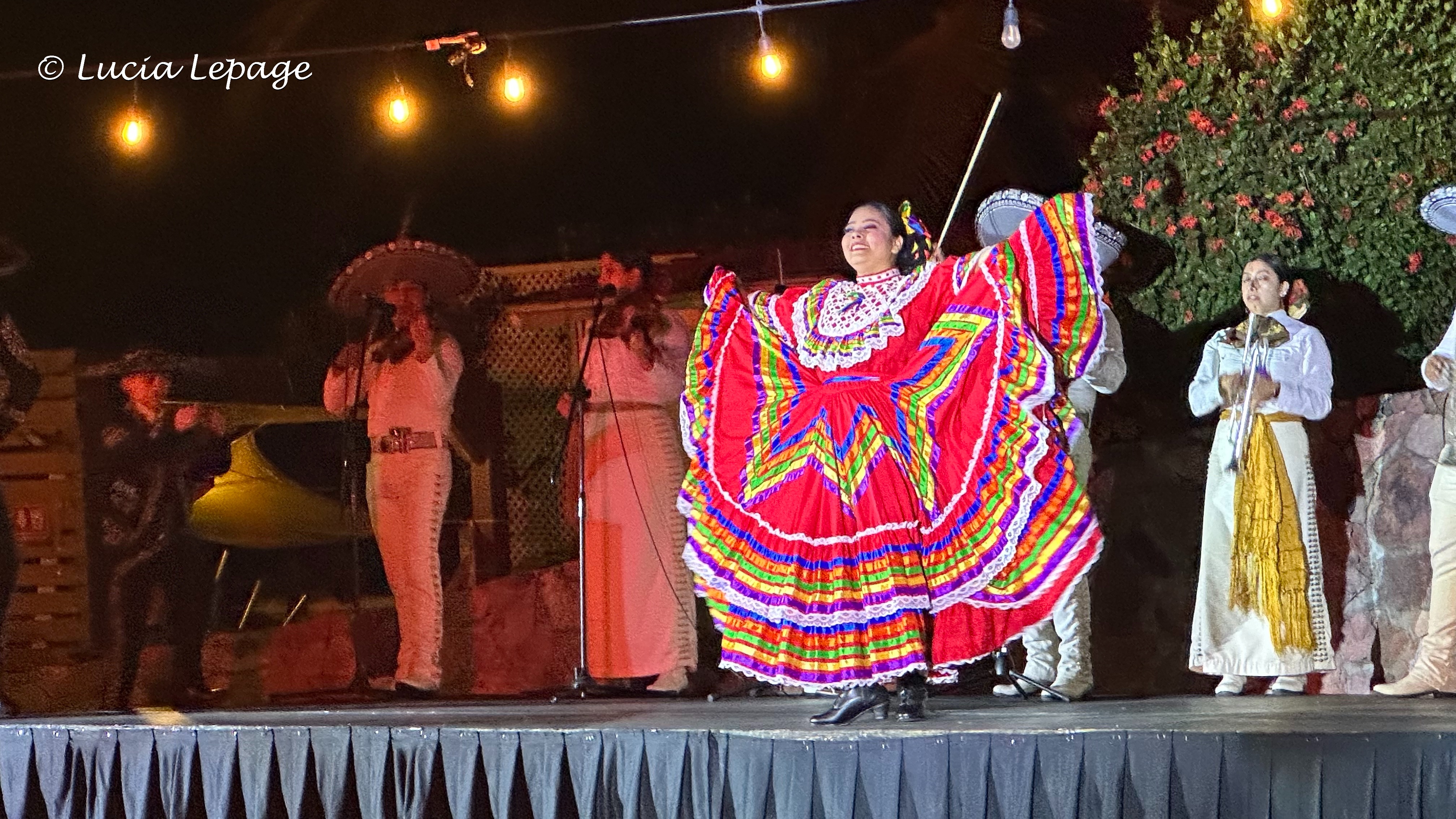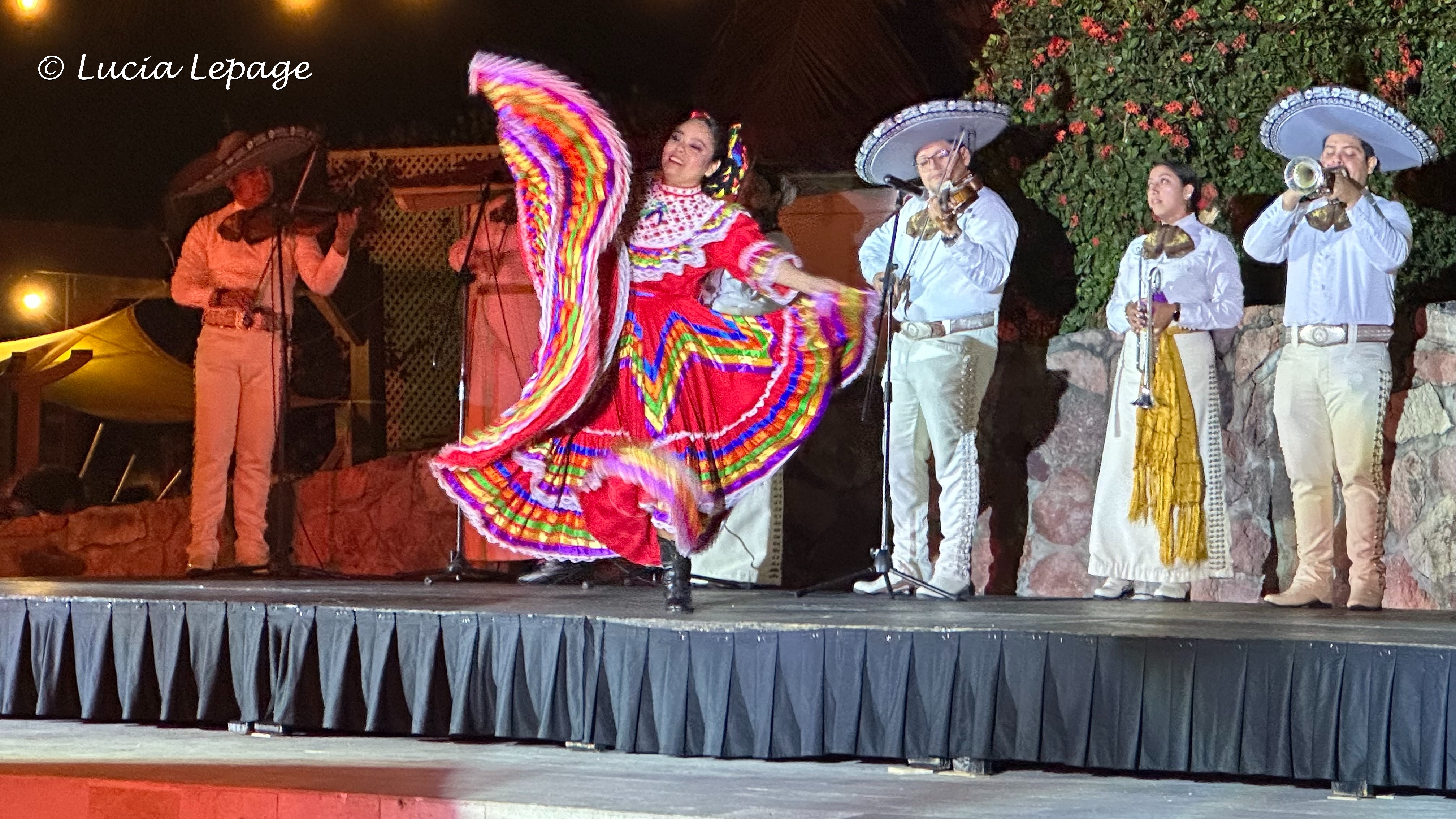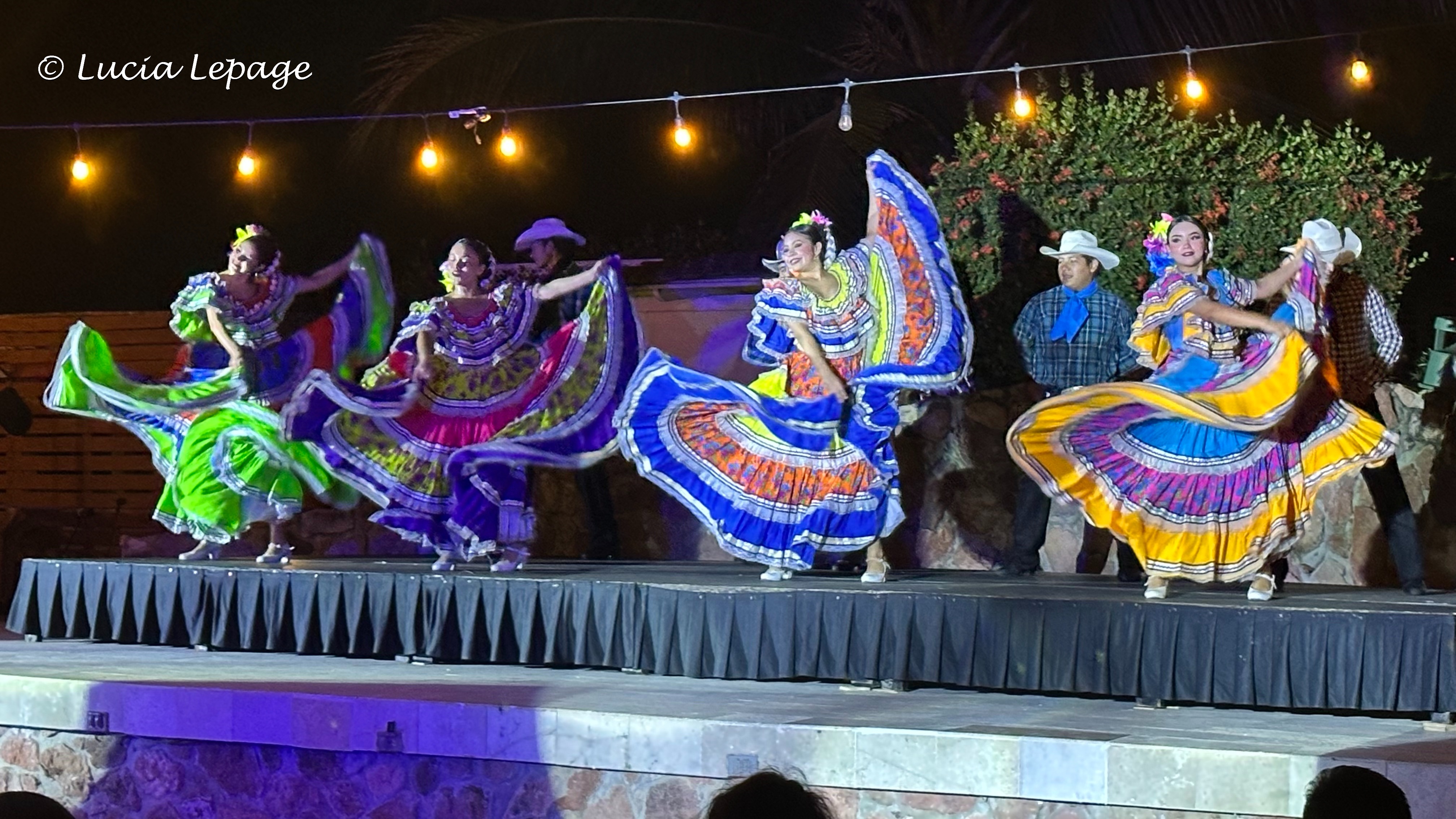 À notre retour à l’hôtel, vers 21 h 30, Lynda et moi avons eu la chance de voir un spectacle de danse traditionnelle. Il avait lieu sur une agora près de la piscine. C’était splendide !