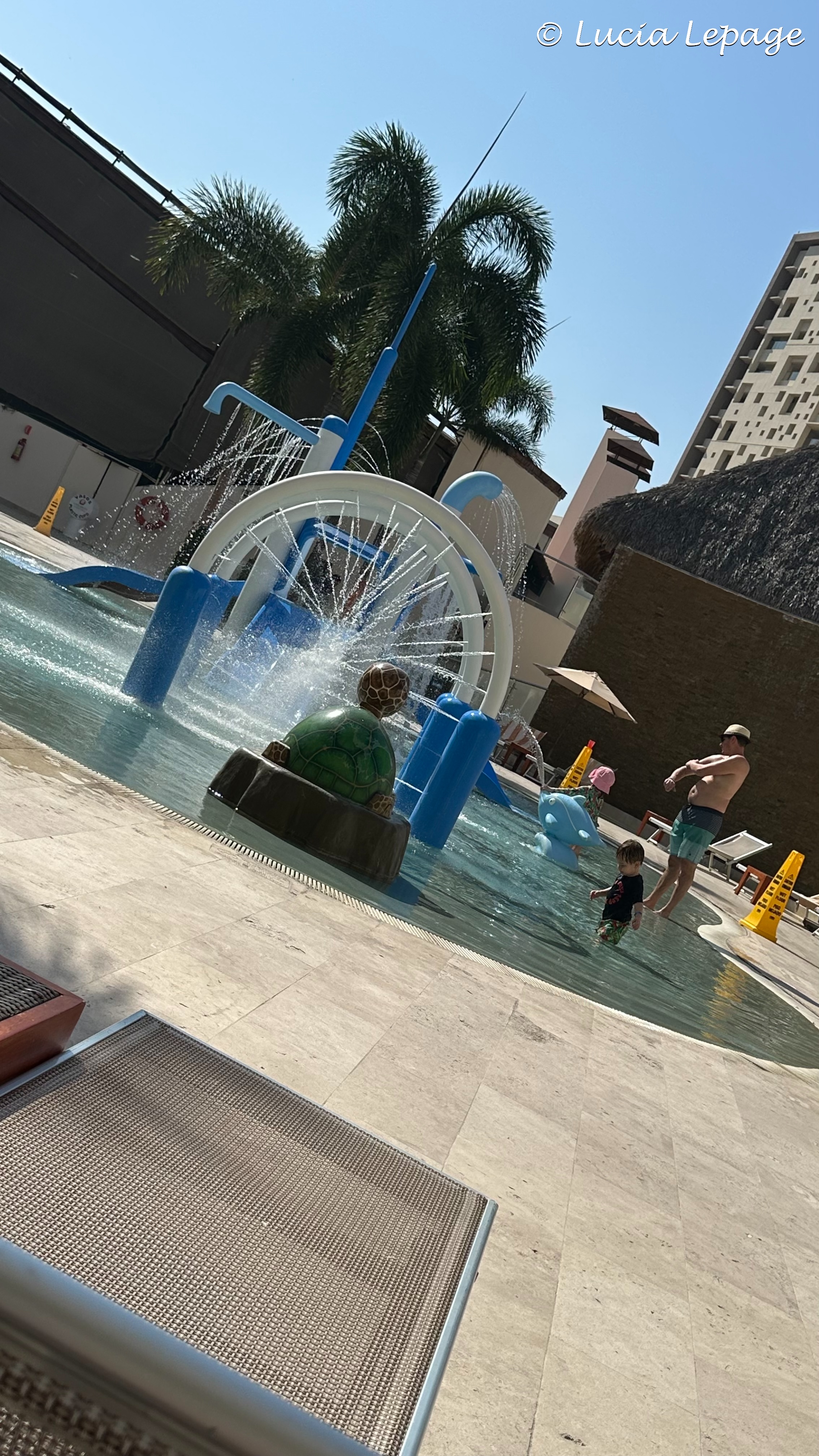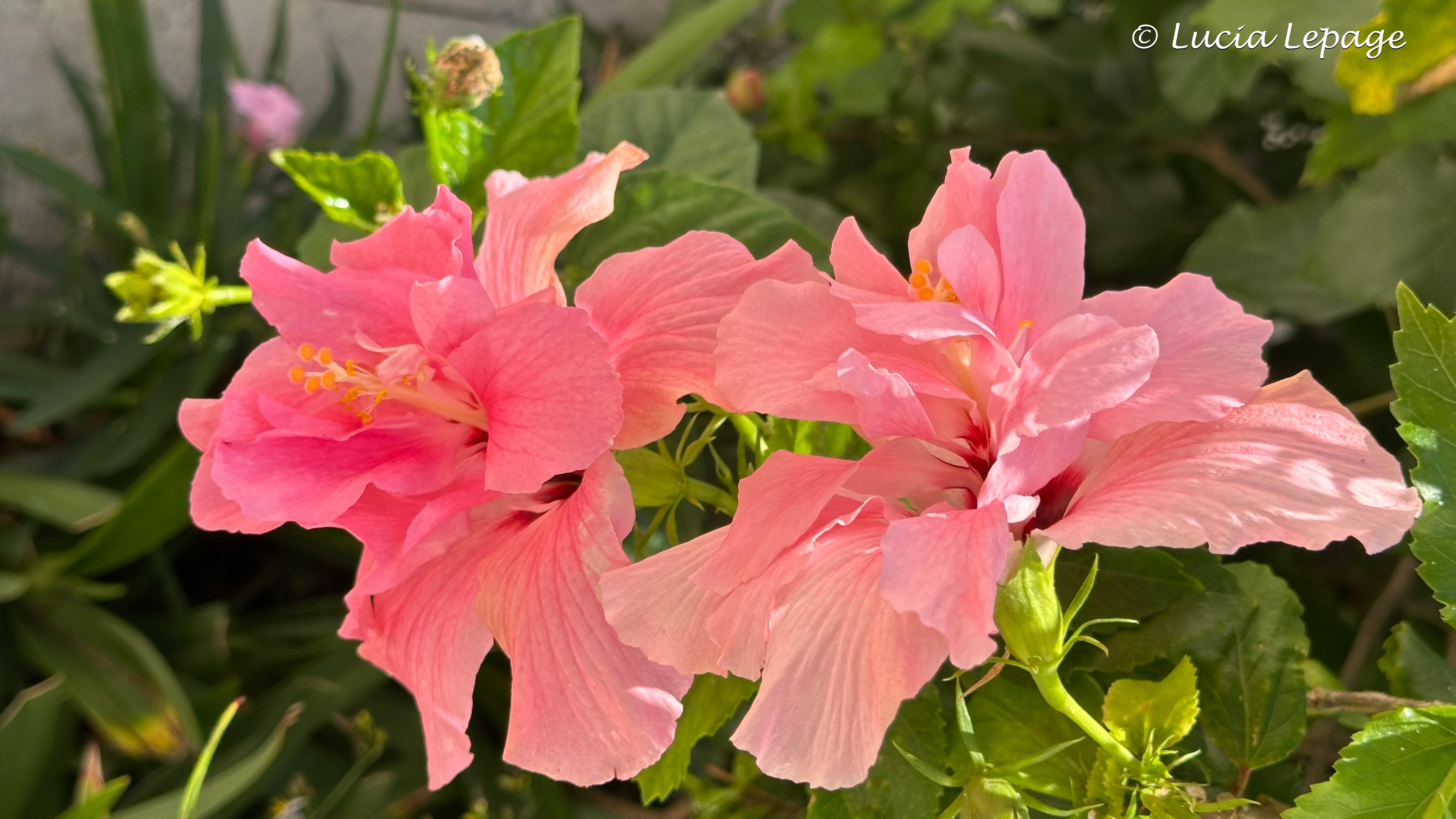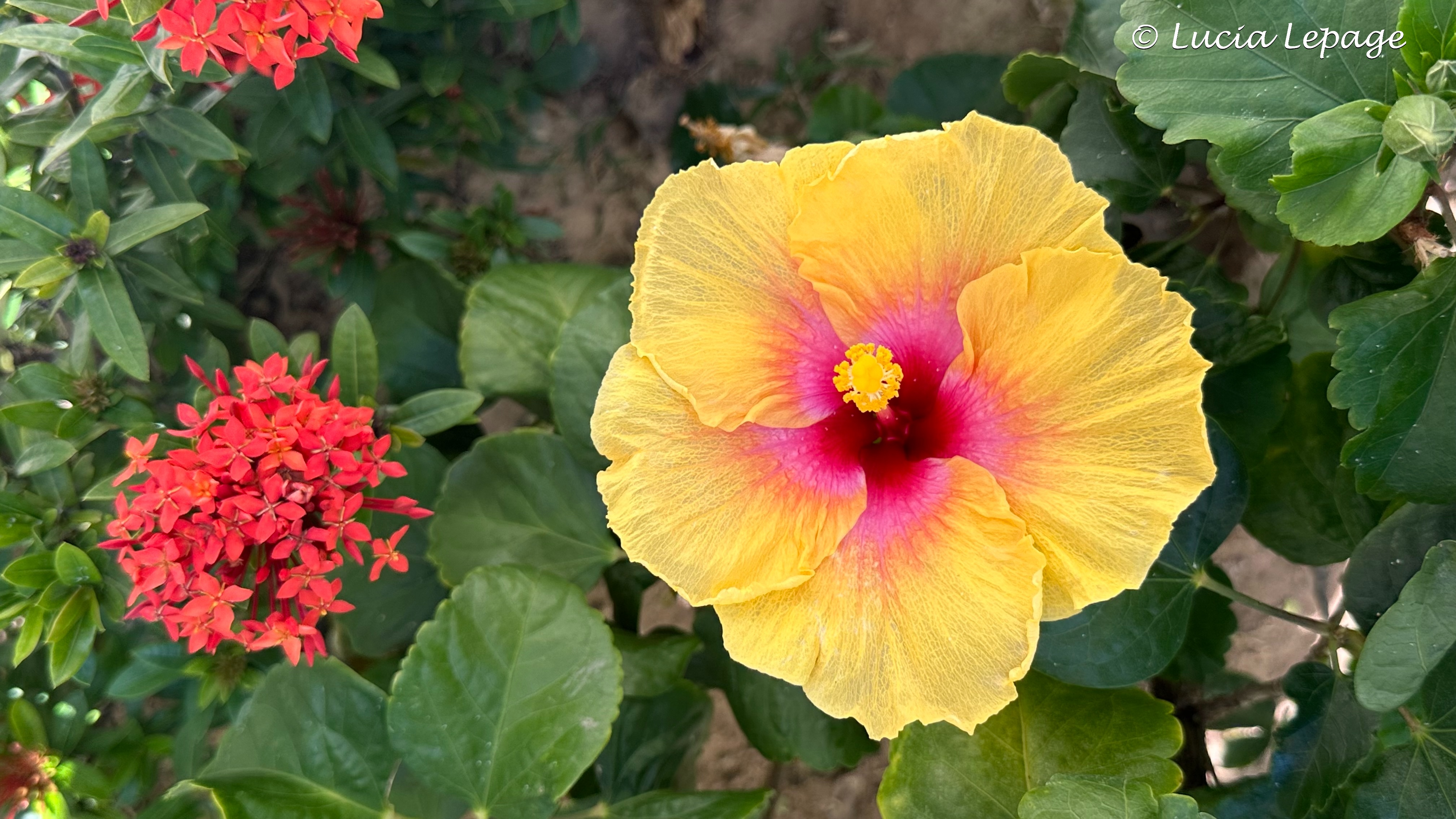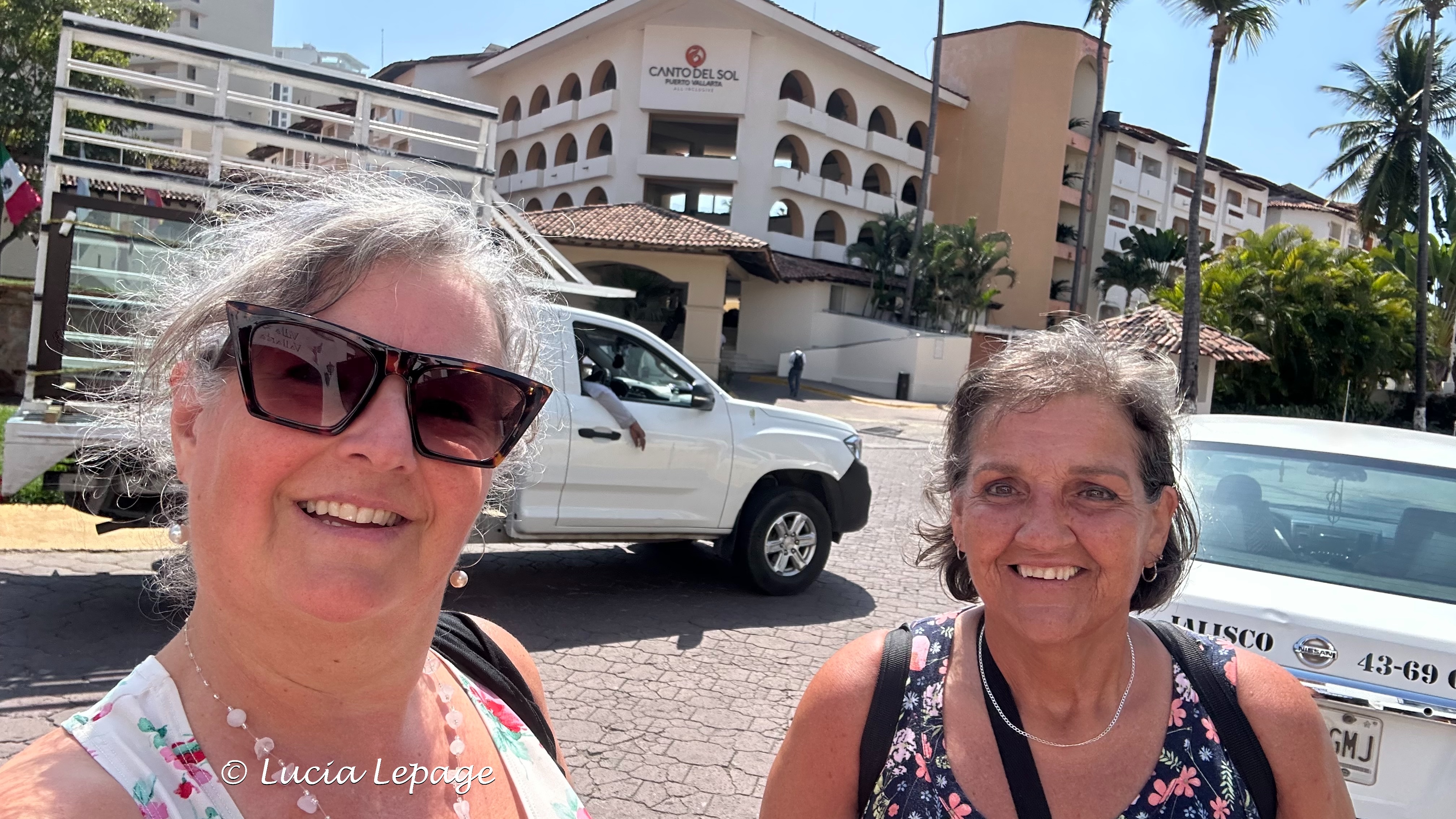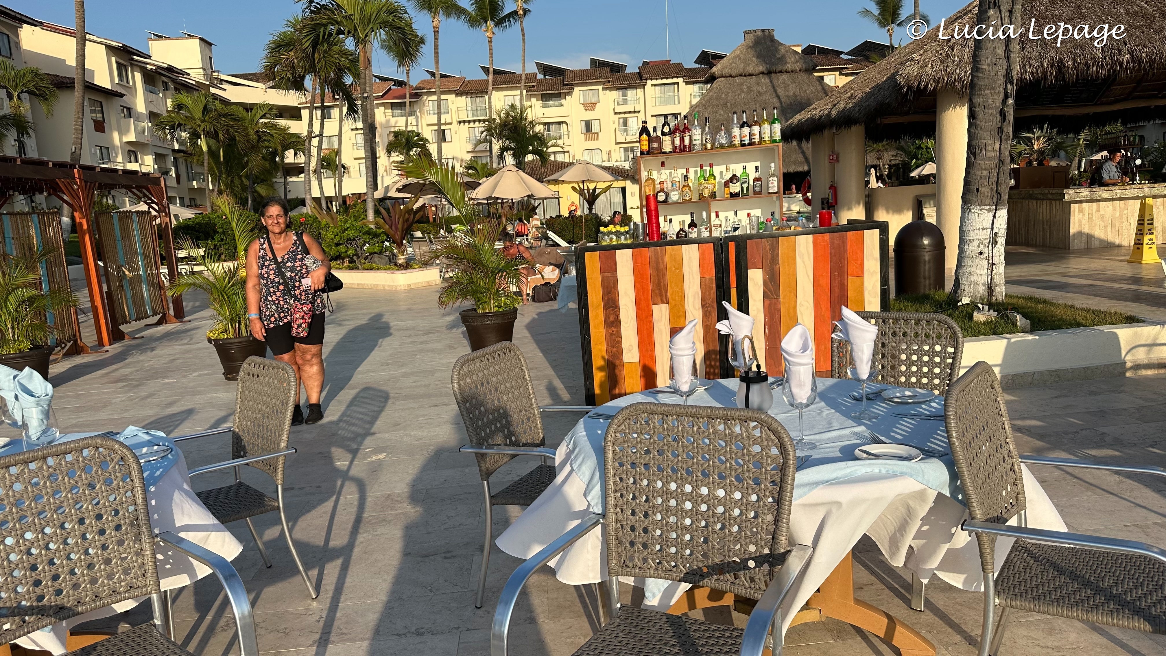 Au déjeuner, j’ai encore demandé qu’on souligne la fête de Lynda et ça n’a pas été possible. Comme nous étions confinés, nous étions très nombreux à déjeuner au restaurant-buffet. J’étais quelque peu découragée. Je tenais à ce que Lynda ait un petit quelque chose de spécial outre les feux de voitures et de commerces, dans tout Puerto Vallarta. J’avais bien l’intention de ne pas abandonner. Nous voulions aller à la plage, mais l’hôtel refusait encore qu’on y aille. La raison était qu’un bateau de l’armée mexicaine qui était arrivé à la marina la veille. Nous sommes donc allées à la piscine cachée. J’en ai profité pour prendre plusieurs photos des belles fleurs qu’il y avait autour de la piscine.
