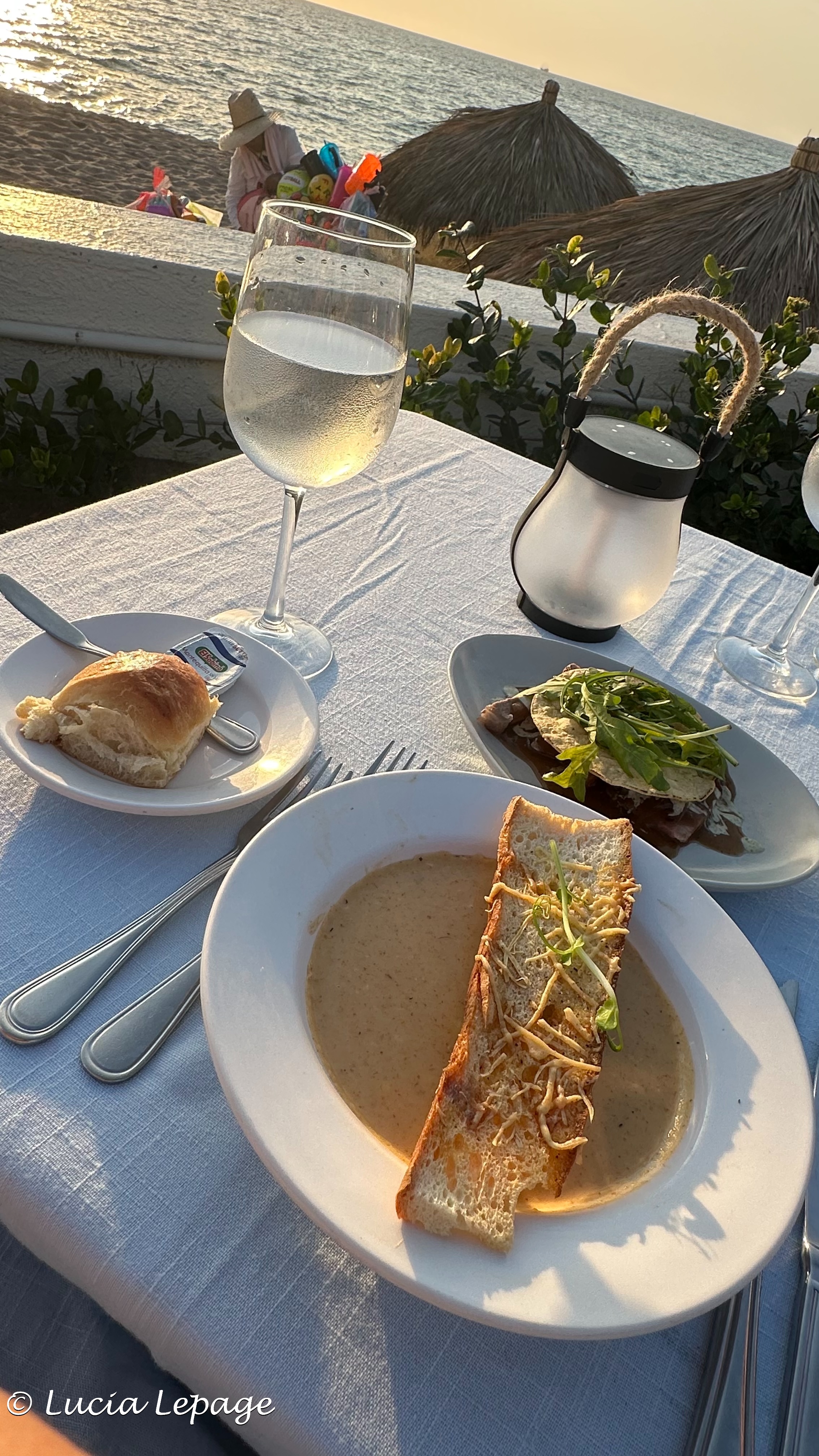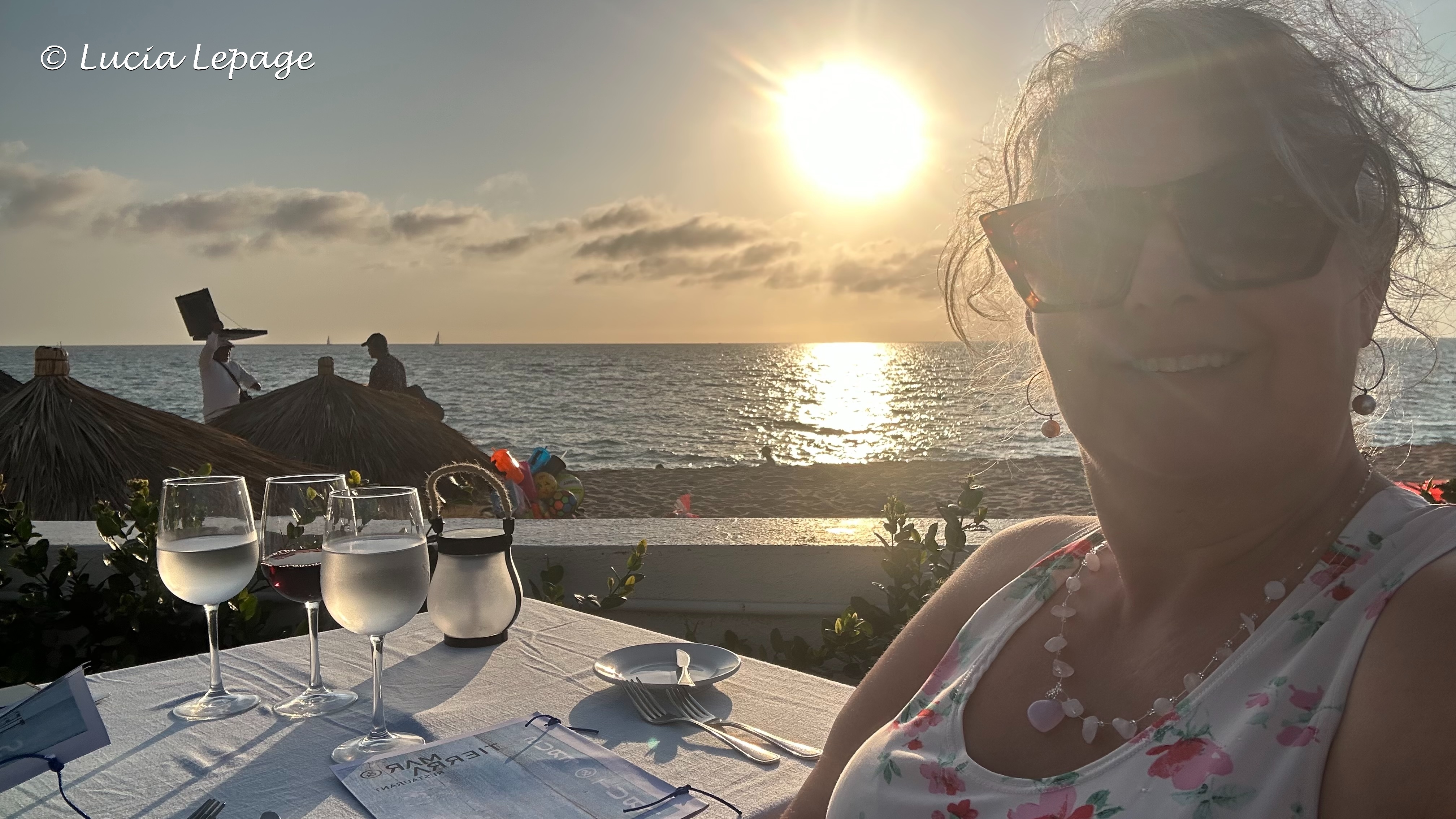 Ce soir, nous avions une réservation pour le restaurant Mar y Tierra de l’hôtel. Le repas avait lieu à l’endroit habituel… sur le bord de la mer au coucher du soleil. Quel beau site enchanteur !! La nourriture était délicieuse cette fois encore. J’ai encore demandé qu’ils soulignent la fête de Lynda, mais pas en cachette.