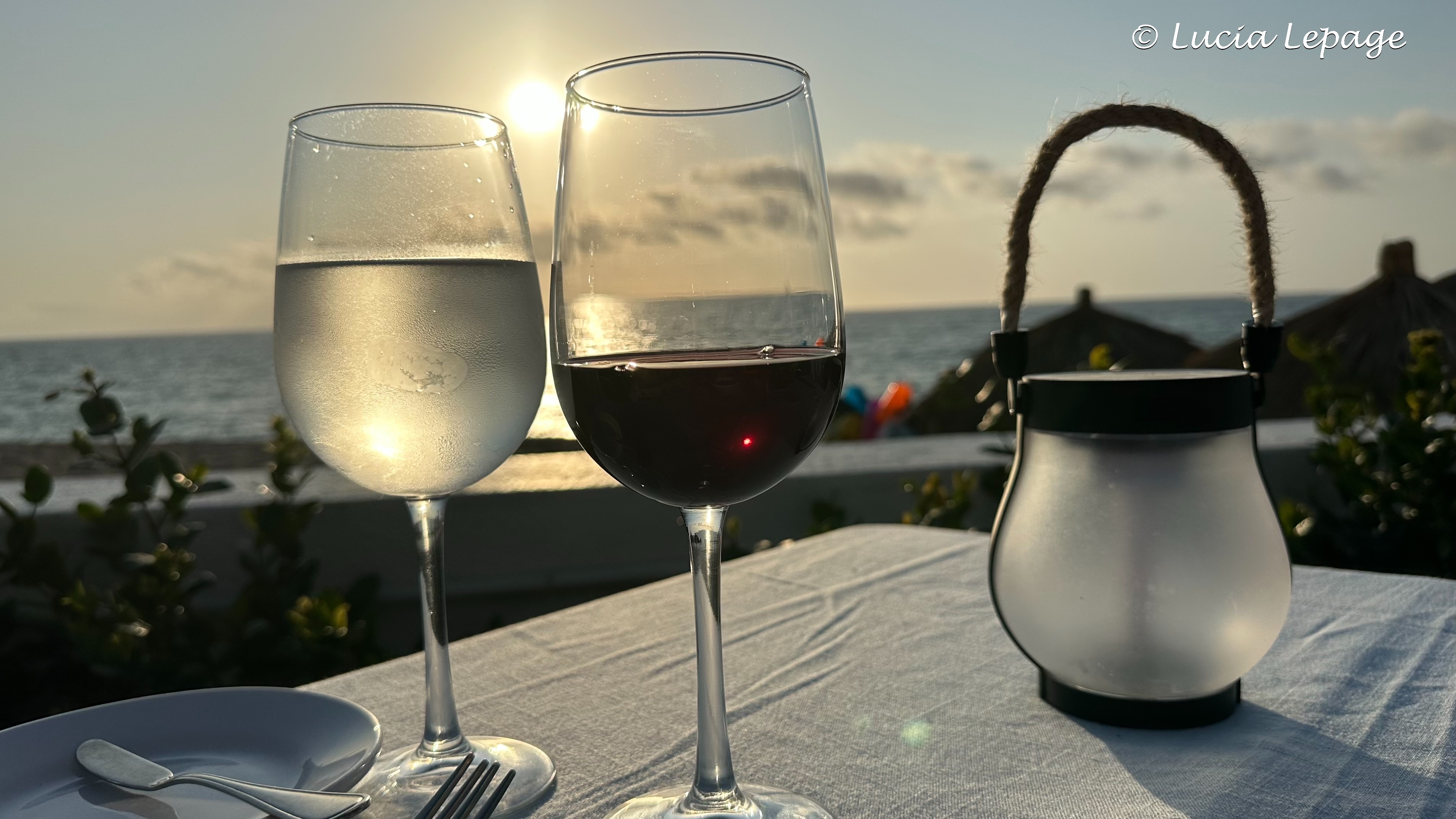 Pendant ce repas, nous avons pris moult photos du coucher du soleil. Mes photos ne sont pas très réussies, car je ne connais pas très bien le fonctionnement de la caméra de mon iPhone. La journée s’est terminée sur cette note éclatante qui m’a fait du bien. Ça augurait favorablement pour la fin de nos vacances. J’ai senti une lourdeur quitter mes épaules.