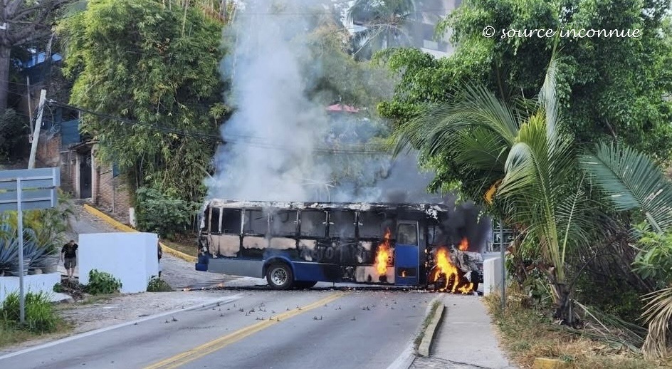 Aujourd’hui, Lynda et moi avions prévu nous rendre à Nuevo Vallarta pour y retrouver France L. Nous souhaitions visiter son condo et ensuite, aller dîner à Bucerias avec elle. Nous nous sommes préparées pour prendre l’autobus vers 8 h 30 – 9 h, car nous avions rendez-vous avec elle vers 10 h au Walmart de Nayarit. Avant de partir, j’avais lu le message de Serge Loriaux sur le groupe Le Petit Québec de Puerto Vallarta. Il mentionnait d’attendre avant de sortir dans les rues de Puerto Vallarta. Il précisait aussi le contexte de cet avertissement. Comme nous allions à Bucerias, nous avons jugé que ce message ne nous concernait pas.