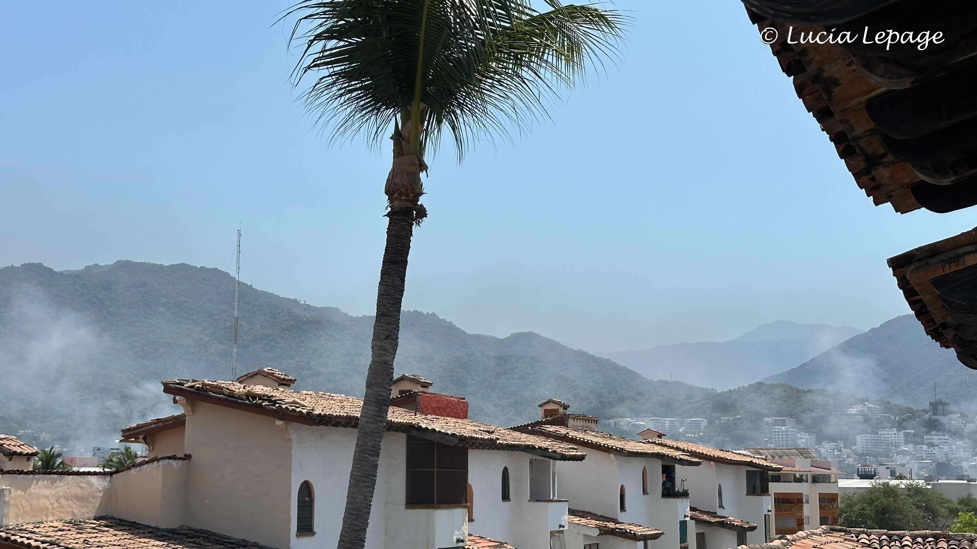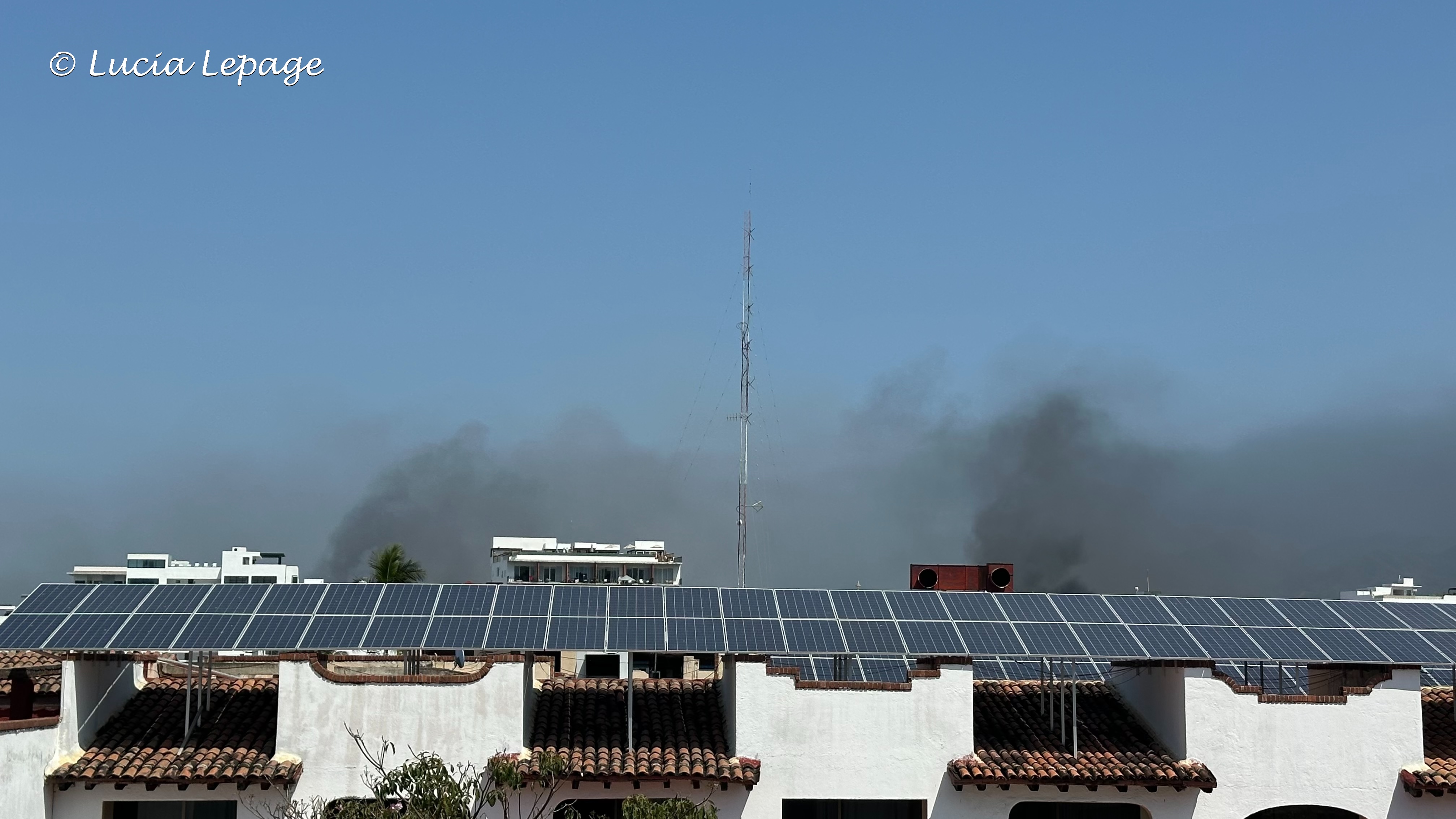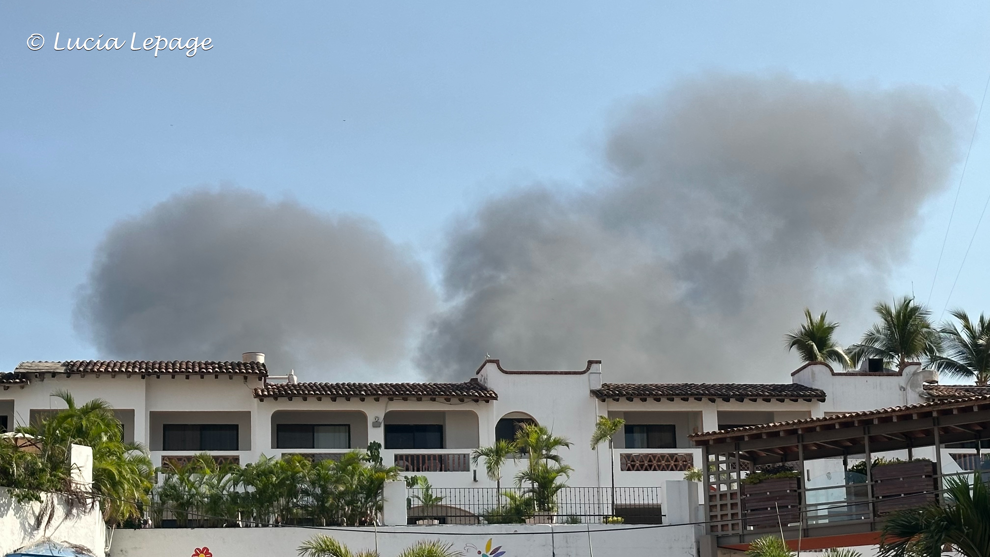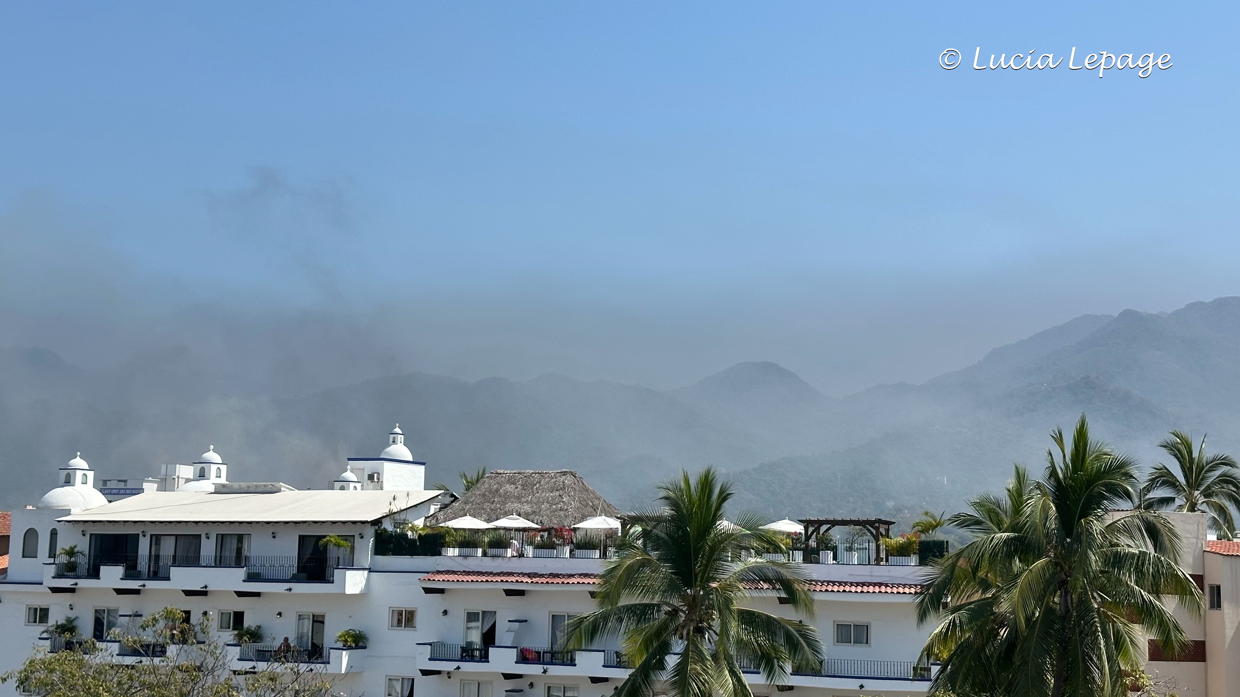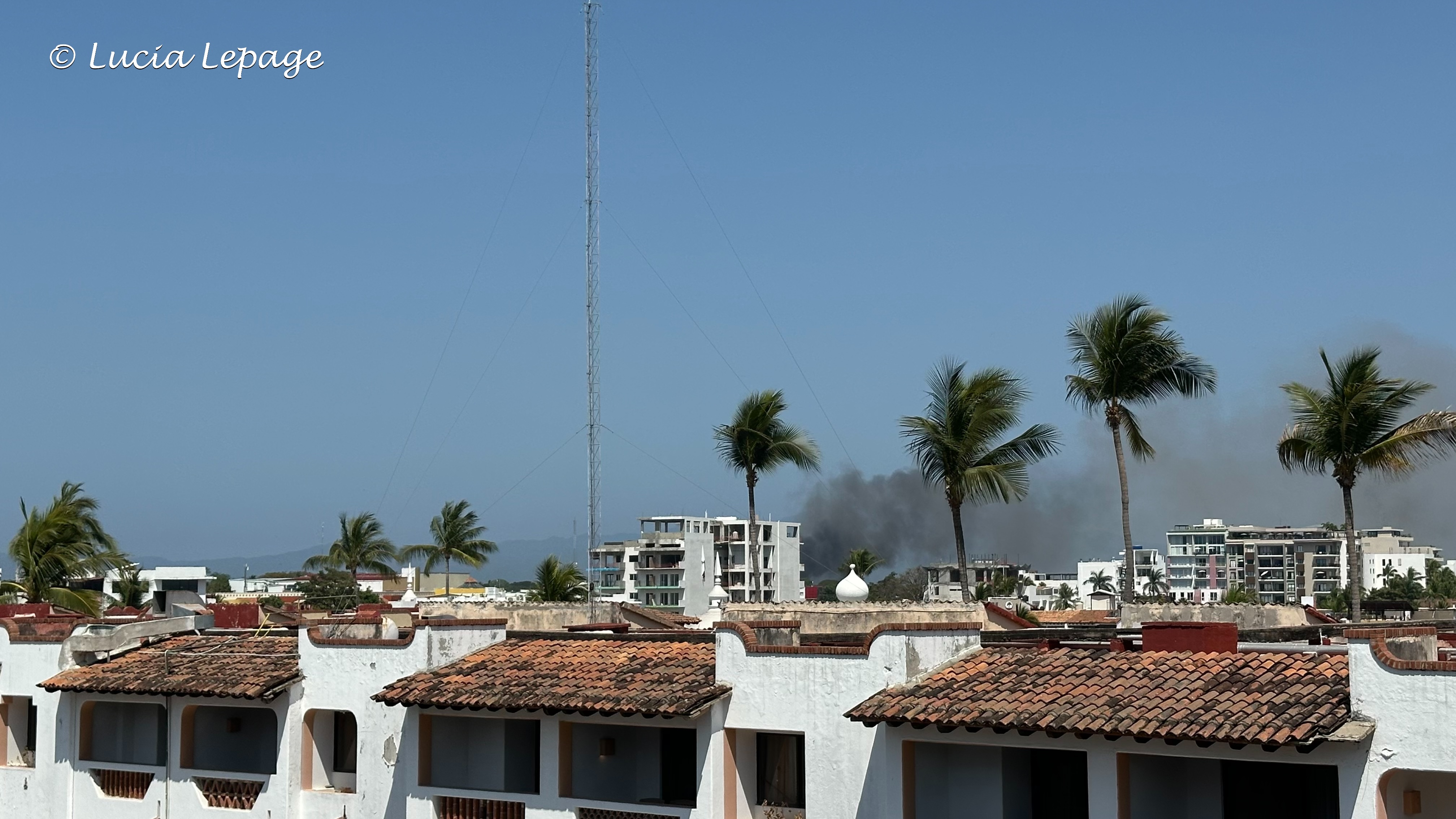 Plus les minutes s’écoulaient, plus la situation évoluait rapidement de notre point de vue. Nous étions à l’affût de toutes les nouvelles qui pouvaient nous permettre d’en apprendre plus. À 13 h 15, on a reçu la consigne de rester dans nos chambres. J’ai quitté la piscine où j’étais en espérant croiser Lynda qui était allée manger. Avant de me rendre à ma chambre, je suis montée à l’étage le plus haut du côté de la ville, pour voir s’il y avait davantage de panaches de fumée. J’ai pris quelques photos et je suis partie à ma chambre. J’ai écrit à ma famille : « Je suis en sécurité à l’hôtel et confinée dans ma chambre depuis 13:15. »