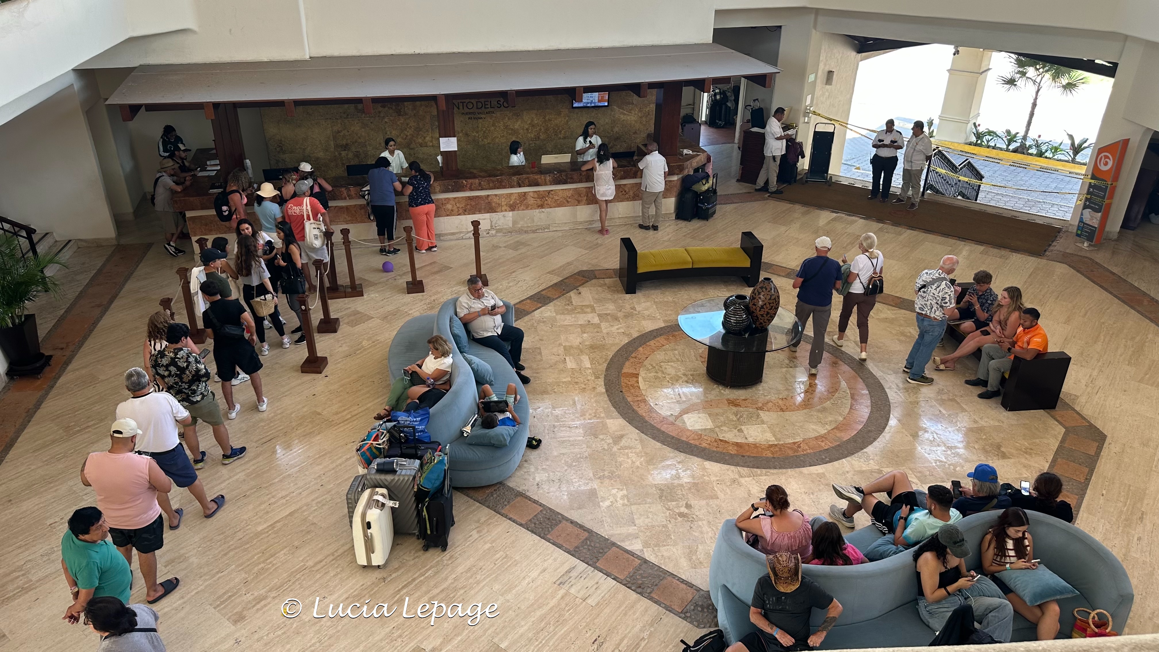 C’était étrange de voir la grande piscine vide. Dans le lobby de l’hôtel, plusieurs personnes étaient en attente avec leurs valises. Ç’a été ainsi une grande partie de la journée. Tout le monde semblait calme. Je suppose qu’ils attendaient d’obtenir une chambre puisqu’ils ne pouvaient pas prendre leur avion. Plusieurs avions étaient retournés au Québec, sans laisser descendre les passagers, à cause de la situation.